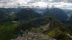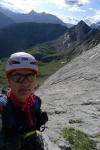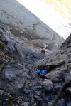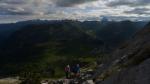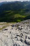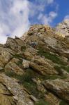 La sirga continúa avanzando por la Suela, donde hay que apoyar las manos por la inclinación, pero casi no puedo calificarlo de escalada propiamente dicha. Llegamos a la parte alta de la Suela donde termina la sirga (2228m 2h54′). La cima de la Zapatilla aún está un poco más adelante, siguiendo una cresta.