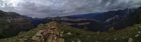 El camino sigue a la derecha, sobre una de esas fajas imposibles de Ordesa y, finalmente, asciende al rellano que conforma el circo de Salarons o Carriata. A la izquierda el Tozal del Mallo, recto iría a Mondarruego y a la derecha la Fajeta para el descenso (2175m 2h00′).