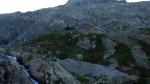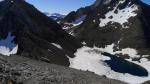 Llego al precioso ibón Azul Inferior (2365m 2h11′). Por encima de los ibones Azules empiezan los neveros. Hay huella marcada, la pendiente es suave y está algo dura; saco el piolet, pero se pasa con facilidad. Llego sin problemas al cuello del Infierno (2725m 3h12′).