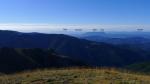 Se sale a un claro del bosque y sigo directamente hacia abajo, atravesando el prado y entrando otra vez en bosque, ahora hayedo. Sin encontrar senda llego hasta una pista (1491m 4h11′) que sigo unos metros a la derecha y luego otra vez hacia abajo por la hojarasca. Atravieso un sendero y salgo a otro sendereo (1467m 4h14′) que ya sigo a la izquierda hasta poder ver algo más abajo el aparcamiento (1395m 4h22′).