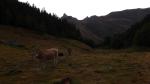 Hay una ligera bajada para atravesar el río (1660m 0h41′). Dejo la cabaña a mi derecha mientras voy girando hacia la izquierda subiendo por laderas de hierba, siguiendo senda, aunque hay muchas sendas de ganado, pero la cuestión es seguir flanqueando y ganando altura para alcanzar un suave lomo y continuar flanqueando, pasando otra valla de ganado (1860m 1h10′), hasta el collado de Lavigne (1913m 1h15′).