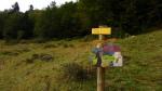 Desde el aparcamiento de Bious-Artigues (1417m) sale un camino hacia el refugio de Ayous y otro hacia el refugio Pombie, a la izquierda de la entrada al parking, que es el que tengo que tomar. Asciende por hayedo y, enseguida, se toma una bifurcación a la derecha (1450m 0h04′). Se sigue por bosque hasta salir a una zona abierta tras pasar una valla de ganado (1650m 0h24′), dando paso a un amplio e imperceptible collado (col Long de Magnabaigt). Continúa el camino por un vallecito hasta un cartel; recto hacia el col de Suzon, a la izquierda (1680m 0h33′) me dirijo a la cabaña de Magnabaigt (venta de queso).