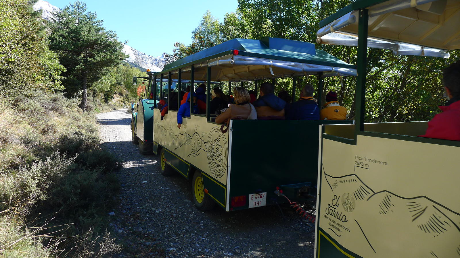 Bajando, en el Cuello de Yenefrito, me desvío para subir a la base del Dedo de Yenefrito (1808m 4h42′). Y más abajo no doy crédito a lo que veo. Por la pista sobre el río Bolatica sube uno de esos trenecitos turísticos que van por el casco antiguo de las ciudades con todos sus vagones llenos de gente. Jamás había visto una cosa igual. Además todo el mundo está apiñado en esos vagoncitos en estos tiempo de pandemia. Dándole vueltas a la cabeza sobre si es correcta o no esta explotación turística de una pista ganadera de montaña, llego al aparcamiento (1228m 5h45′) terminando el recorrido.