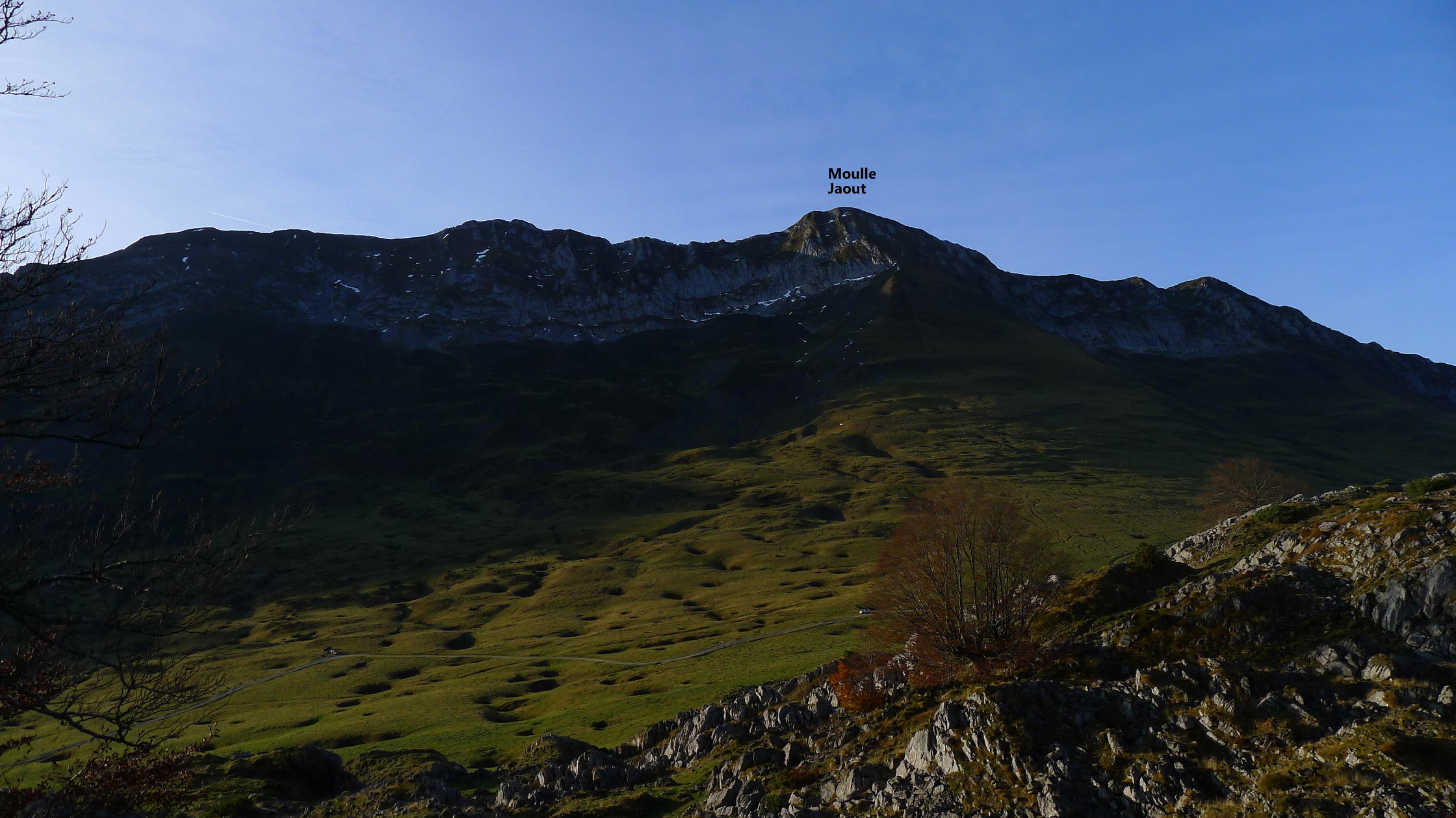 Se asciende por una canaleta con hitos (1965m 2h30′), tengo que usar las manos alguna vez pero no es complicada (I+), solo hay que tener cuidado porque a veces el suelo está helado. Así se llega a la cresta y la cima del Moulle Jaout (2050m 2h42′) está a la izquierda.