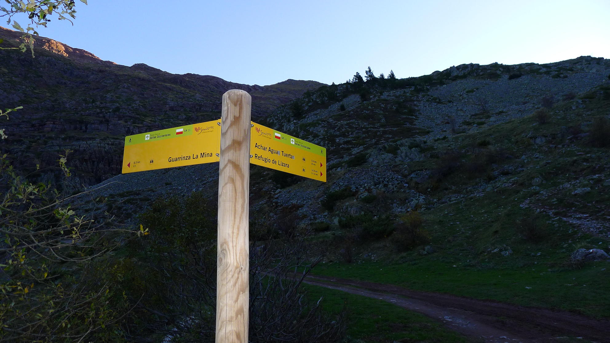 Desde el pueblo de Echo se sigue la carretera hasta la Selva de Oza y se continúa la pista, al principio asfaltada pero con profundos baches y luego sin asfalto y con bastantes piedras, hasta el aparcamiento de Guarrinza (1355m), donde una señal prohíbe el paso.
