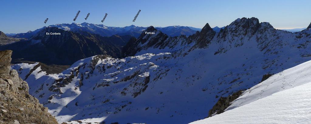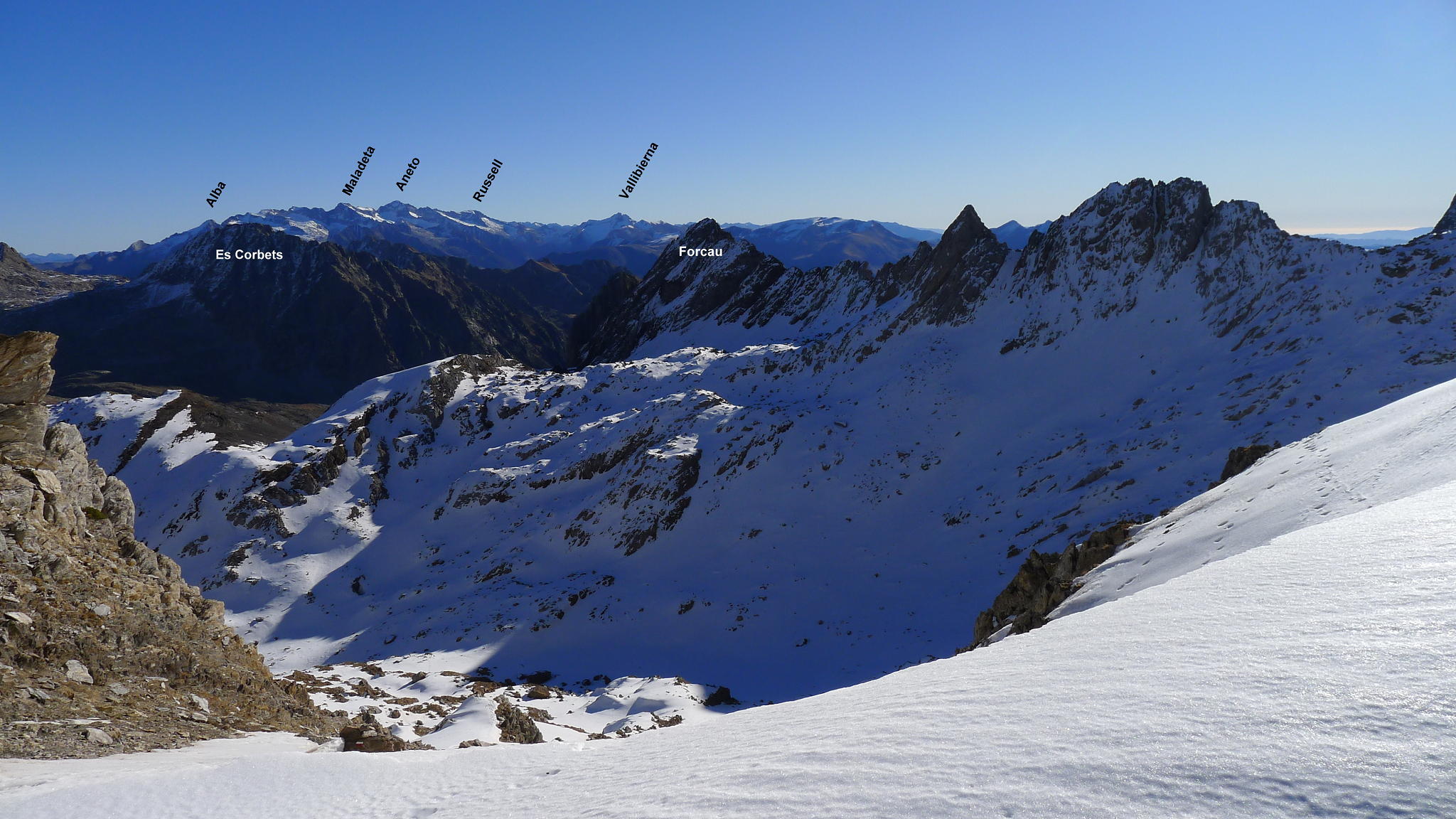 Aprovecho el domingo para subir al valle de Gistaín. Mi objetivo es el pico de la Forqueta desde Viadós, pensando que habría menos nieve, pero encuentro este vallecito orientado al NW con mucha nieve que se sube muy bien cramponeando hasta el collado. Sin embargo, la cresta de roca y nieve que me queda la veo más delicada, las placas de nieve sobre la roca se desprenden con facilidad y me da mucha sensación de inestabilidad, así que acabo dejando la cima para otra ocasión. Siempre que no se corona te da un poco de rabia, pero en el fondo sabes que lo más importante es volver, habiendo disfrutado de la montaña.