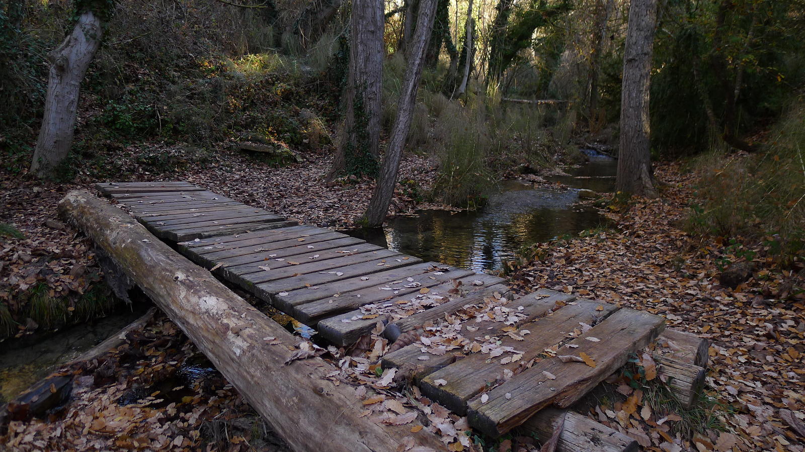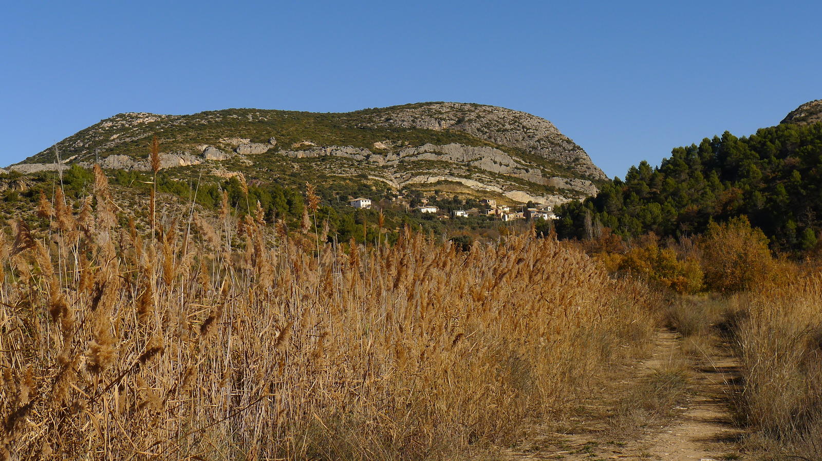 El barranco lleva a las puertas del pueblo de Gabasa (630m 3h03′), pero no entro en el pueblo sino que tomo el camino a la izquierda atravesando el río por un puente. Este camino desemboca en una pista (590m 3h15′) que sigo a la derecha, pasa junto a una laguna y se dirige hacia Peralta de la Sal, entrando por una zona de granjas ganaderas, el aparcamiento de caravanas y una zona de instalaciones deportivas para bajar al puente frente a las Escuelas Pías.