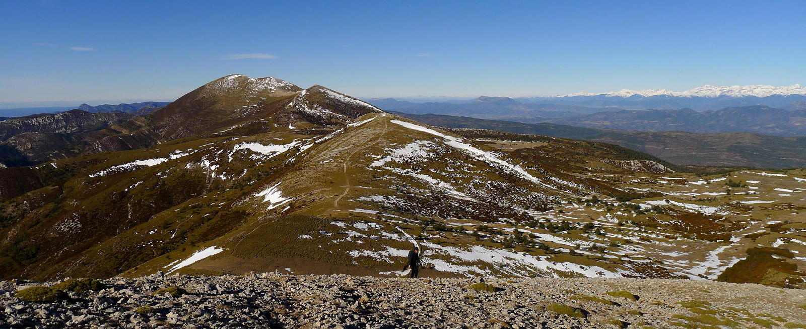 El lomo NW es pedregoso, tiene trazas de senda y se sube sin problemas hasta la cima (Tozal de Cubilás 1938m 4h07′). La recompensa de las vistas en un día despejado como hoy hace olvidar cualquier esfuerzo.