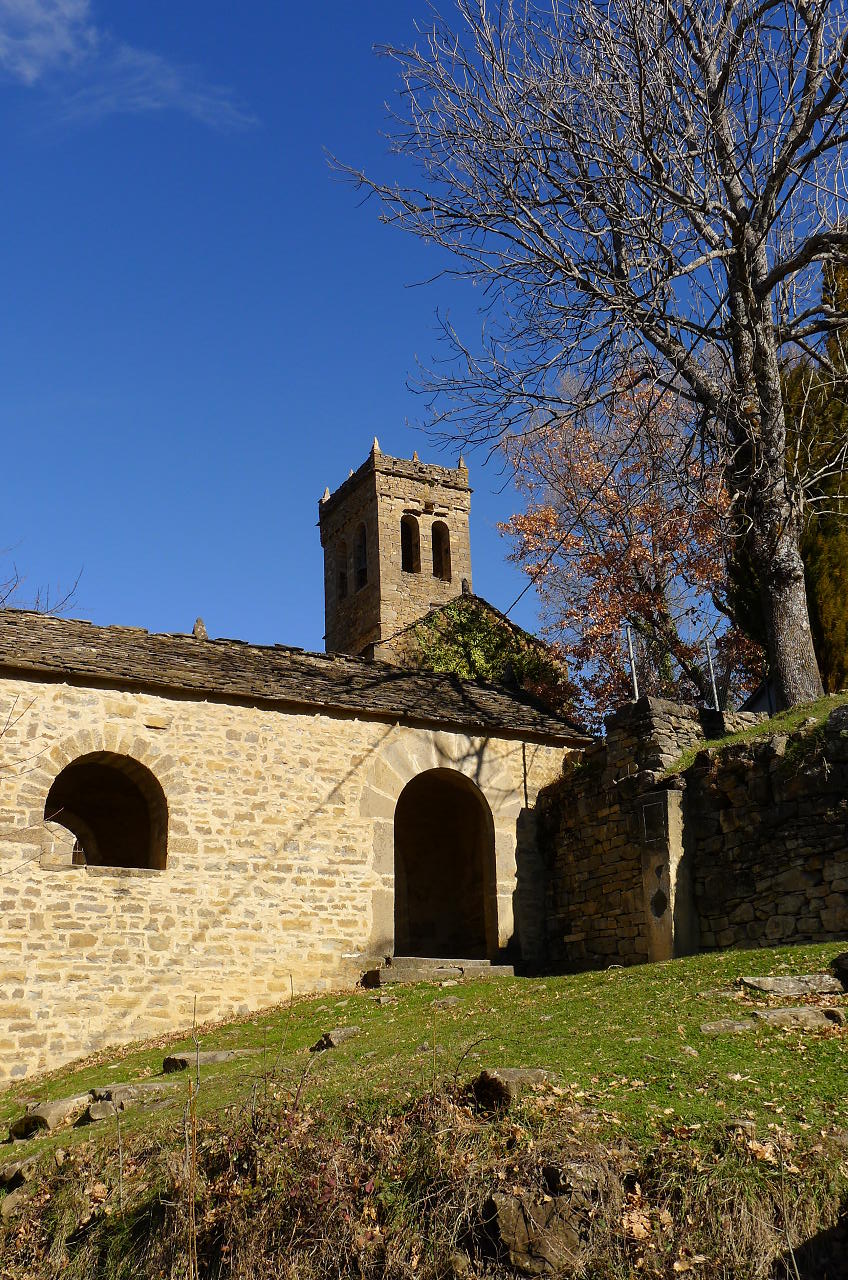 Desde la carretera de Fiscal a Broto, una desviación a la derecha asciende al pueblo de Asín de Broto. Subo por las callejas casi hasta la Iglesia, pero es complicado aparcar, tengo que dejar el coche un poco más abajo y esperar por precaución un par de minutos a que un mastín que anda rondando se aleje un poco.