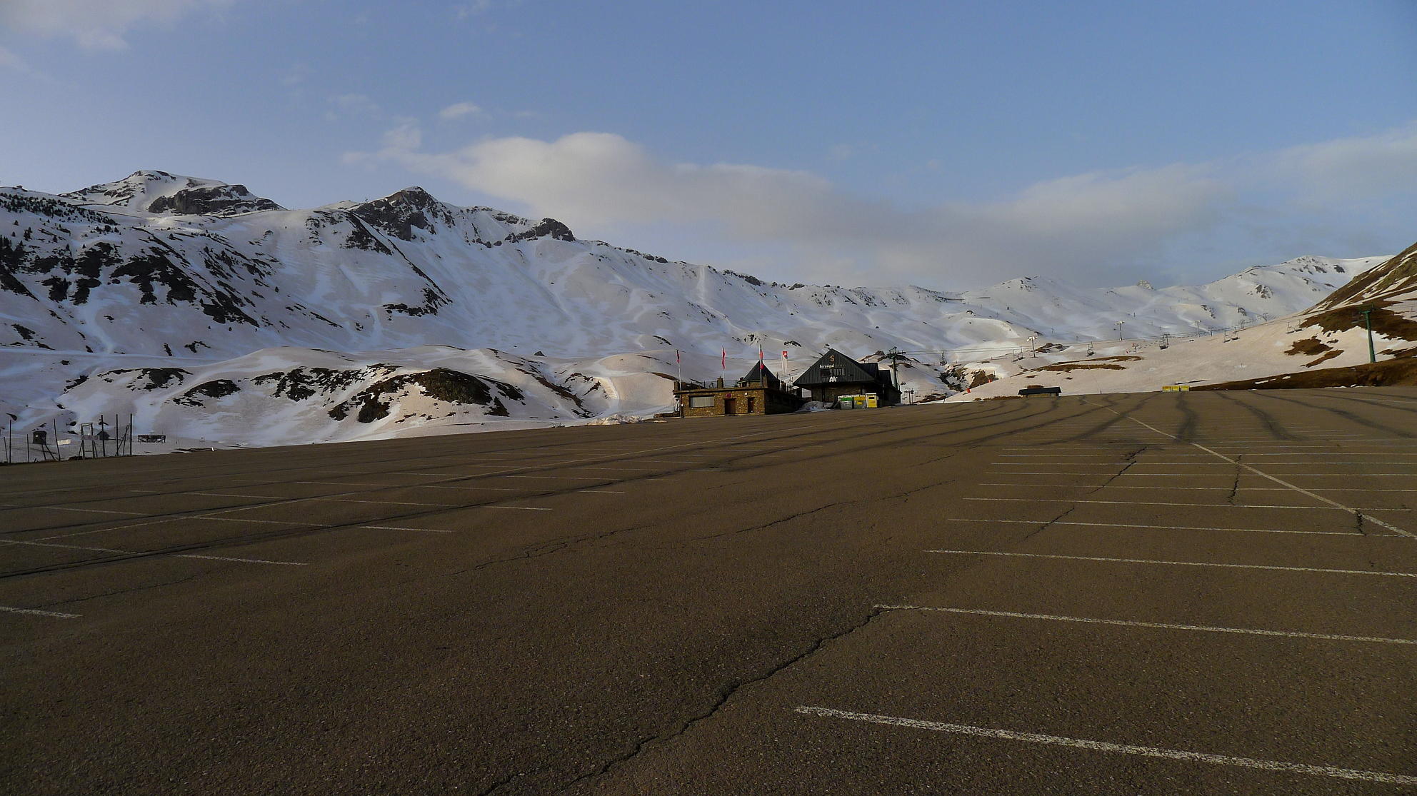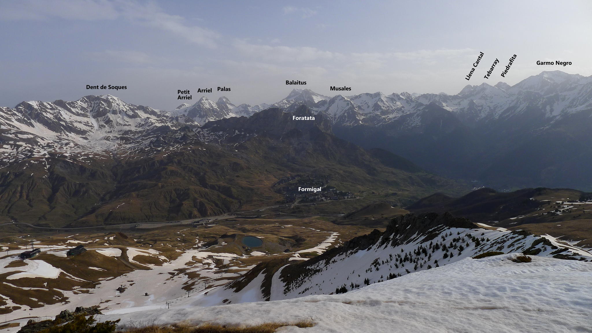 Acceso: En la A-136 que sube al Portalet, entre el KM 22 y 23 hay un aparcamiento de Formigal del que sale una carretera que sube al aparcamiento de Sarrios. Ahora, con las pistas de esquí cerradas, la carretera también está cerrada por una cadena.