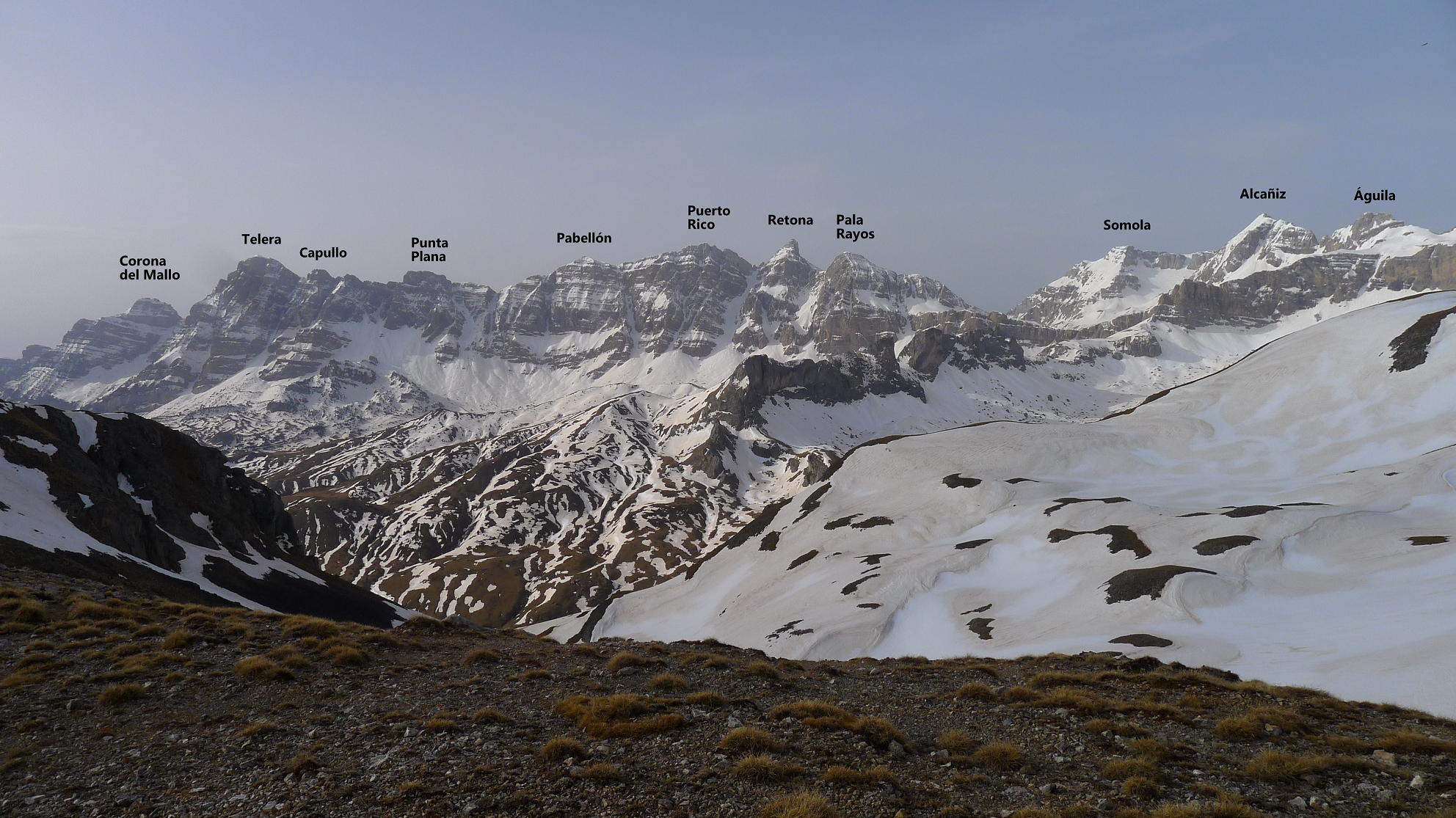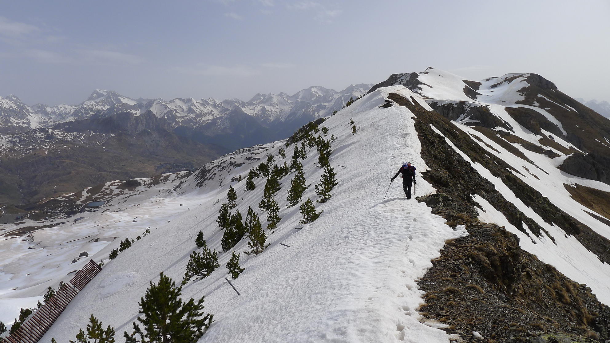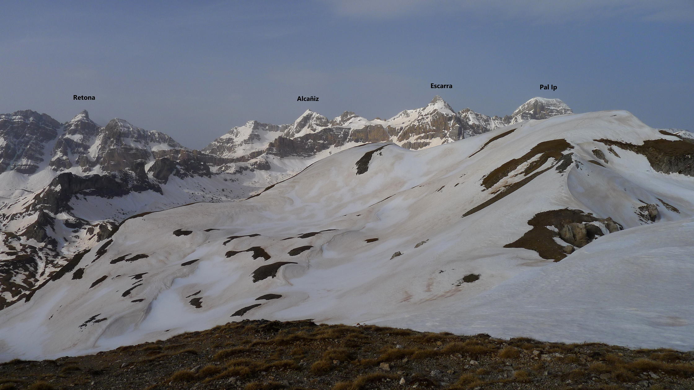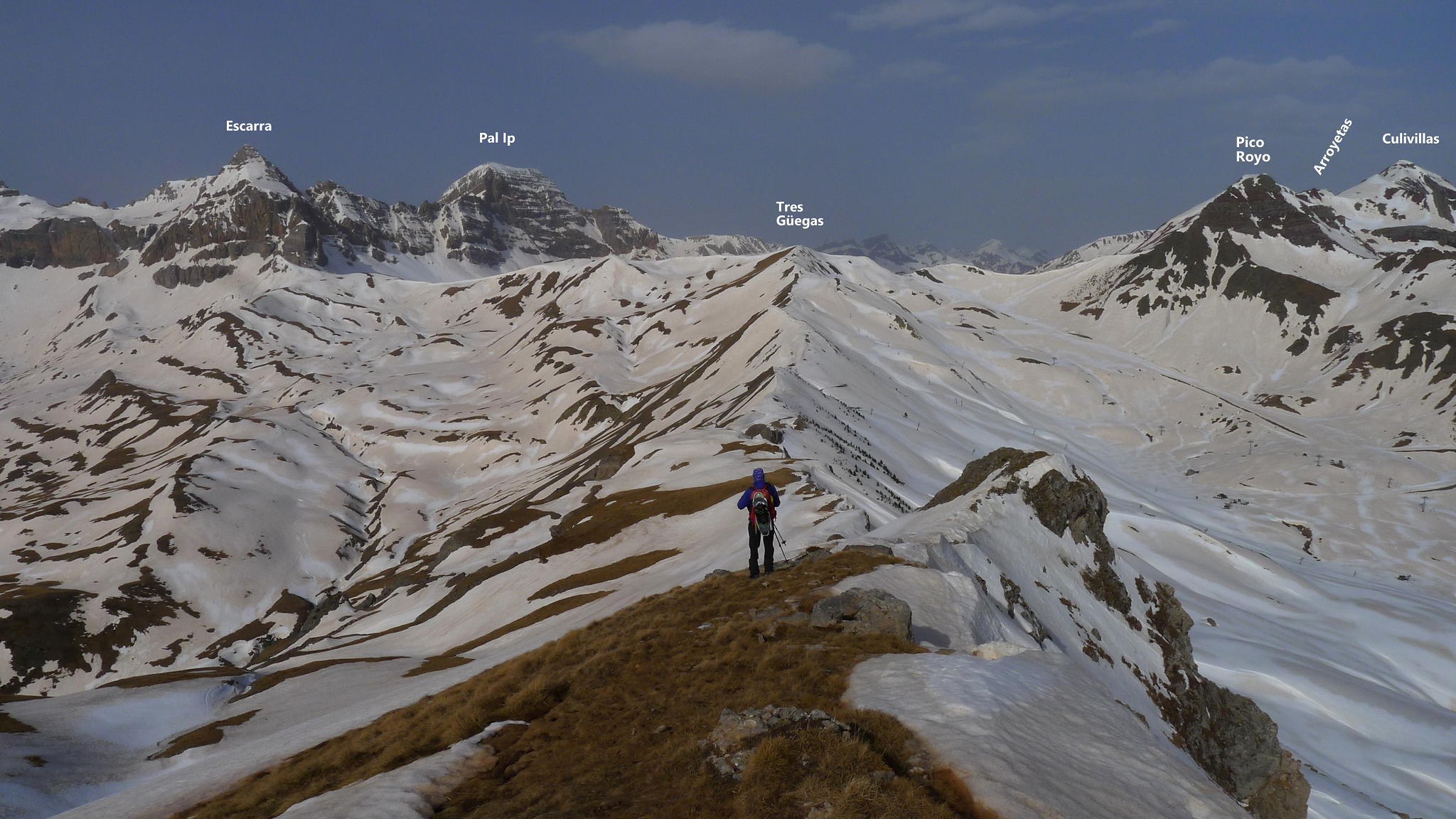 No nos veíamos desde antes de la pandemia, pero me llamó Ramón para salir este martes y me apunté a hacer este recorrido por la sierra Condiana que delimita las pistas de Formigal por el norte, separándolas del valle del barranco de Escarra y con buenas vistas de la sierra de la Partacúa, Punta Escarra, Pala de Ip, etc. Aprovechamos que esta temporada han estado cerradas las pistas de esquí. Hacemos toda la subida cramponeando y la bajada con raquetas.