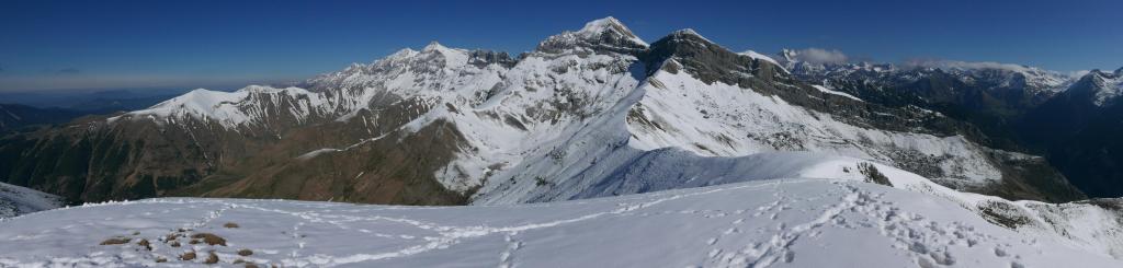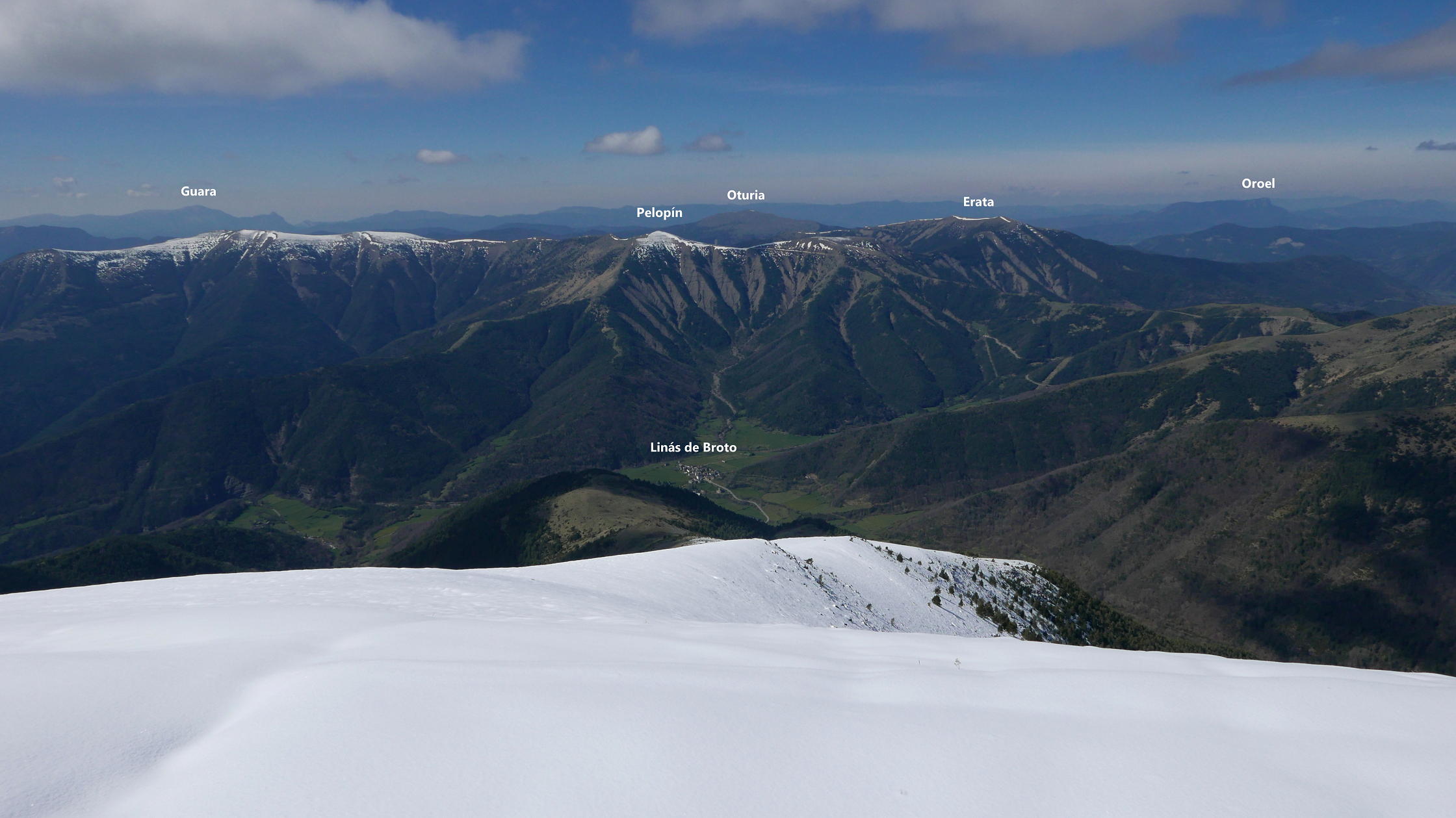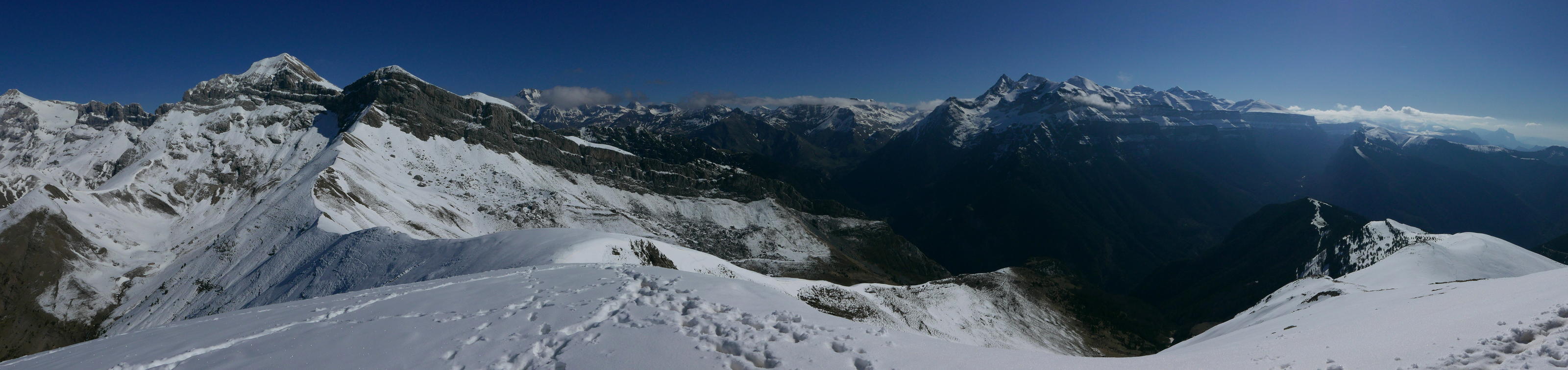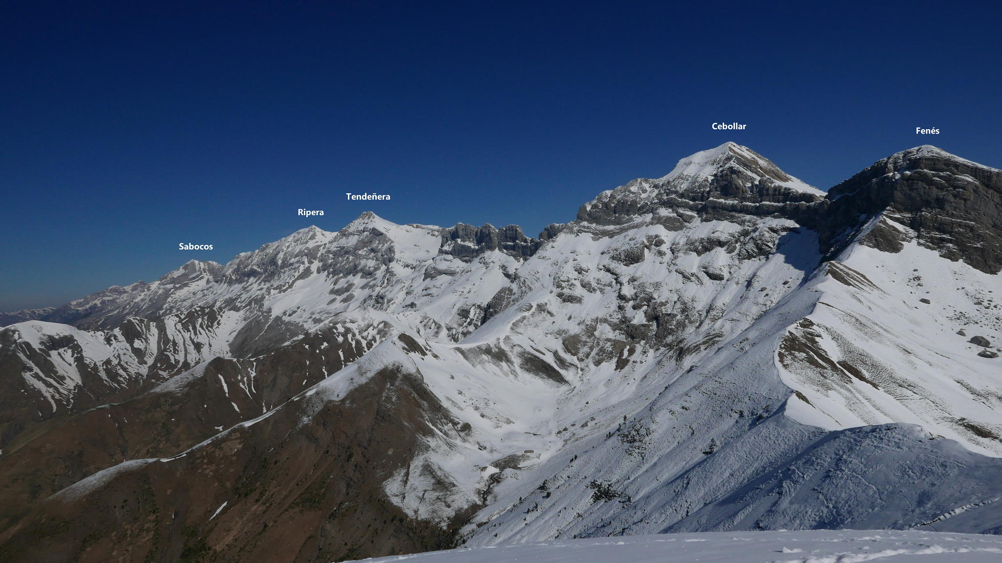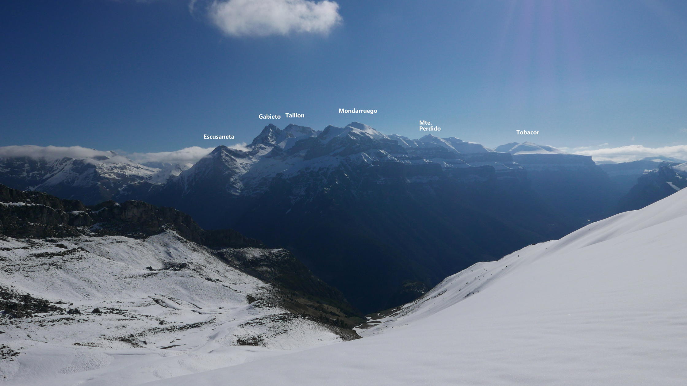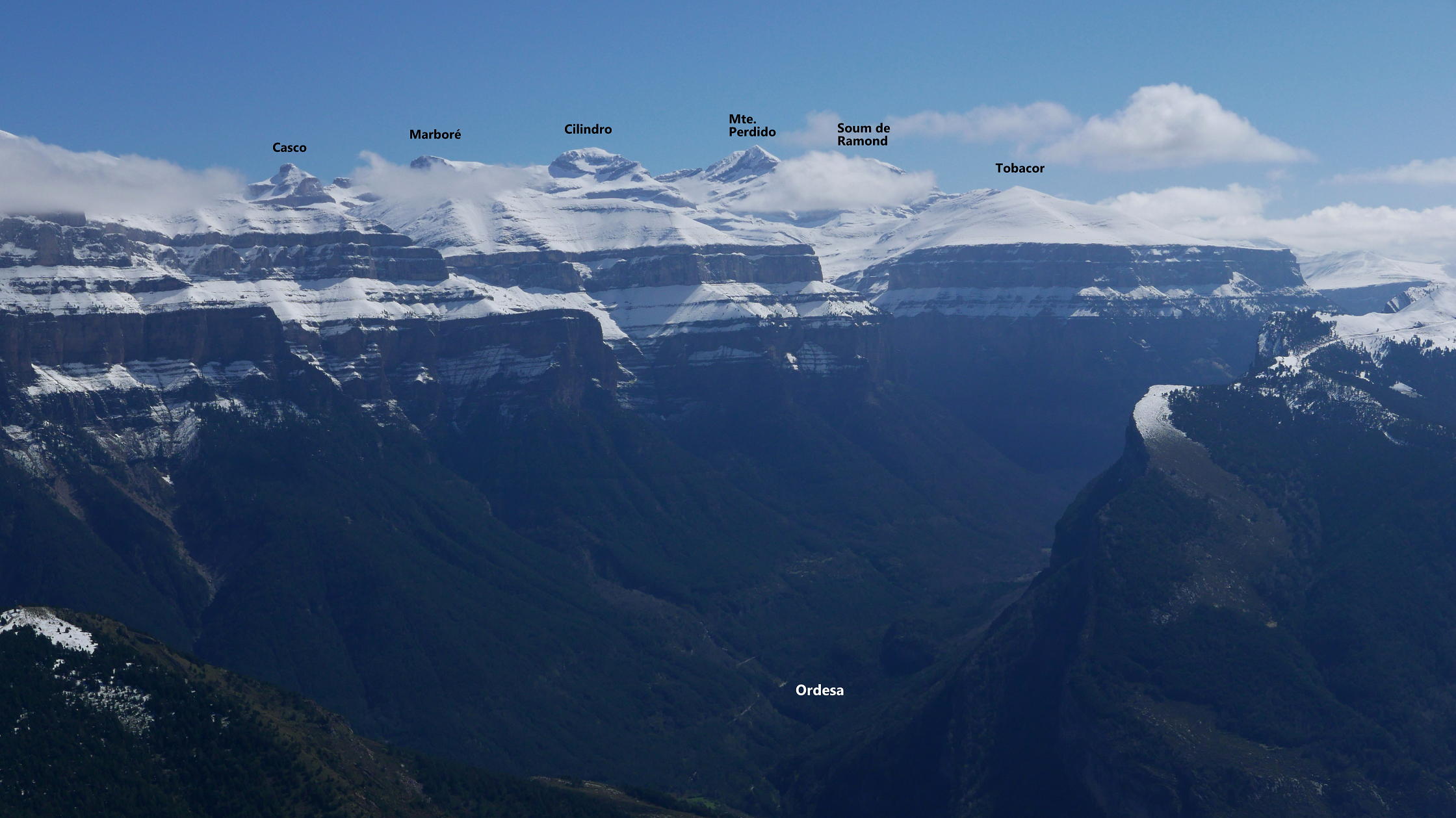 Otro intento para completar la ruta que la semana pasada tuve que dejar a medias. Esta vez, para no repetir la subida, hago el circuito en sentido horario, es decir, subiendo por el barranco de Sorrosal para coronar primero el Tozal de las Comas y bajando por el lomo sur del pico Litro o Mondiciero. Pero me encuentro otra dificultad, la nevada de ayer ha dejado medio metro de nieve y tengo que avanzar durante una buena parte del recorrido por nieve fresca en la que me hundo casi hasta las rodillas. Un buen esfuerzo para una gran recompensa.