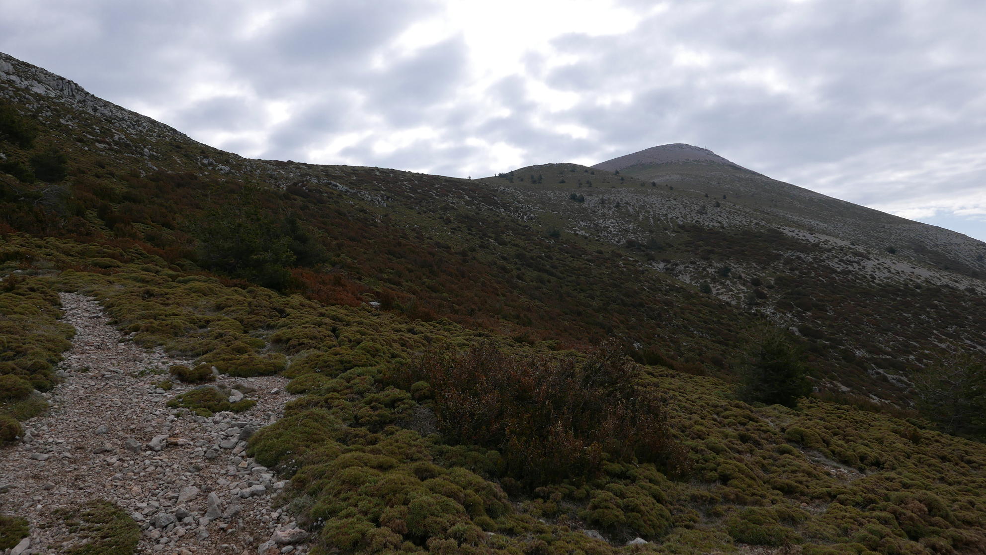 Sencilla técnicamente, esta es una ruta larga para acceder a la 3º cima más alta de Guara, ya que subo desde el sur y el Cabezo de Guara se proyecta hacia el norte de la sierra, asomándose al barranco del río Alcanadre. El recorrido más lógico es desde Pedruel (Cabezo de Guara desde Pedruel) Hoy toda la sierra está cubierta por espesas nubes y la vista hacia el Pirineo con calima; mala suerte, porque hay una gran panorámica desde la cima.