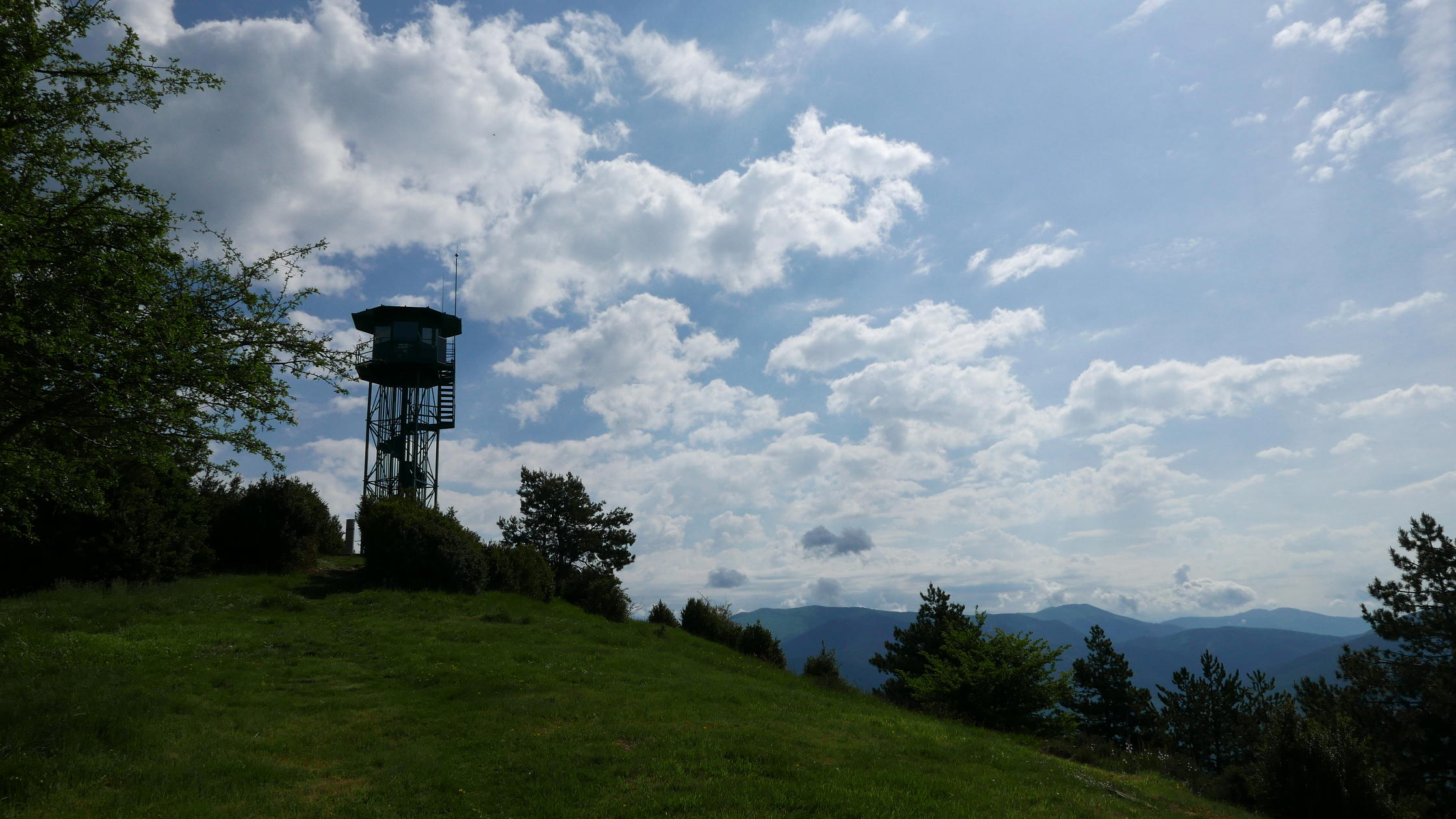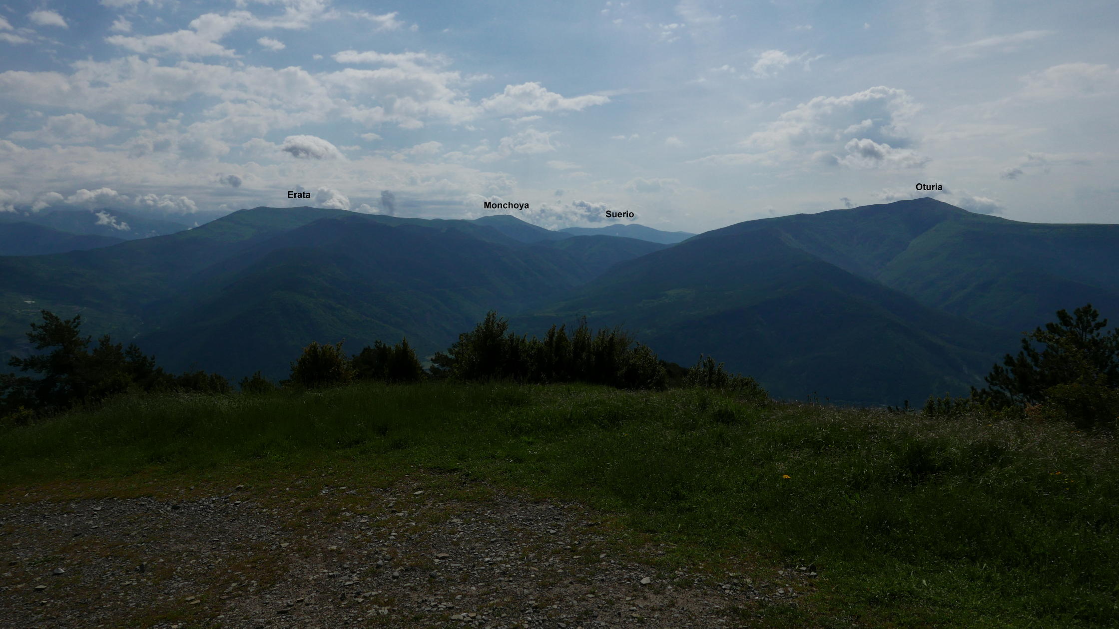 Se llega al promontorio de Santa Lucía (1358m), que es un hombro por el que la senda discurre prácticamente llana, de nuevo en terreno abierto, pudiendo vislumbrar la cima. La pendiente aumenta ganando el ultimo repecho que sale a una pista (1550m 1h18′), pero enseguida la dejamos para afrontar los últimos metros hasta la cumbre (Punta Güe 1579m 1h21′). En la amplia cima hay una gran torre de vigilancia de incendios y el vértice geodésico.