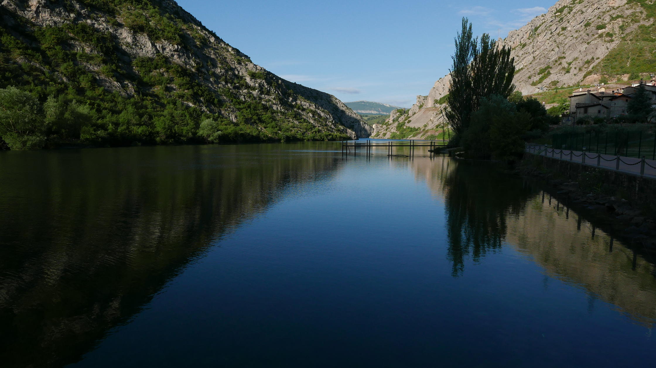 Acceso: Se llega a Sopeira por la N-230 que va a Viella. entre el KM. 108 y 109 tomo la primera entrada al pueblo y desciendo hasta un aparcamiento que hay junto al embalse, en una zona que da acceso a piscinas y canchas deportivas. Atención que al salir a la carretera de nuevo solo se puede girar a la derecha y, enseguida, pasado el 1º túnel, hay otra entrada al pueblo que permite pasar bajo la nacional y salir correctamente en dirección a Lérida.