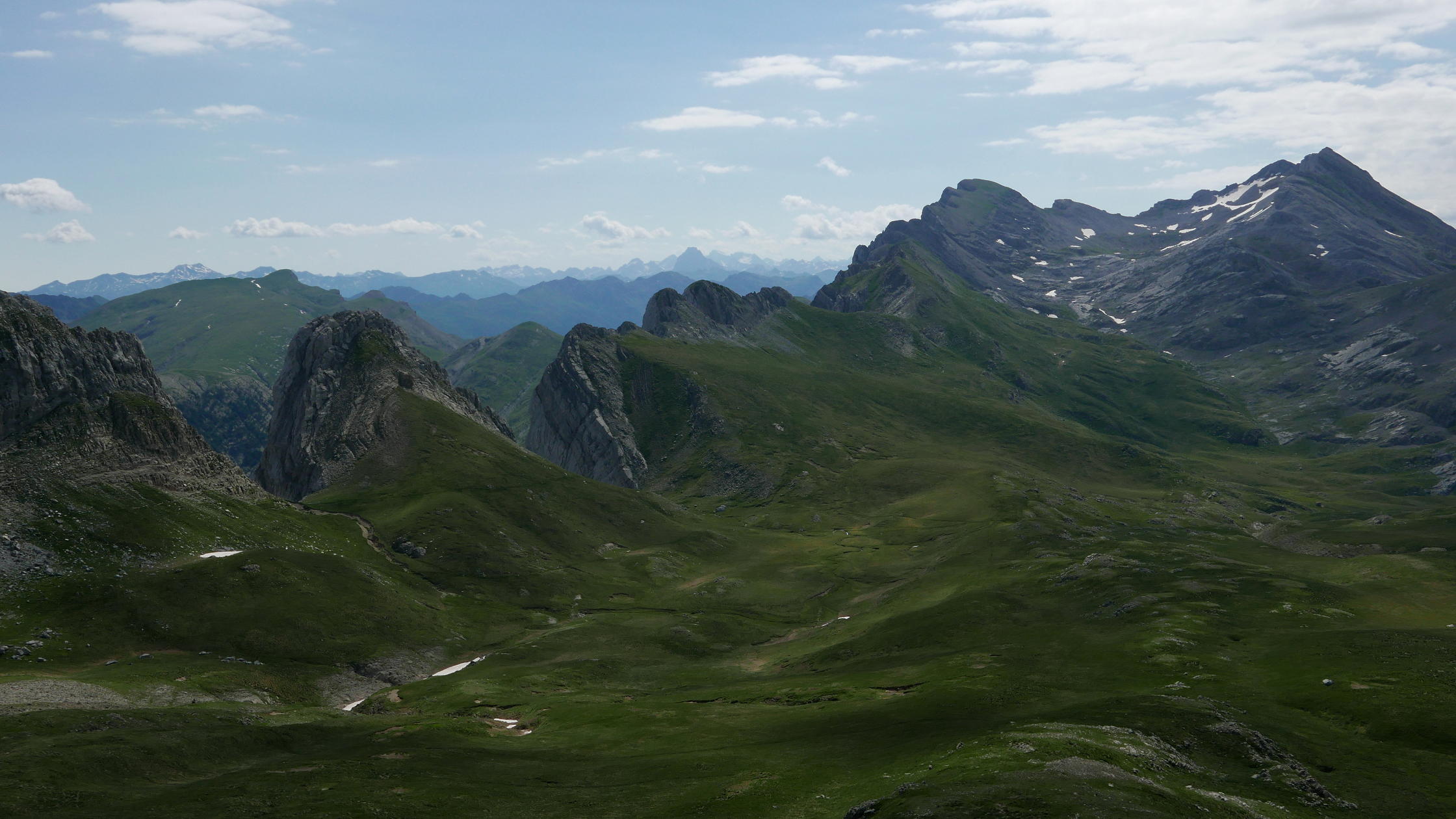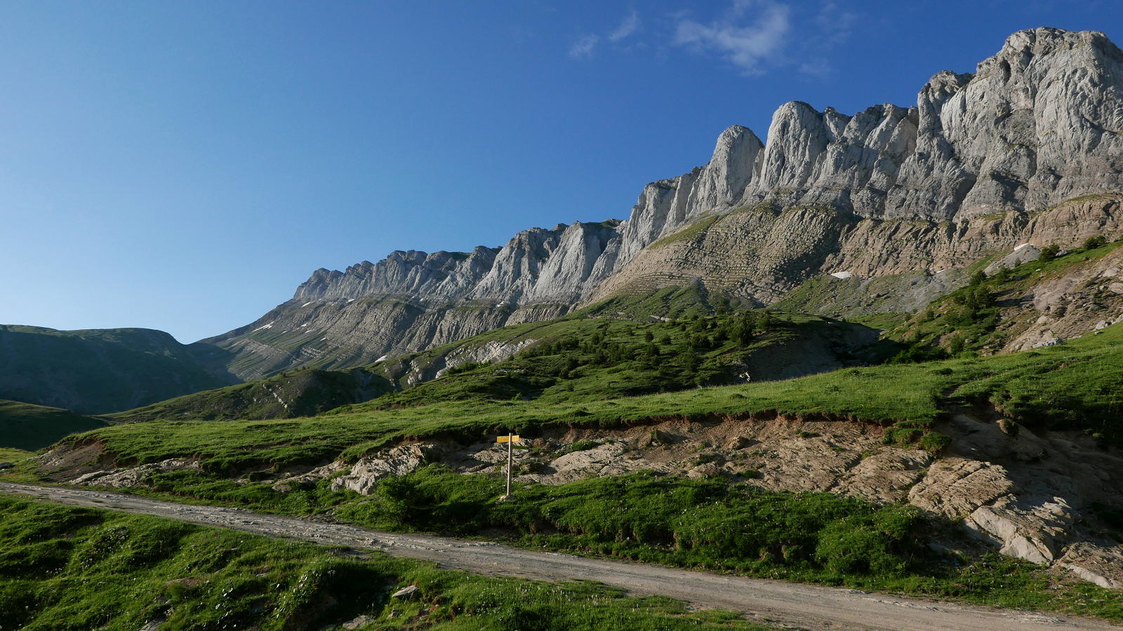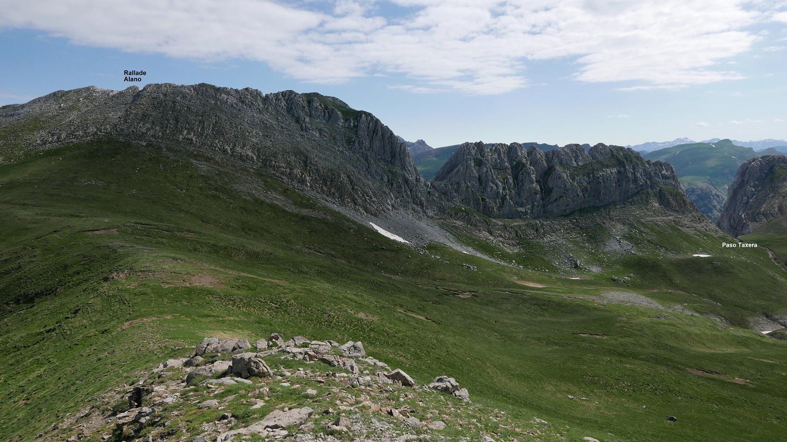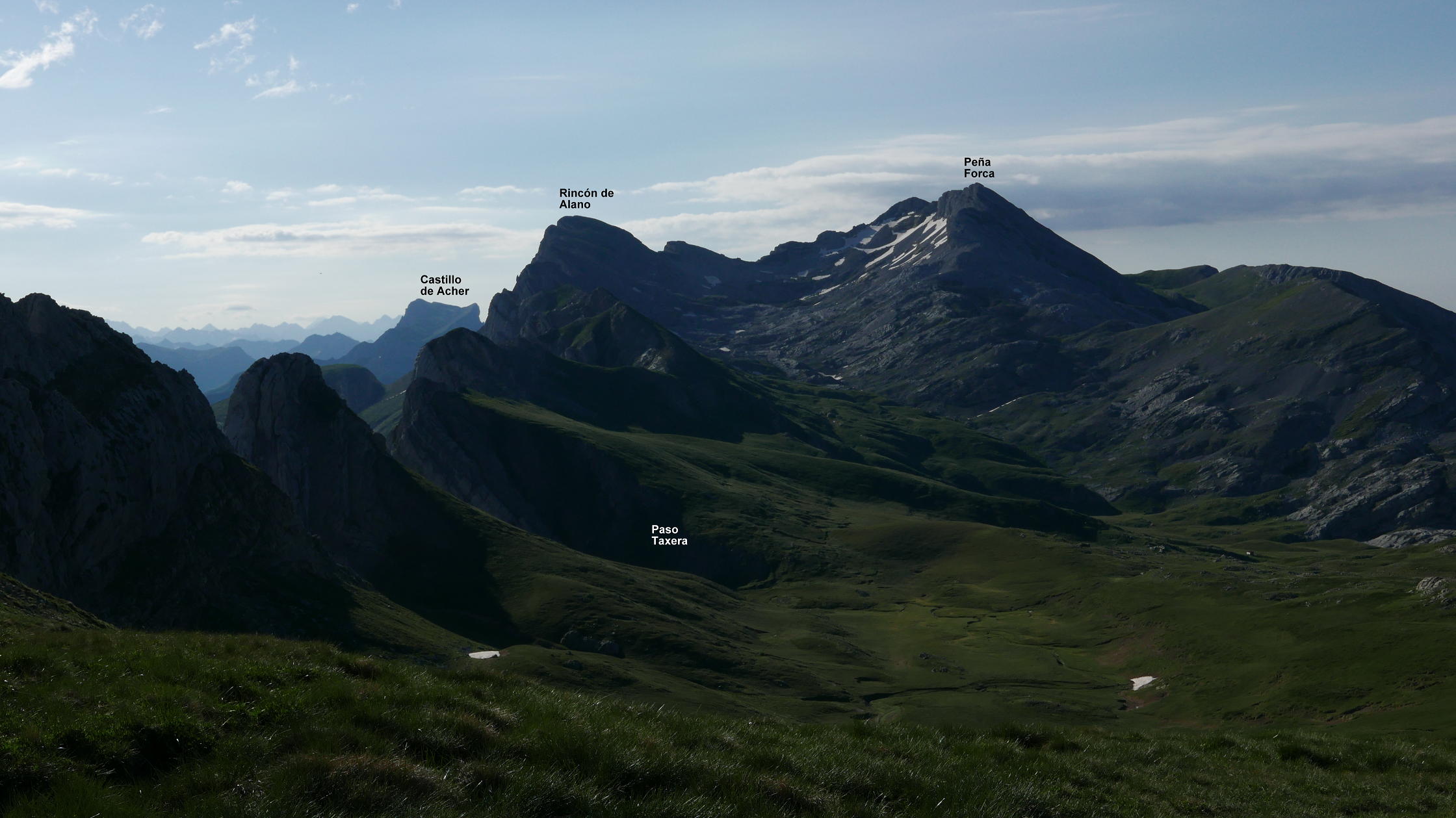 Preciosa excursión que recorre la parte occidental de la Sierra de Alano y las cotas que hay al sur de dicha de sierra. Desde Tacheras, la sierra de Alano se eleva con un imponente aspecto dolomítico, separando el barranco de Petraficha al norte, de una vaguada de suaves pastos al sur. La potente verticalidad que presenta en su flanco norte se quiebra por una brecha, que es el Paso Tacheras. La ruta no tiene dificultades técnicas, pero el terreno kársitico puede resultar complicado si la visibilidad no es buena.
