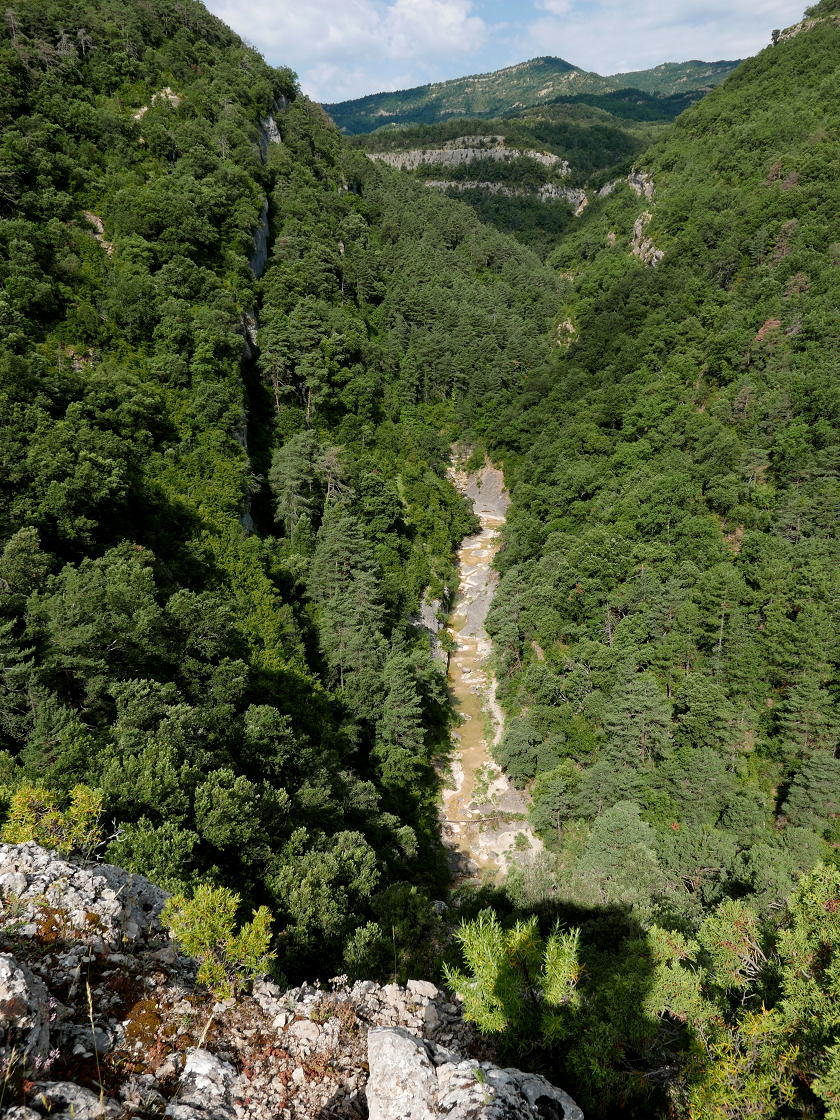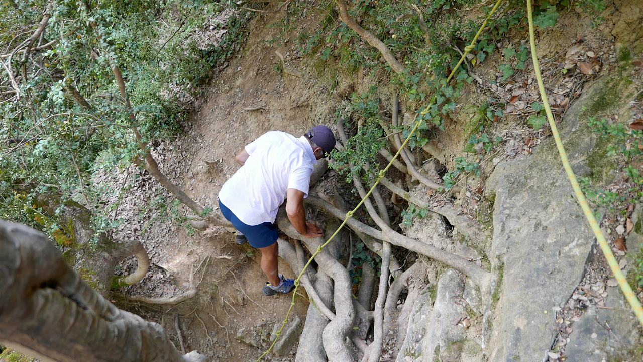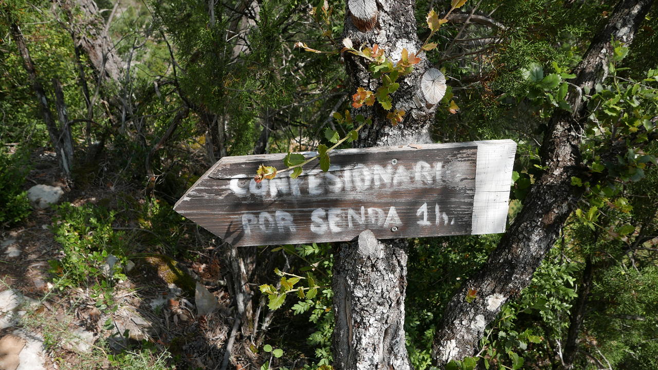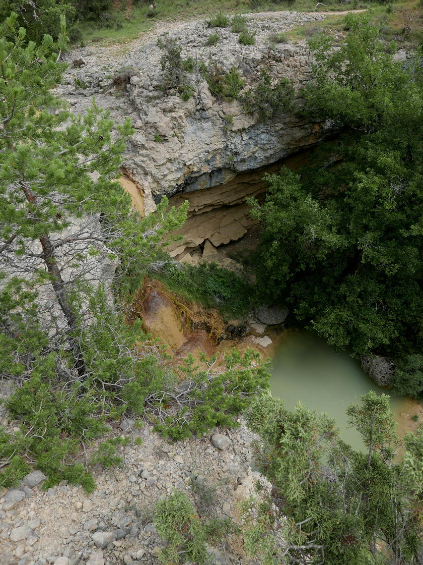 Tomamos una desviación a la derecha (730m 0h21′). Más adelante nos asomamos al mirador de la Predicadera (820m 0h44′), con una gran vista hacia la parte superior del barranco. Otra desviación a la derecha (860m 1h00′) dejando el camino a Morcat a la izquierda y cruzando un barranco para dirigirnos al norte. Se cruza el barranco de Sieste y giramos a la derecha. Iniciamos un camino de descenso hasta la cascada de Campodarbe pasando por las cuevas que debieron ser refugio de pastores (cueva de las Golondrinas), un enclave precioso. Pero volvemos a la senda principal para continuar ya por el cauce y remontar unos metros hasta encontrar la cascada del Confesionario, también llamada Coño del Mundo. Los más atrevidos podemos subir por la izquierda, entre las raíces de unos árboles y con una cuerda de ayuda a la parte de arribas de la cascada.