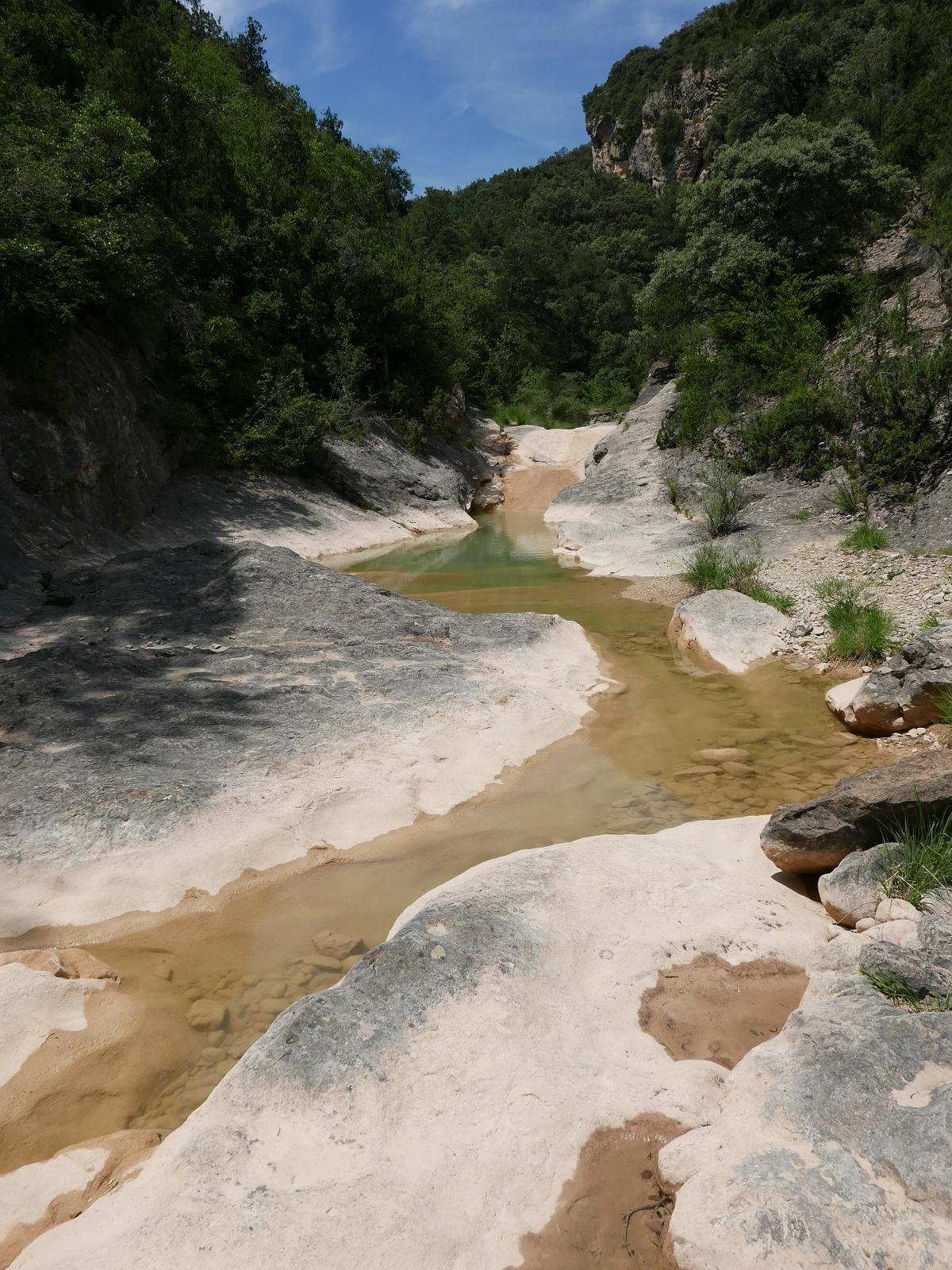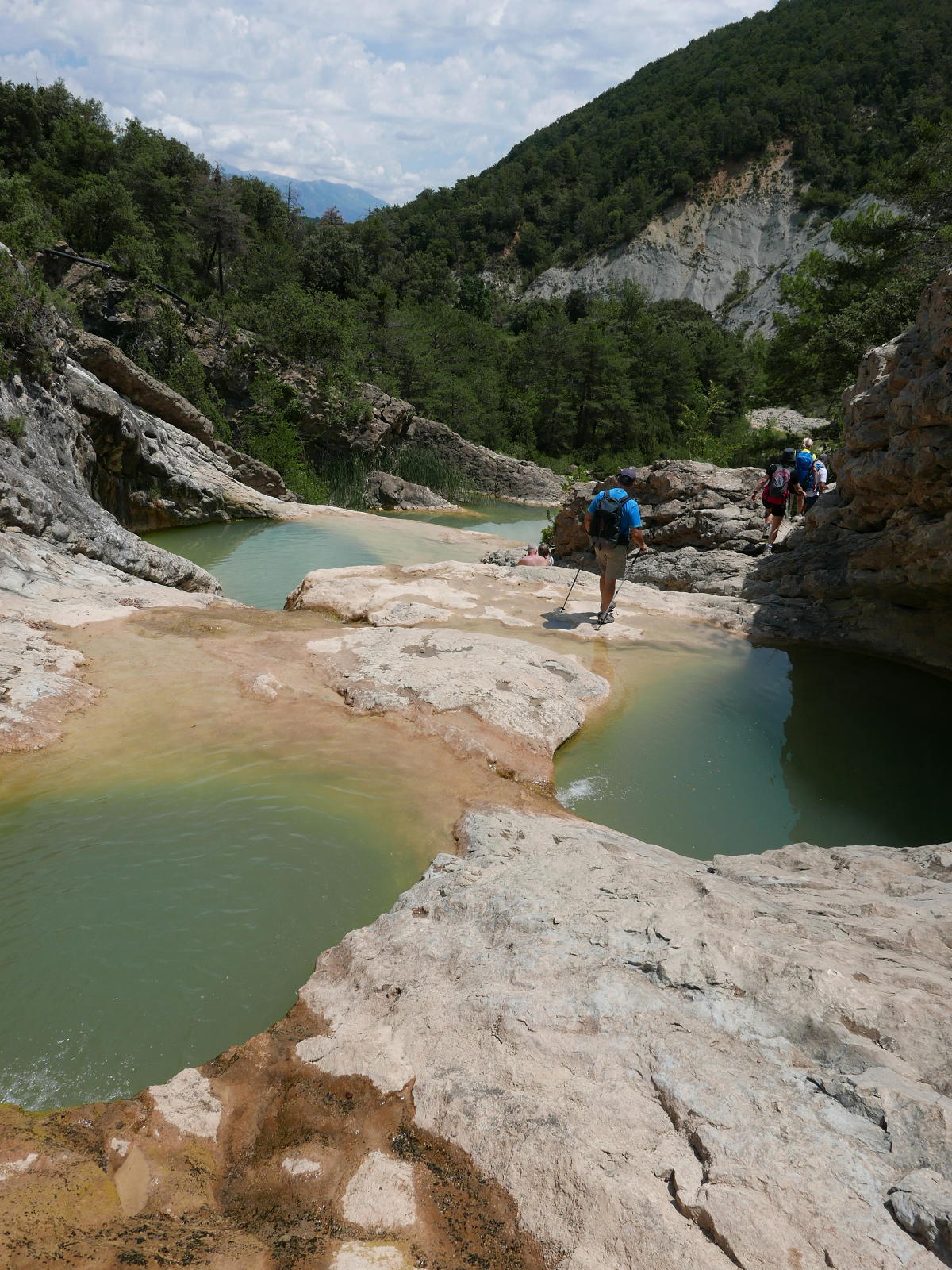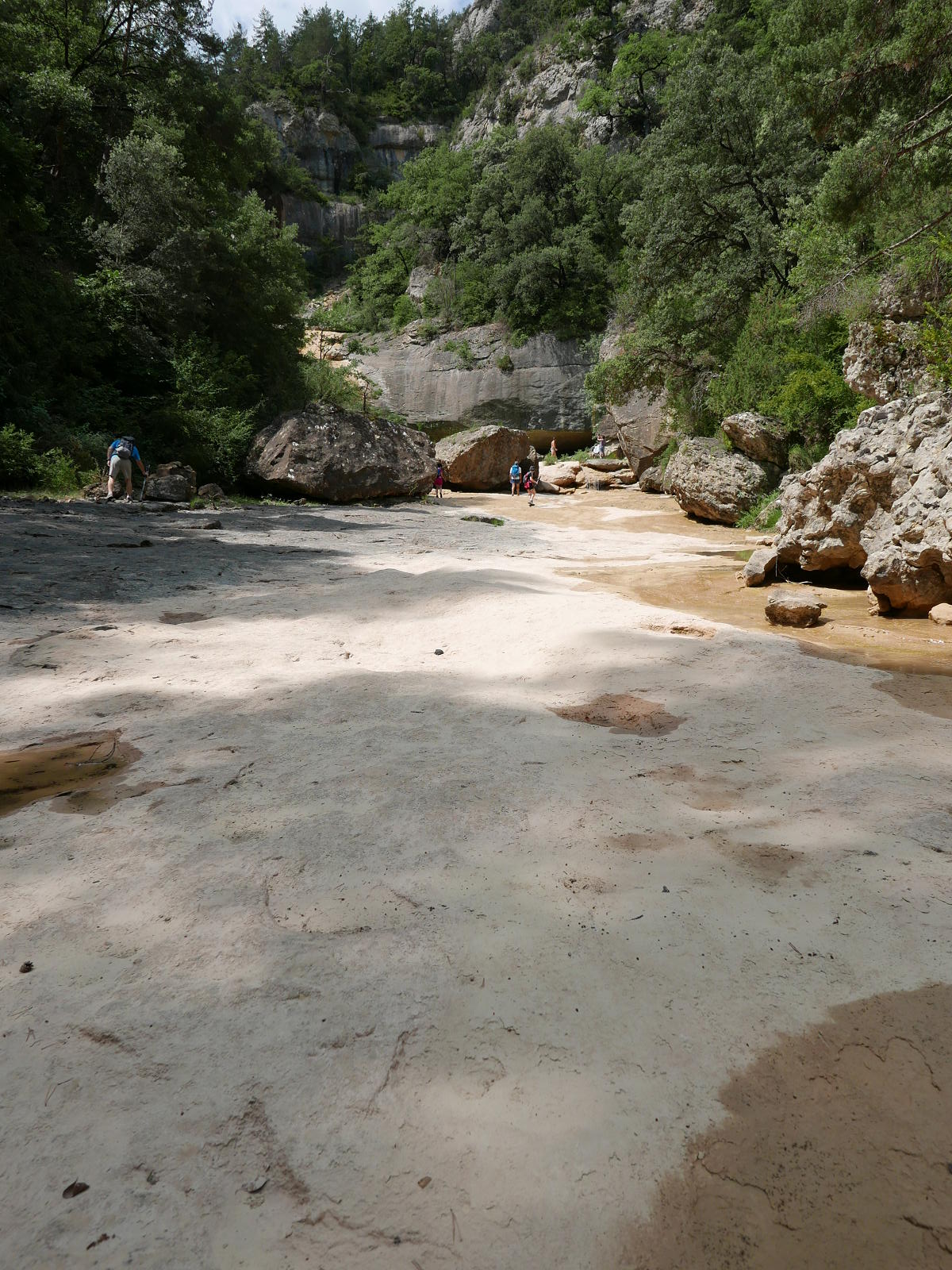 Es un enclave espectacular con acceso relativamente sencillo. La subida por una senda fácil y bien señalizada y el descenso por el cauce del barranco, sin dificultades, pero a veces por algún bloque de roca en el que hay que tener cuidado. El barranco lleva siempre poca agua, así que se puede hacer con calzado normal prácticamente sin mojarse aunque sea junio, supongo que a final de verano casi no habrá agua. En las pozas hay algún bañista, puede que en pleno verano y en fin de semana esté más saturado. En cualquier caso cascadas y pozas son una preciosidad y las ruta es muy divertida. El tiempo de recorrido puede ser más corto, pero nosotros hacemos muchas paradas.