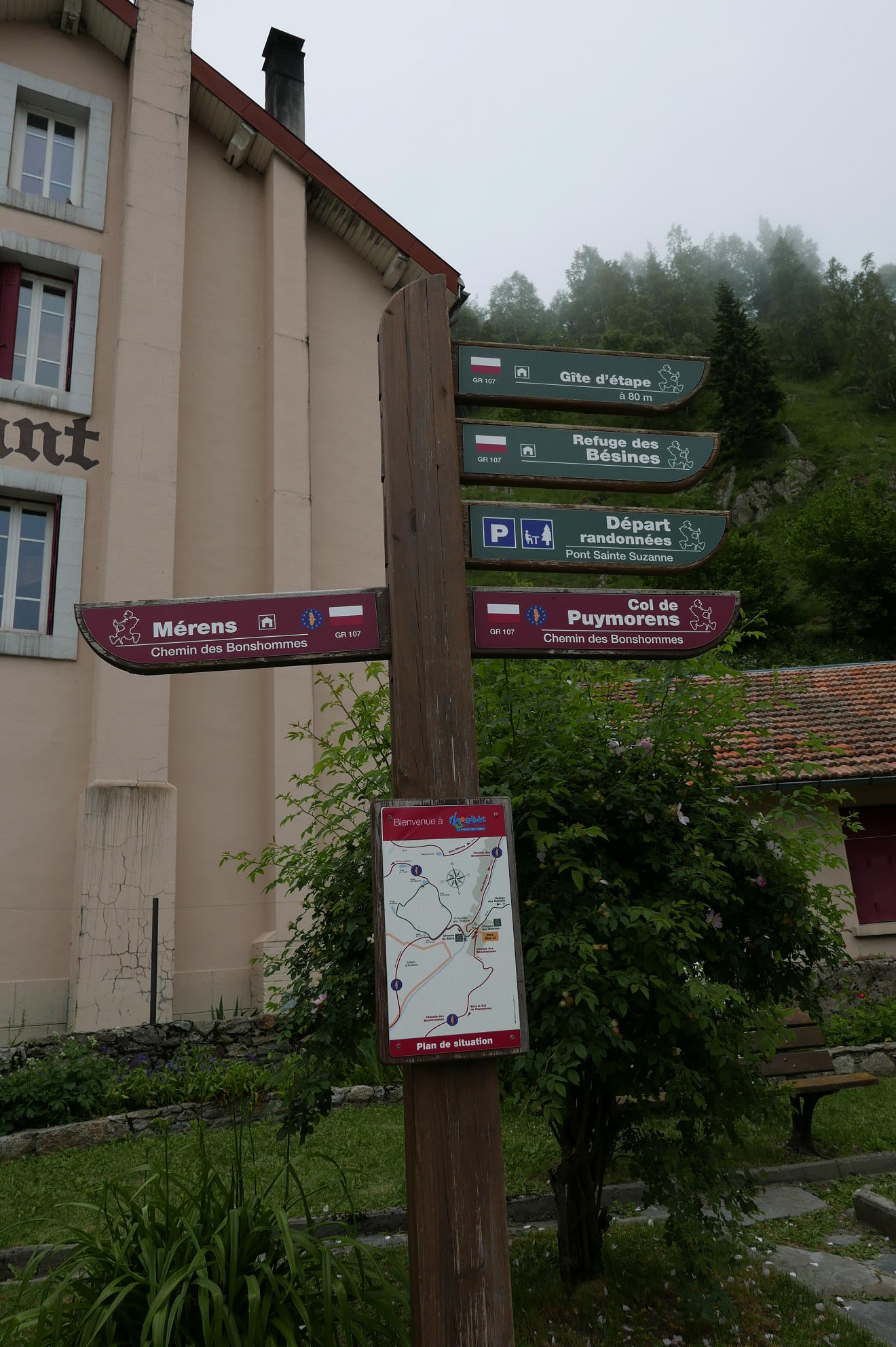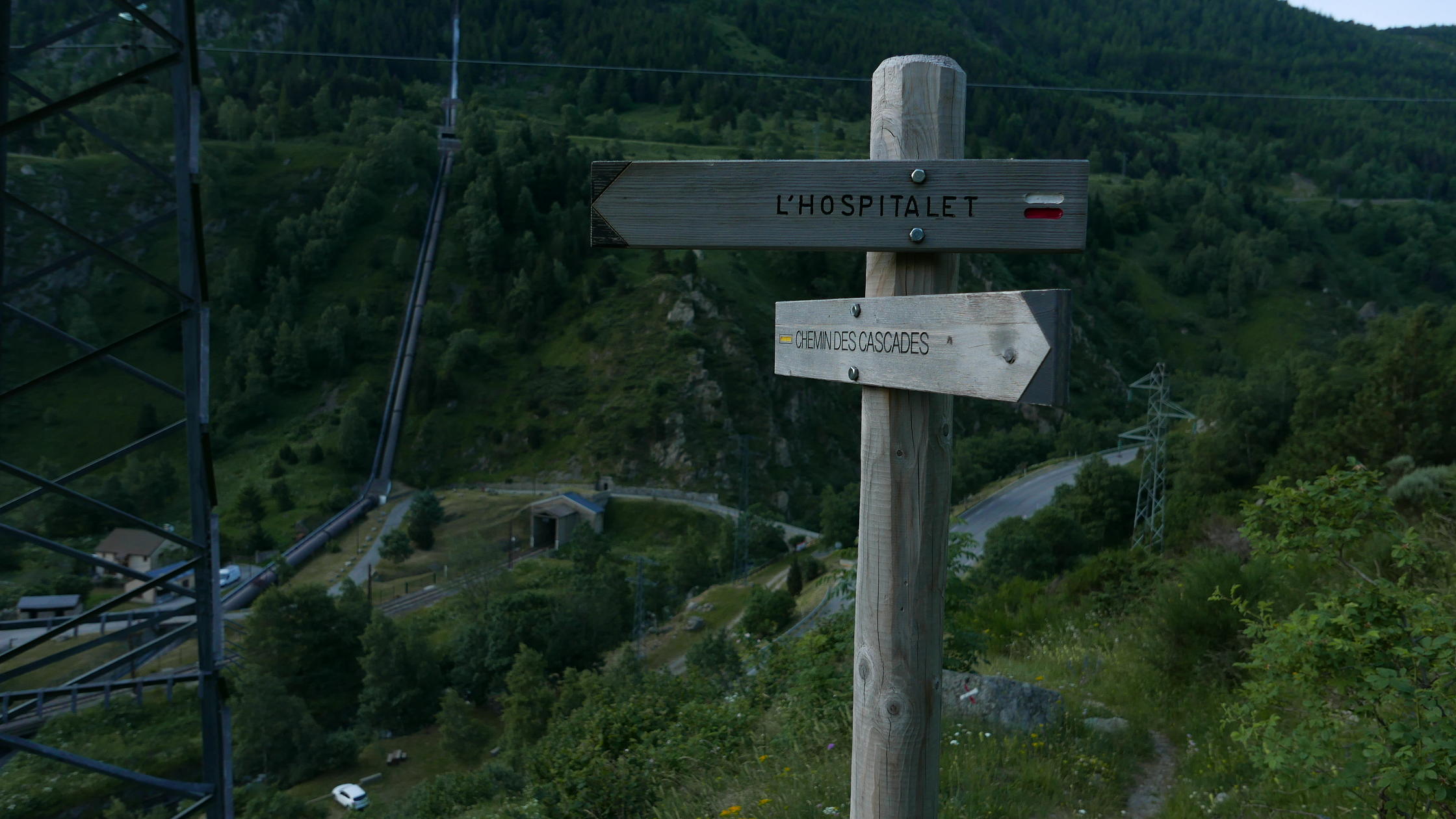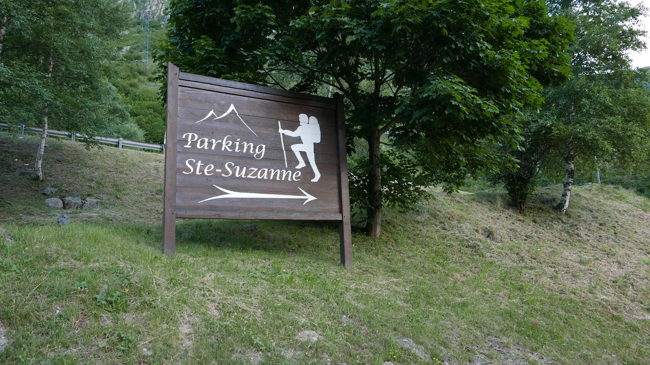 Acceso: Me costó un poco encontrar el aparcamiento, ya que recordaba que se podía entrar desde la carretera justo antes de las instalaciones hidroeléctricas al llegar a Hospitalet-près-l’Andorre, pero ese acceso está cortado yahora hay que entrar en el pueblo y seguir las indicaciones que, por la otra orilla del río Ariège, te llevan hasta un puente que cruza el río y llegas al área de aparcamiento Ste. Suzanne.