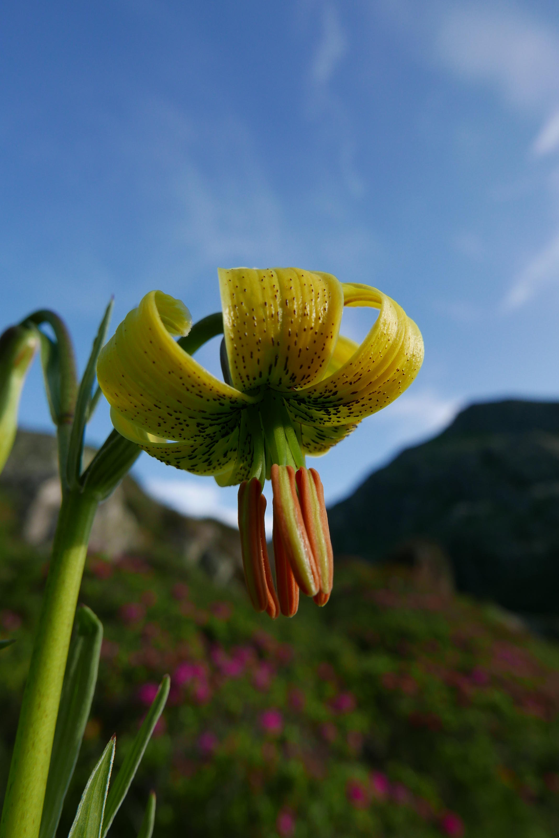 La canal tiene mucha pendiente, es dura y hay que ralentizar la marcha, pero no es difícil. Subo sobre todo por las zonas herbosas, pero también por alguna pedrera. Da acceso a un pequeño collado (2600m 3h24′) entre el Escobes y el Albe. Aquí giro a la derecha bordeando un poco el contrafuerte por el norte, pero enseguida vuelvo girar a la derecha para entrar en otra canal muy pendiente, principalmente herbosa también, de la que salgo a la derecha por roca con algún apoyo de manos. Este punto es esencial, hay que fijarse en el hito que hay a la derecha. Tras esta zona rocosa se abre el lomo final herboso, amplio y mucho más suave, que lleva a la cima del Pic de l’Albe (2749m 3h51′), donde paso media hora larga.