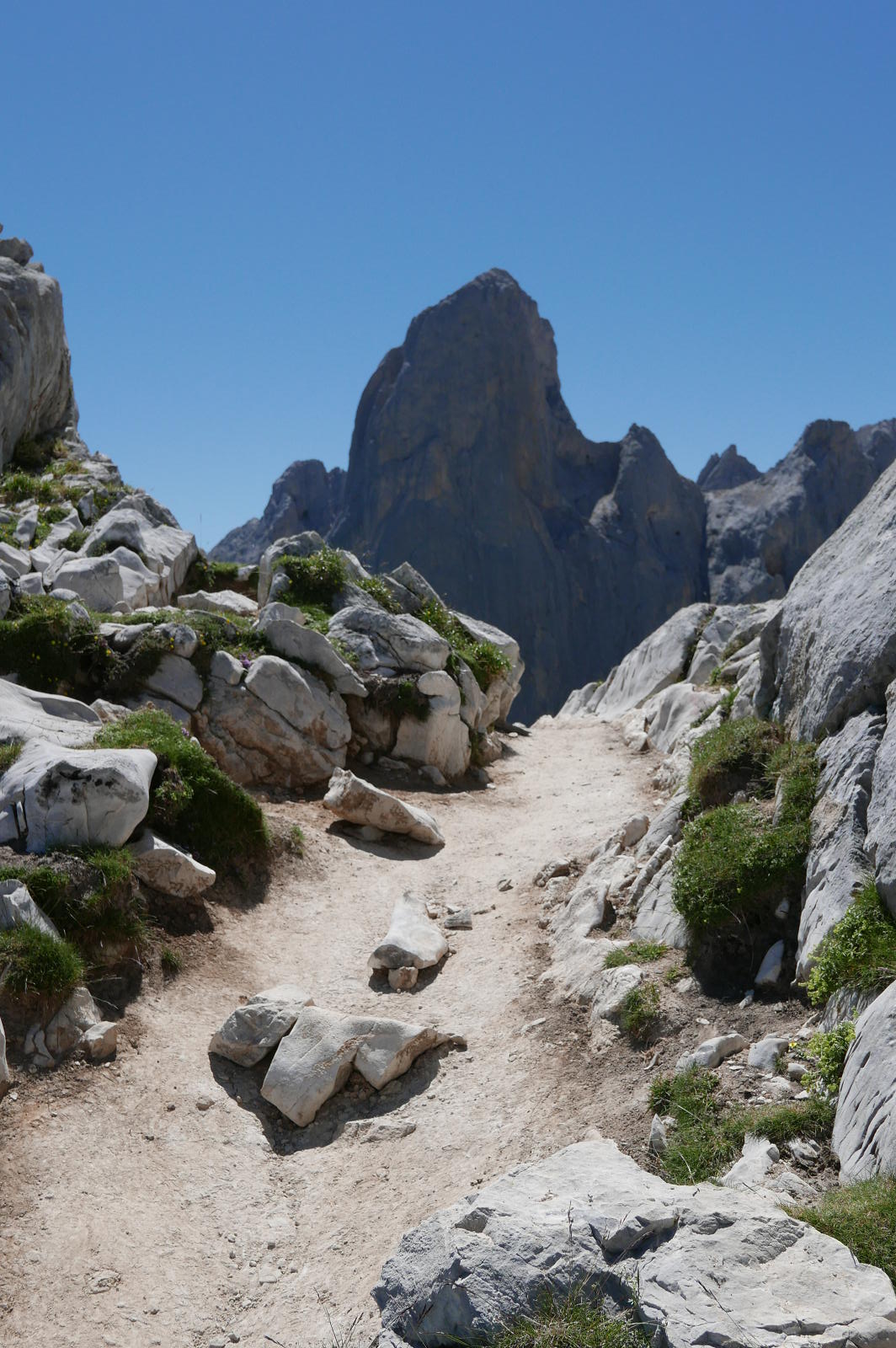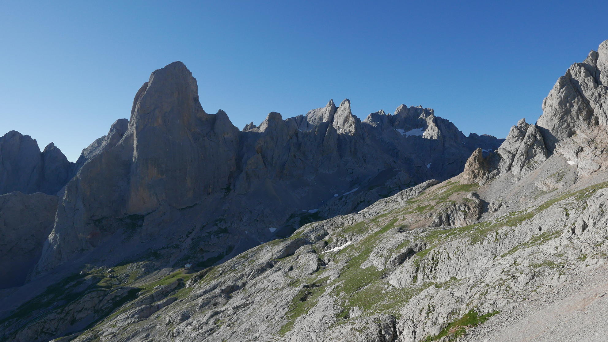 Torre Cerredo es la cumbre más alta de los Picos de Europa y se encuentra dentro del macizo Central. Caótico territorio de torres calizas, con una personalidad muy particular. Aunque visito asiduamente las montañas asturianas, hacía mucho que no me acercaba a los Picos de Europa. Ya había hecho esta misma ruta hace muchos años, pasando noche en el refugio Delgado Úbeda, bajo las paredes del Naranjo de Bulnes; también subí el Torrecerredo con Josan Zugasti, desde el refugio de los Cabrones, pero me apetecía repetir haciendo toda la ruta en el día, y tengo que decir que es muy exigente por desnivel y distancia.