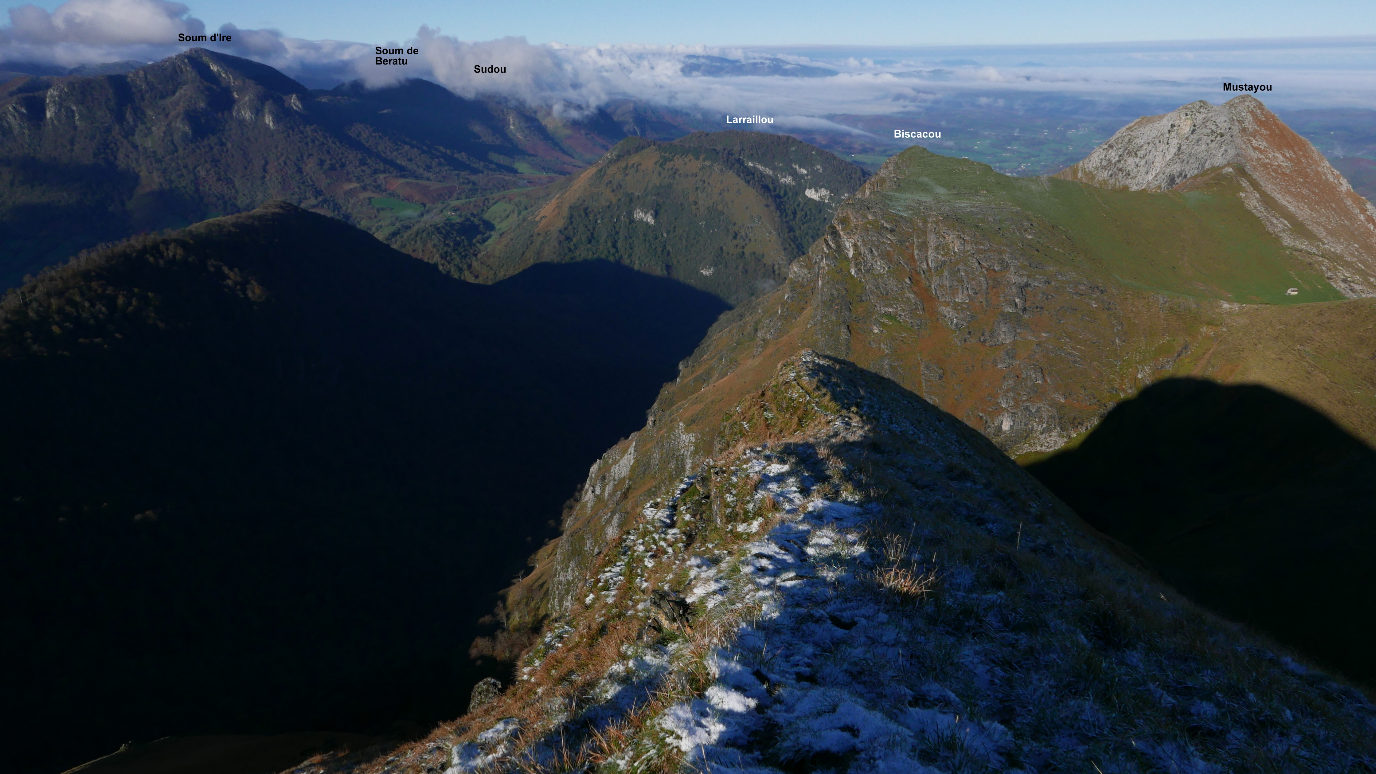 El macizo está muy bien diferenciado y, de hecho, con sus 1266m de altura, el Trône du Roi tiene una prominencia de casi 600m. Se puede combinar completando con las cimas que tiene al norte (Biscacou, Souturou y Mustayou) que yo dejaré para una incursión desde el norte. En esta ocasión la combino con la montaña que hay al sur, el Saraillé, por el col de Launde.