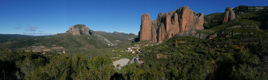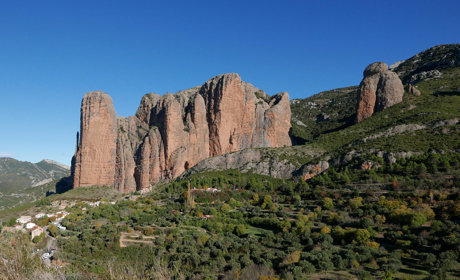 Acceso: Por la A-132, en el KM 35, tomamos la HU-310 a Riglos. Justo antes de llegar al pueblo se toma a la derecha la carretera que sube al aparcamiento del cementerio, donde hay unas cuantas furgonetas y autocaravanas de escaladores.