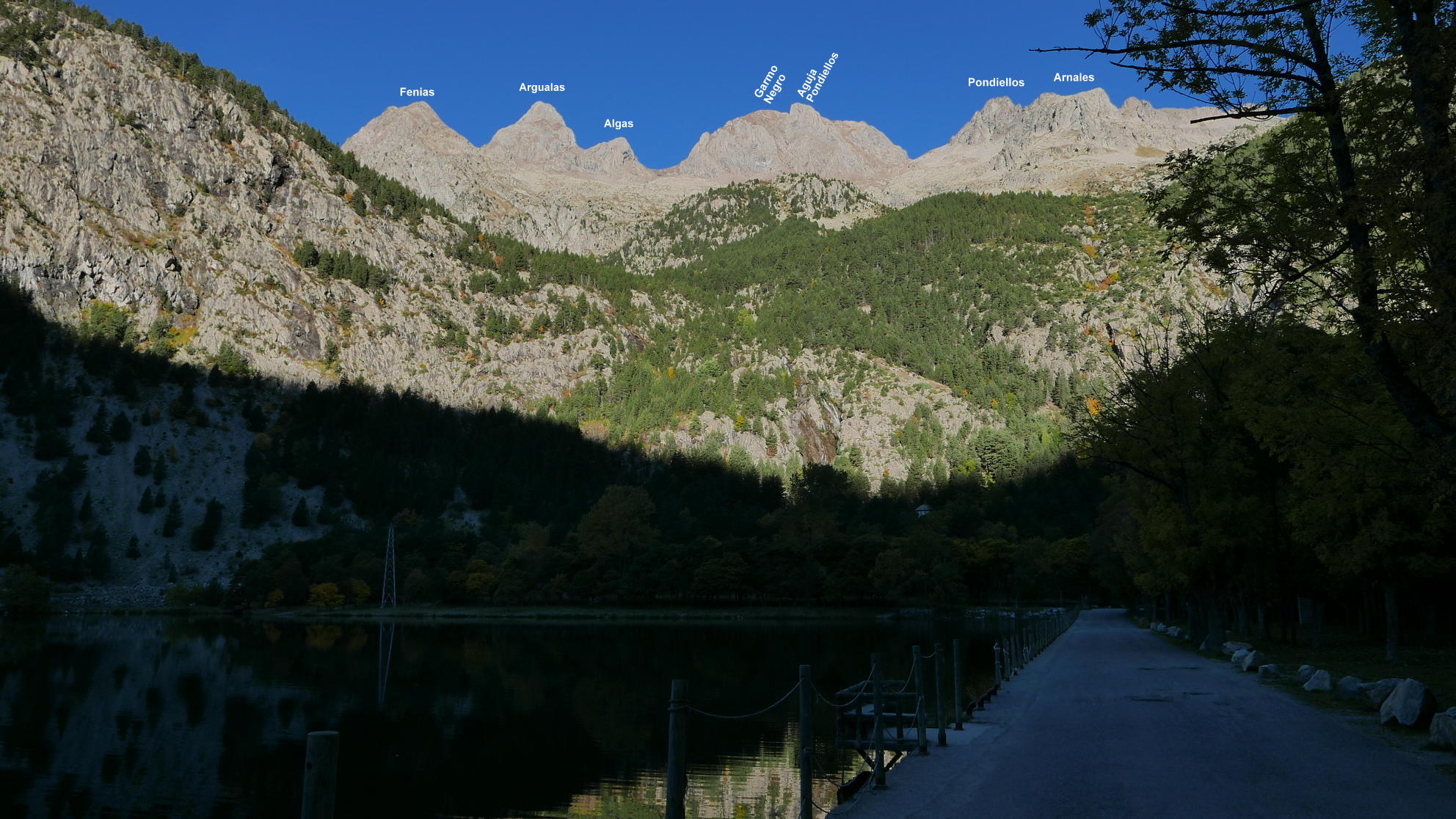 Acceso: Dese la carretera A-136 que asciende al Portalet, se toma la desviación a Panticosa pueblo y al Balneario de Panticosa. Si la primera zona de aparcamiento está muy ocupada, se puede aparcar al otro lado del lago en un aparcamiento en una zona de árboles.