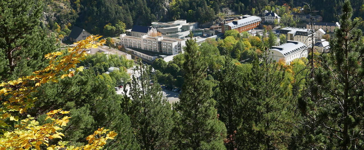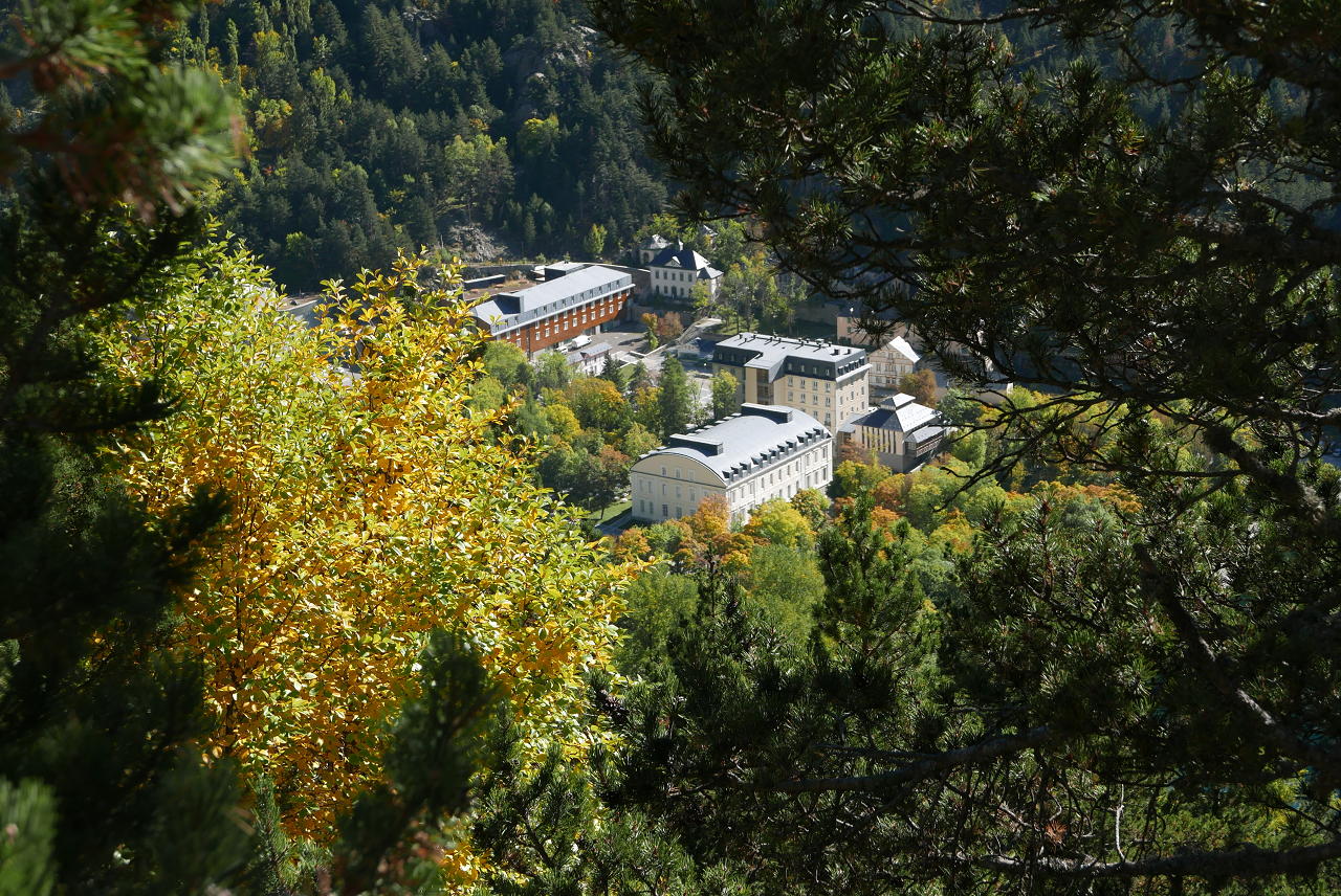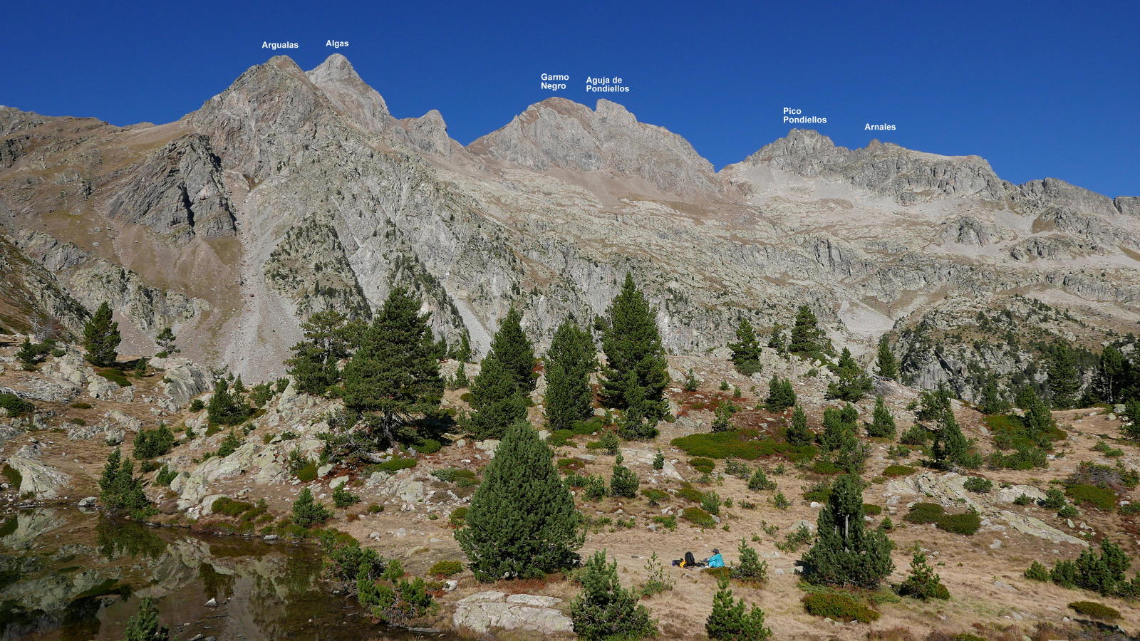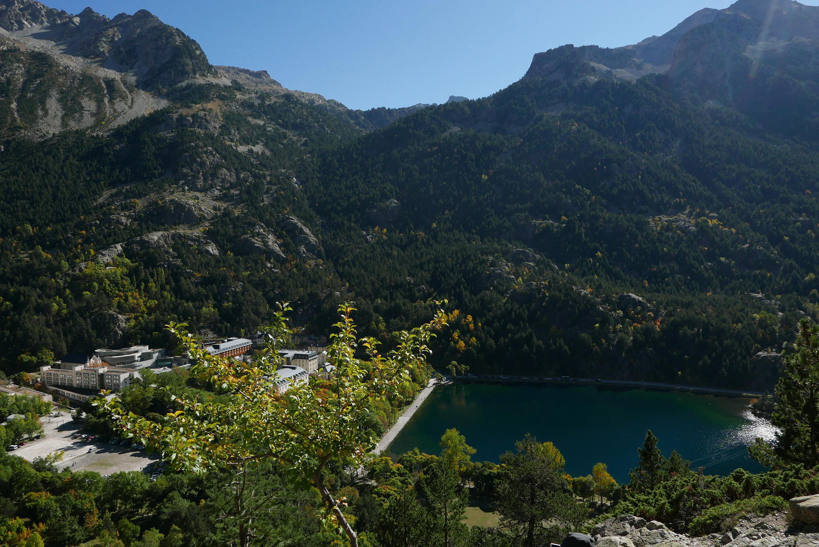 Descripción de la ruta: Balneario de Panticosa (1635m). Se cruza sobre la presa del lago y seguimos unas indicaciones por el bosque que nos llevan a la cascada de Argualas. A su derecha se inicia un sendero ascendente en zigzag sobre la orilla derecha del barranco de Argualas. Enseguida encontramos la Fuente de la Laguna, un edificio de piedra dentro del cual brota el agua de la roca. Empieza entonces la pendiente más fuerte. Detrás de nosotros, entre el bosque otoñal, tenemos una magnífica vista cenital del Balneario y el lago.