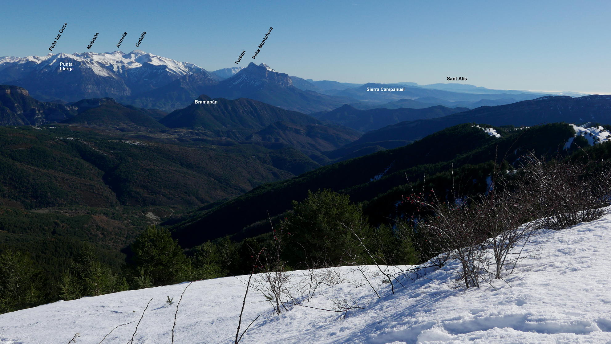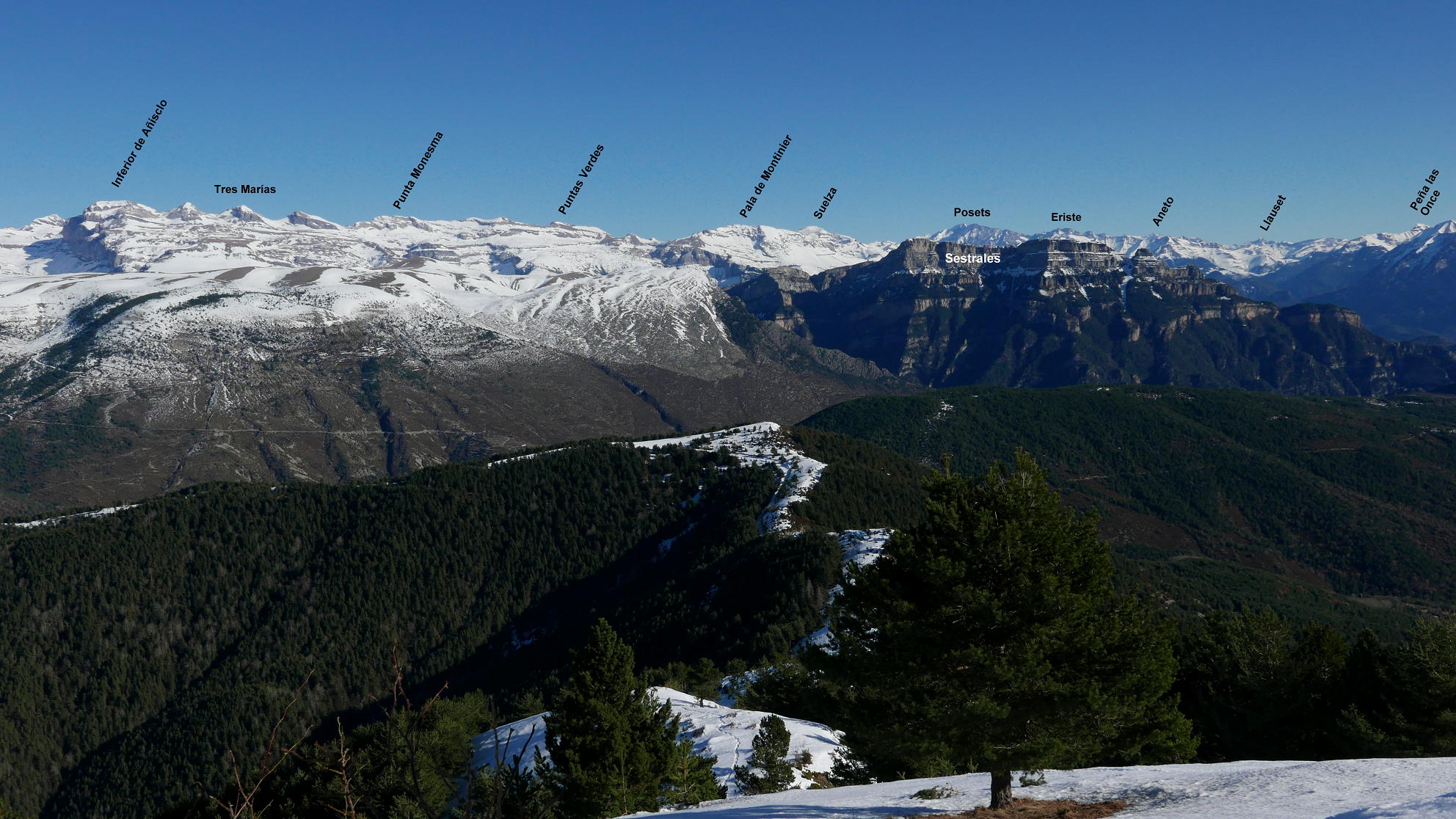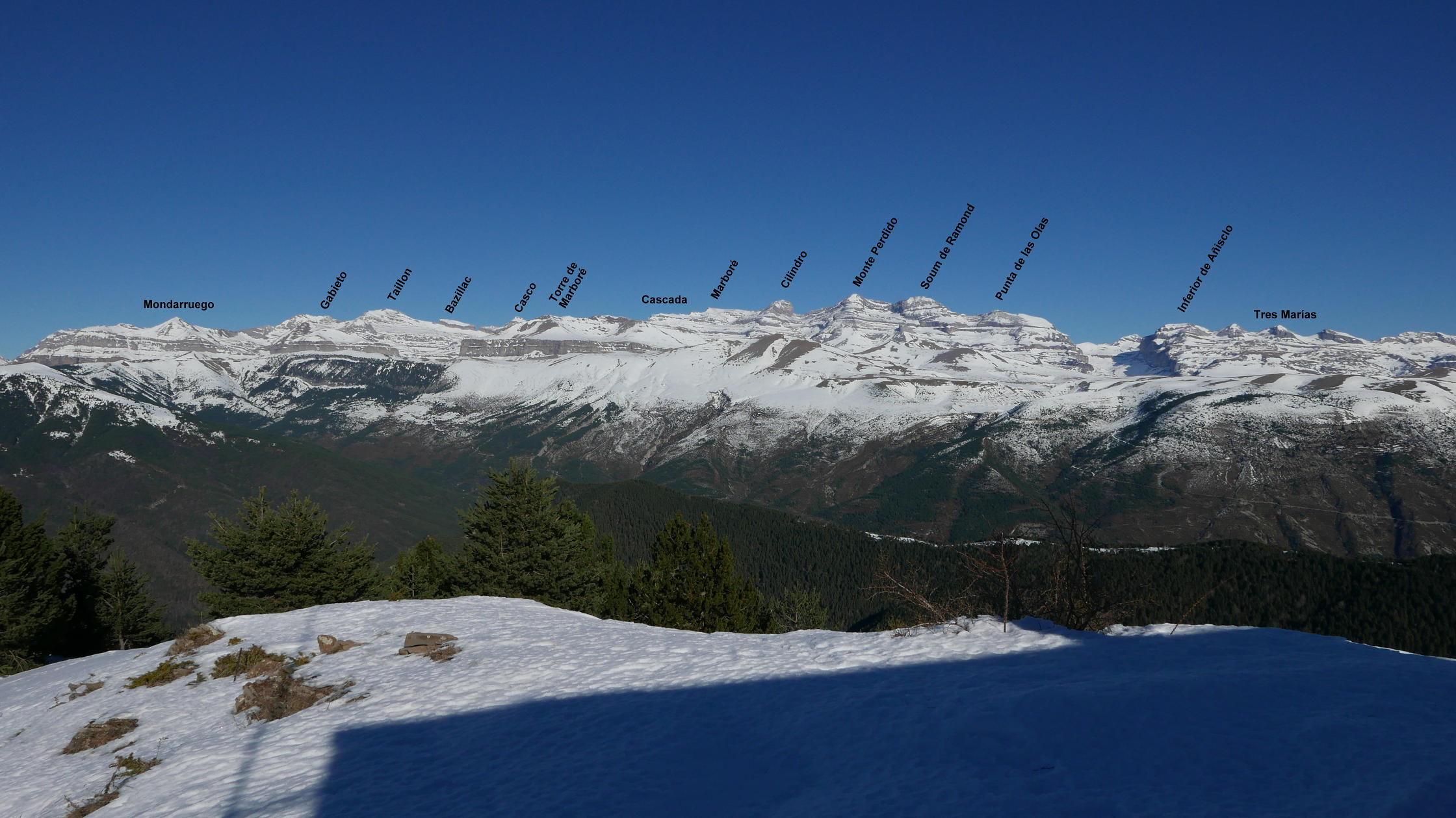 La Punta Comiello es la máxima altura de la sierra de Bolave, que se extiende al sur de Fanlo, separando el barranco de las Guargas de Cajal, al oeste, que desemboca en el Ara, y el barranco de Yesa, al este, que desagua al Bellós y al Cinca. Su mayor atractivo son las vistas al macizo de Monte Perdido. Está cerca de algunas cimas que hice el invierno pasado, el Suerio y la Trallata, así que la zona tiene bastantes posibilidades de hacer picos sencillos y poco visitados. Ahora, en invierno, la dificultad depende más de las condiciones de la nieve. En este caso hacemos prácticamente toda la excursión con raquetas.