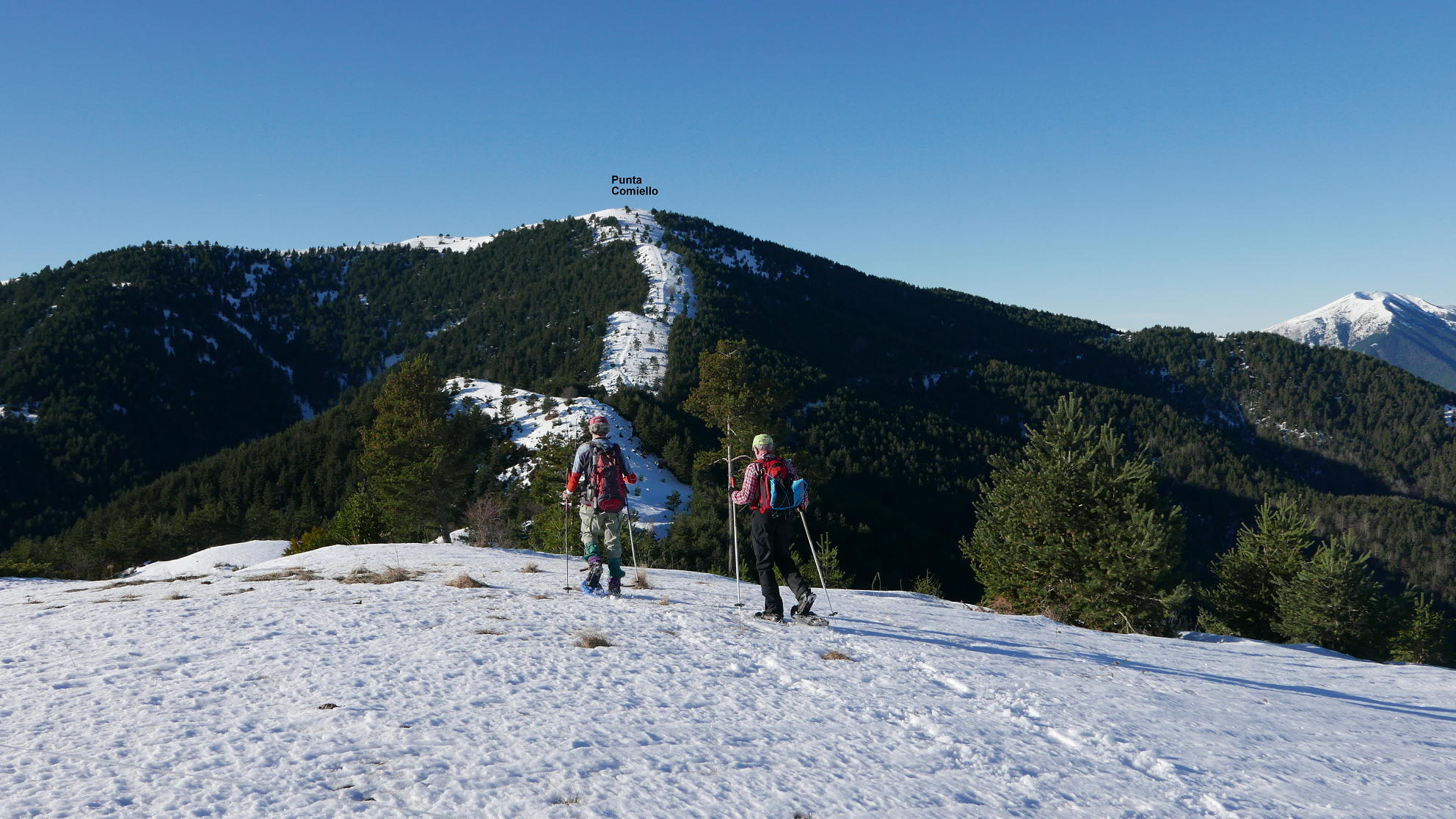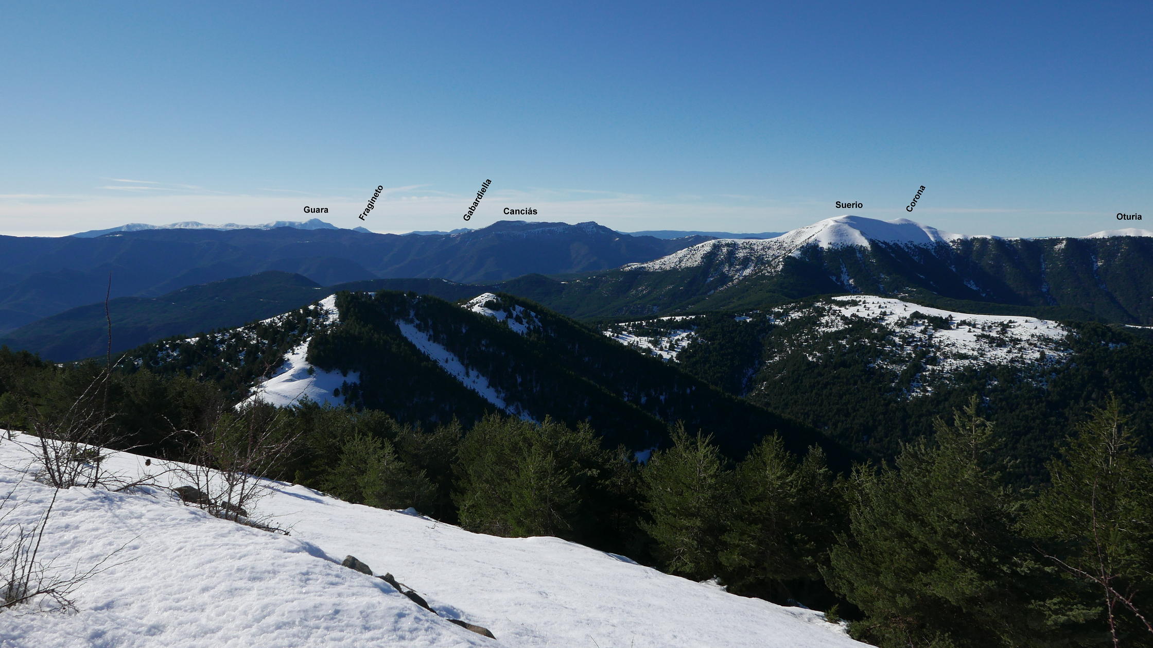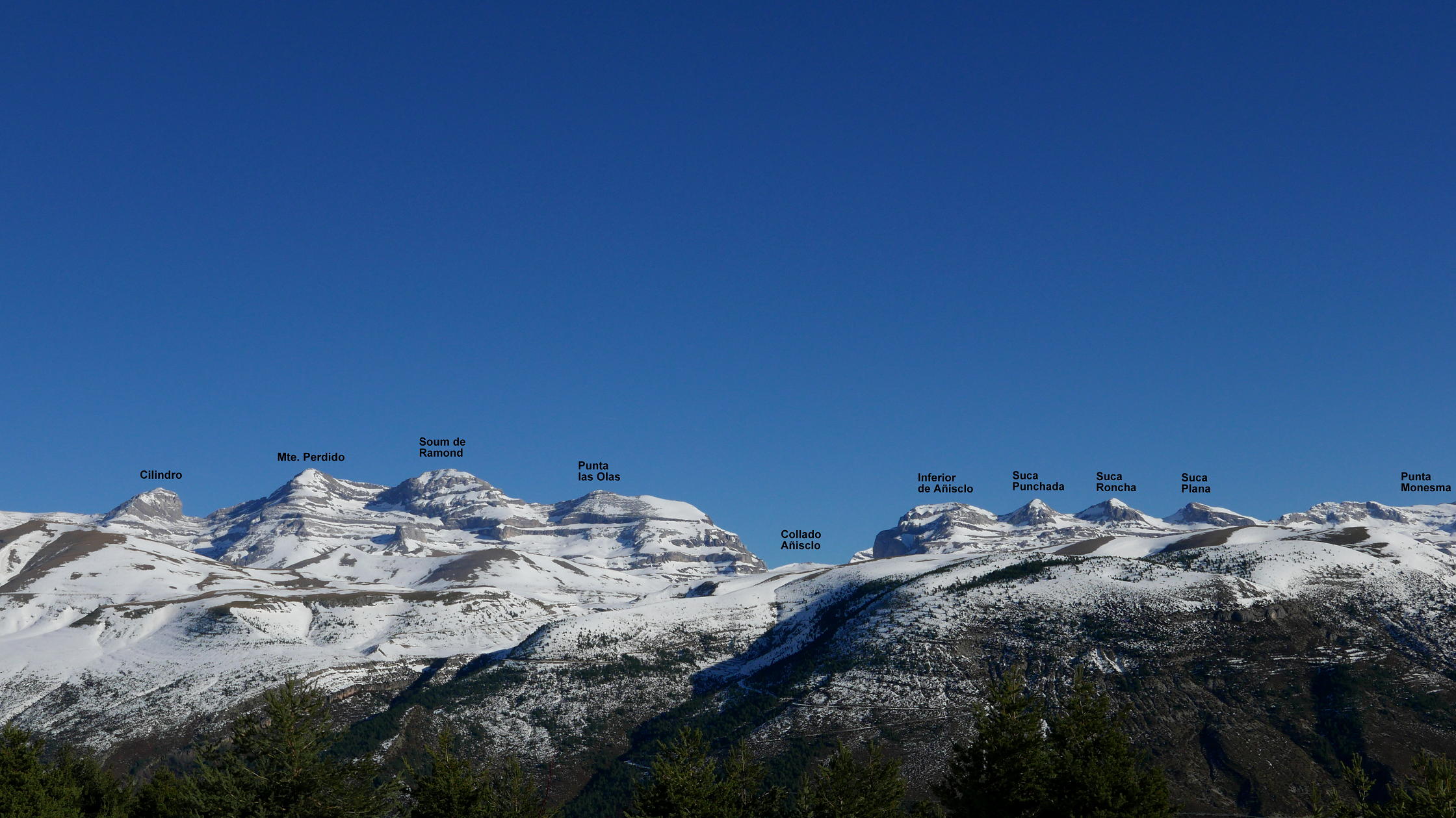 La Punta Comiello es la máxima altura de la sierra de Bolave, que se extiende al sur de Fanlo, separando el barranco de las Guargas de Cajal, al oeste, que desemboca en el Ara, y el barranco de Yesa, al este, que desagua al Bellós y al Cinca. Su mayor atractivo son las vistas al macizo de Monte Perdido. Está cerca de algunas cimas que hice el invierno pasado, el Suerio y la Trallata, así que la zona tiene bastantes posibilidades de hacer picos sencillos y poco visitados. Ahora, en invierno, la dificultad depende más de las condiciones de la nieve. En este caso hacemos prácticamente toda la excursión con raquetas.