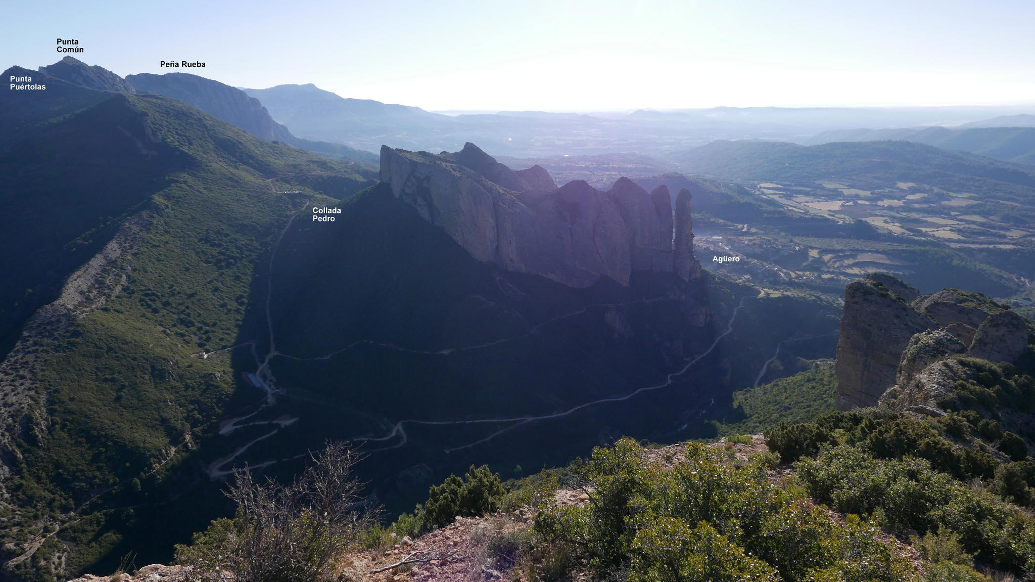 Acceso: Carretera A-132 Huesca-Pamplona, entre los KM36-37, justo antes de llegar a Murillo de Gállego, se toma la HU-534 hasta la localidad de Agüero. Circunvalo el pueblo por la izquierda y aparco en una curva a la izquierda donde hay espacio para unos cuantos coches.