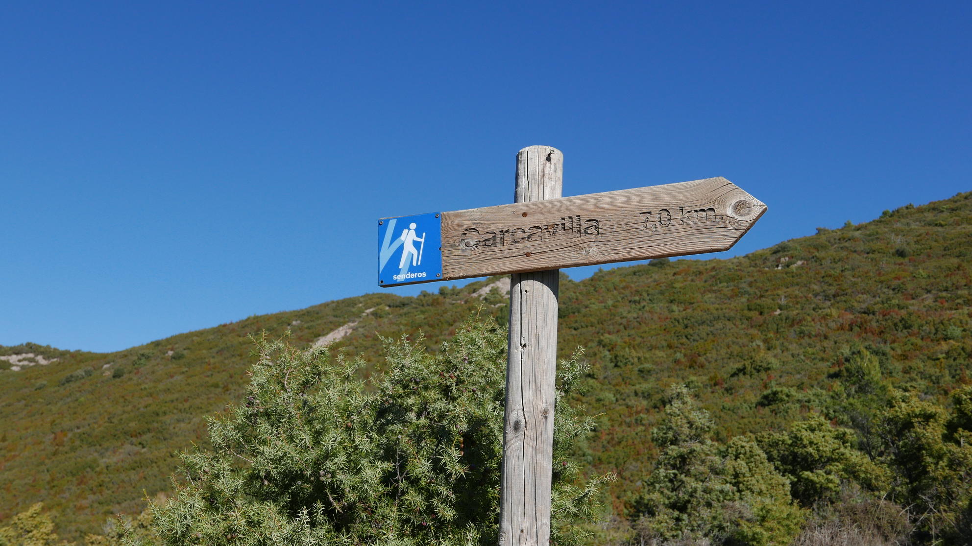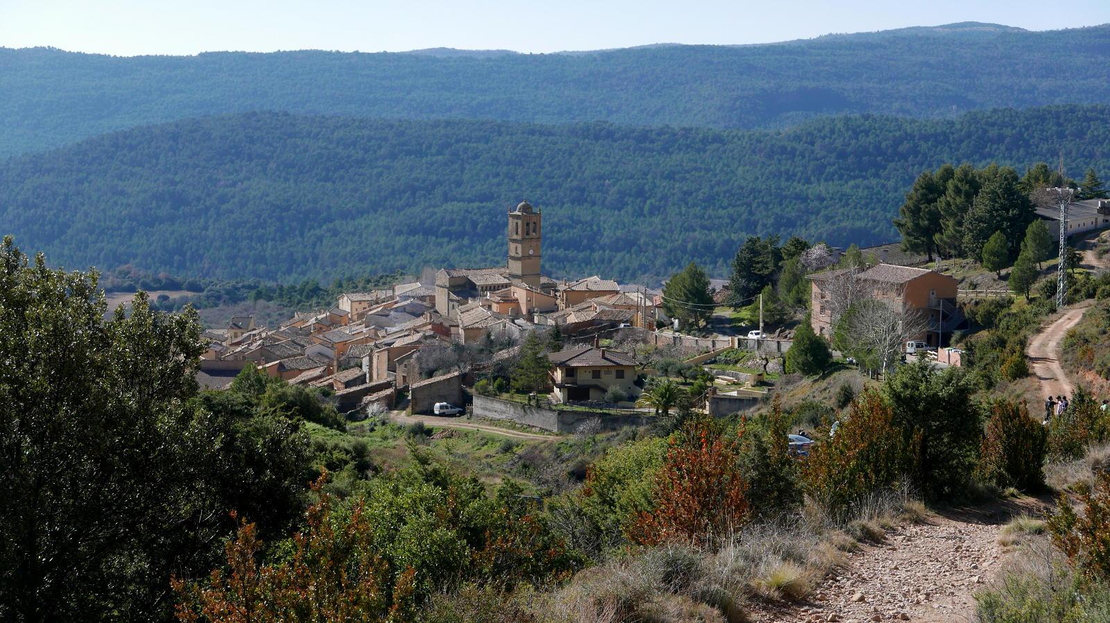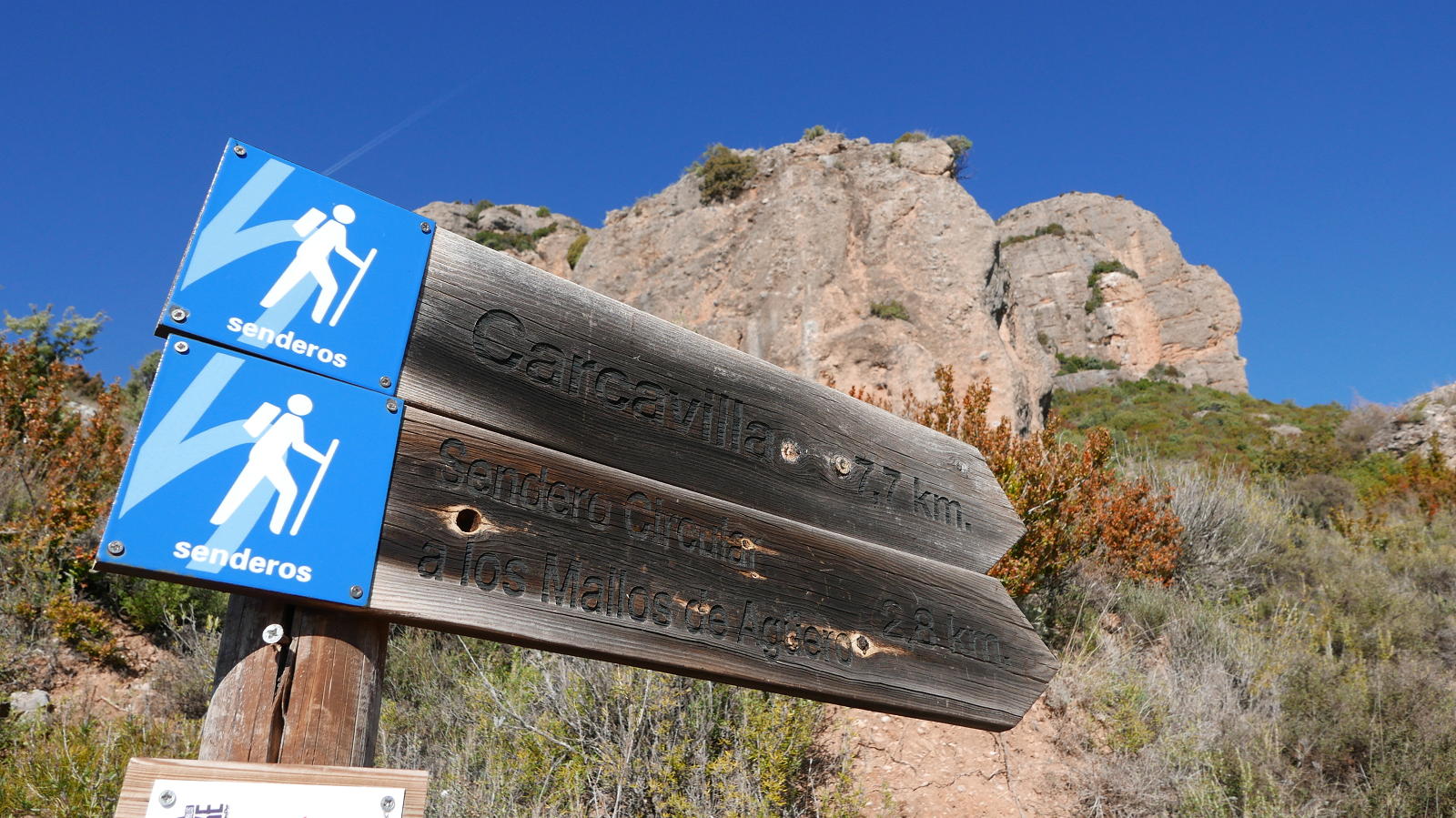LLego de nuevo a las obras (735m 4h29′) y, tras ellas, tomo el camino que sale a la izquierda todo recto hacia arriba (pero por la orilla izquierda del barranquillo, porque en la otra orilla hay una pista). Un buen repecho que conduce al collado Pedro (845m 4h41′). Allí se toma un camino en descenso a la derecha. Aprovecho un atajo (820m 4h46′) y continúo hasta el pueblo de Agüero (730m 4h54′) que cruzo callejeando hacia abajo hasta la carretera y el aparcamiento (660m 5h02′).