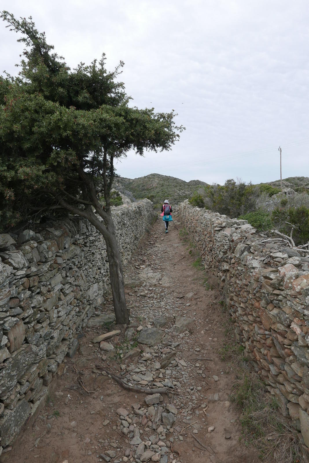 Aún así me ha parecido muy interesante, un terreno abrupto, una vegetación de enebros y chumberas que resisten los vientos de esta zona y la ilusión de estar en el punto más oriental de la Península ibérica, donde termina (o empieza) el mítico GR-11. También me ha sorprendido ver bastantes grupos de senderistas franceses, supongo que hacen rutas preparadas por empresas, saliendo desde Cadaqués o algún otro punto y siendo recogidos en el Cap de Creus.