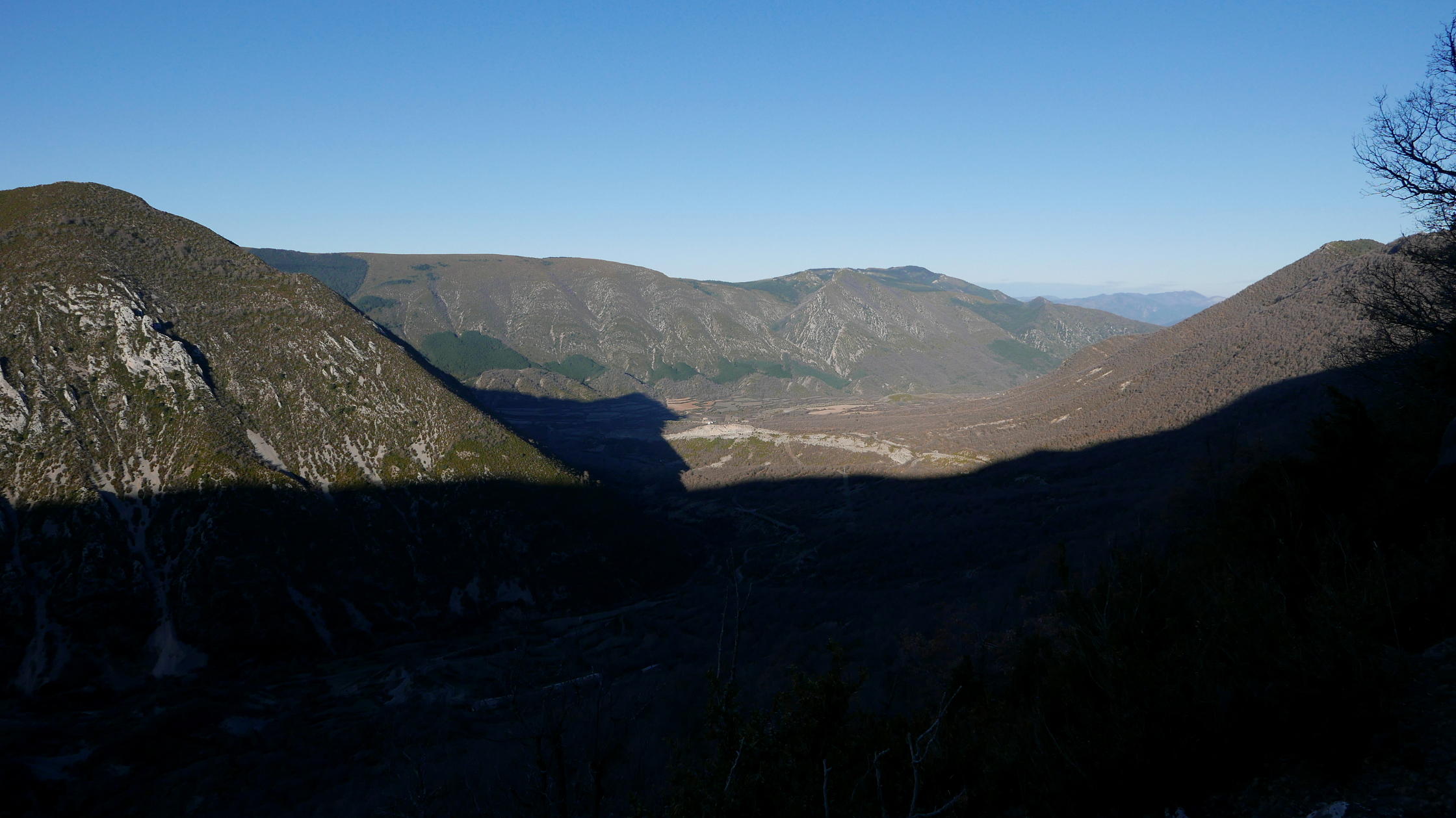 Descripción de la ruta: Junto al aparcamiento (1140m) el cartel pone 1.8km al Peiró, cuando en realidad son 2.15km. Al menos la dirección que indica es correcta, un camino que asciende recto por pinar con una pendiente muy fuerte, así que es mejor empezar con calma. A unos 1260m de altura gira a la derecha comenzando a flanquear la ladera norte de la sierra de Gratal y suavizando la pendiente. Avanzamos por el hayedo del Peiró. Algunos tramos están protegidos por vallas de madera o sirgas y nos preguntamos para qué sirve esta protección, puesto que no hay caída.