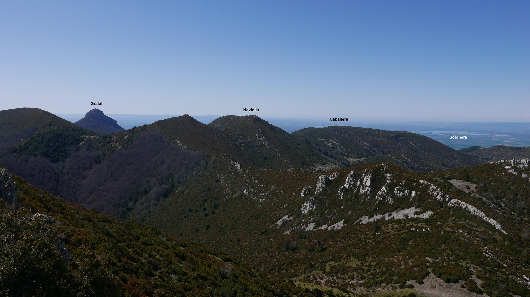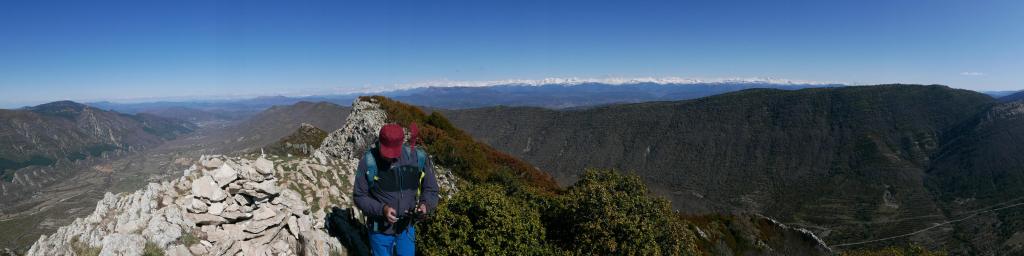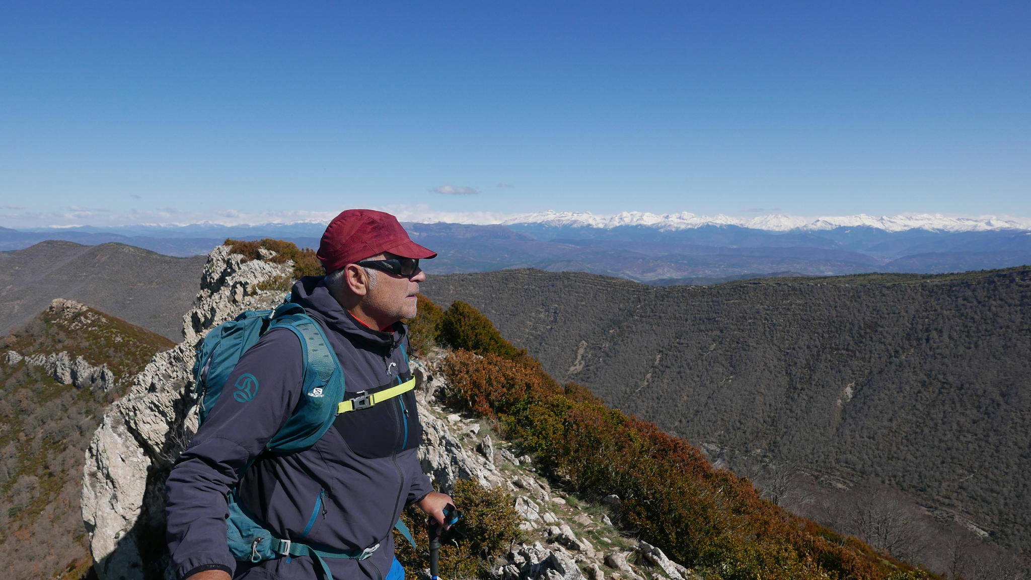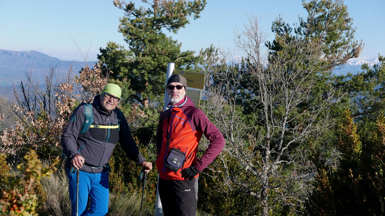 Aprovechamos un domingo sumamente frío para estar ya en abril (-6ºC al empezar), pero soleado y sin viento. Las vistas del Pirineo desde ambas montañas son espléndidas.