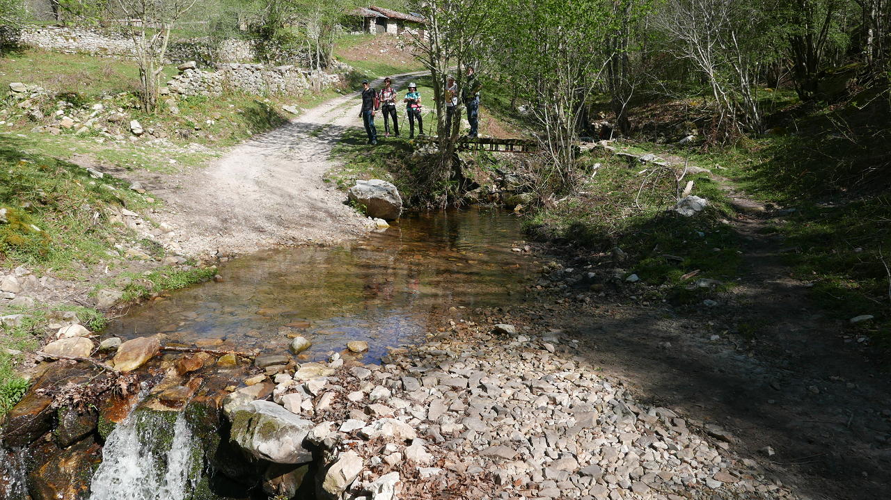 Se pasa por un puente (250m) a la orilla izquierda y un camino se bifurca a la derecha; seguimos recto (256m 0h25′). Después se cruza el regato Repro y llegamos a una granja (275m 0h31′) donde hay otra bifurcación que se toma a la izquierda. Siempre con subida moderada, volvemos a cruzar el arroyo de la Ría, llegando a un giro brusco a la izquierda (345m 0h49′), ya por zona boscosa.