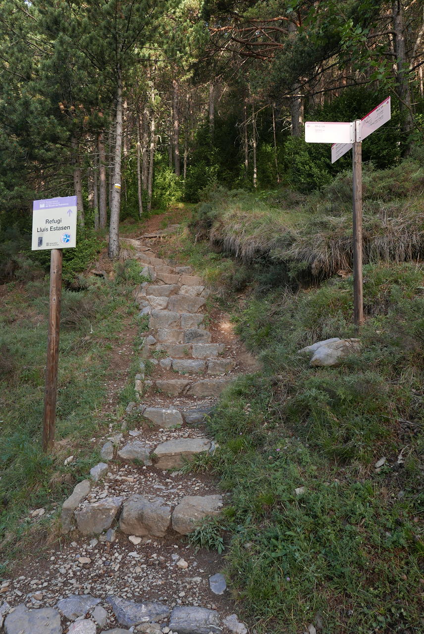 Mi base es el refugio de Lluis Estasen, en el que paso dos noches casi en solitario (la primera noche solo hay una persona más que llega a dormir y la segunda solo un montañero me acompaña en la cena y dos a dormir). Buen servicio en el refugio, ducha caliente, pero mi tarjeta de la Federación española no me sirve para tener descuento; solo la catalana, andorrana, francesa, alemana y no sé de cuántos países más.