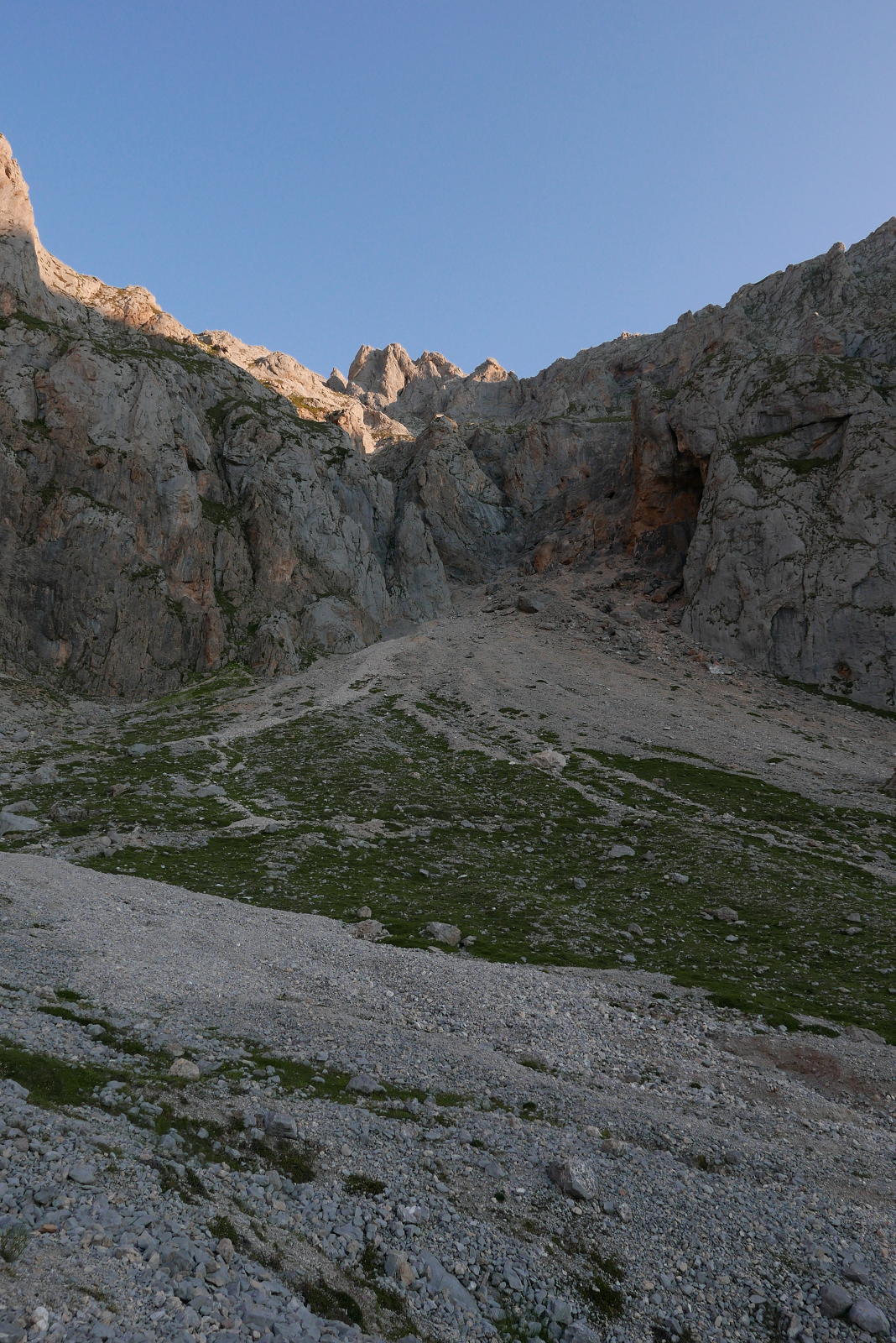 El acceso es más sencillo y corto tomando el teleférico de Fuente Dé, pero para mi es más corto el viaje en coche a Sotres, con una ruta más desafiante y solitaria desde las Vegas de Sotres o del Toro. De hecho en la ascensión no encuentro a nadie, en el descenso al collado solo encuentro a 3 montañeros procedentes de Fuente Dé, y en el resto del descenso vuelvo a la completa soledad.
