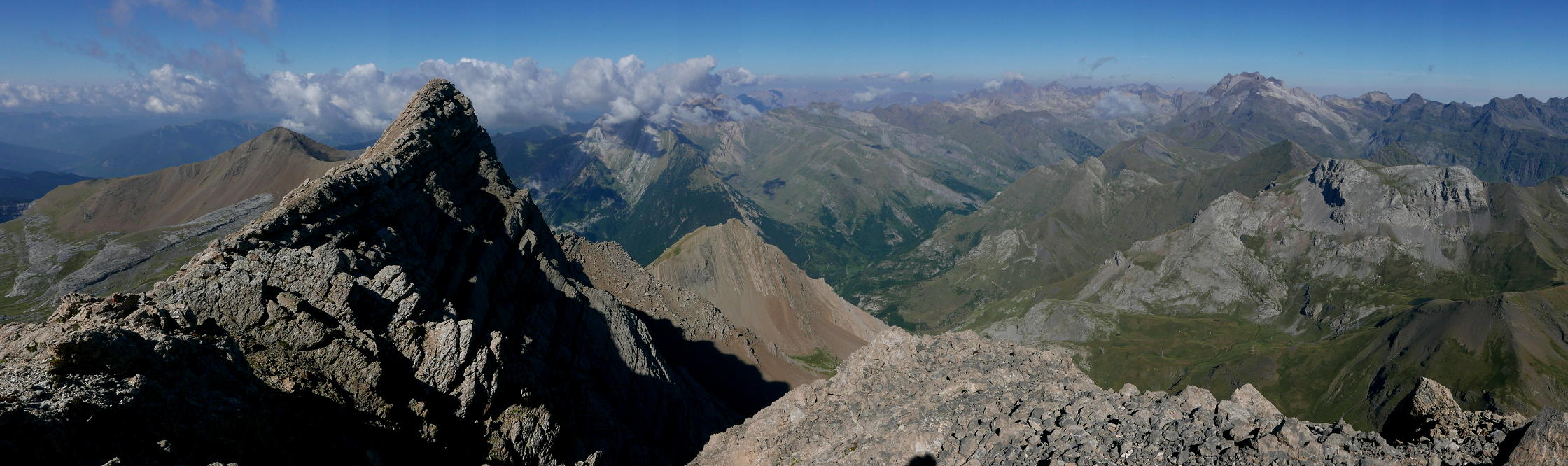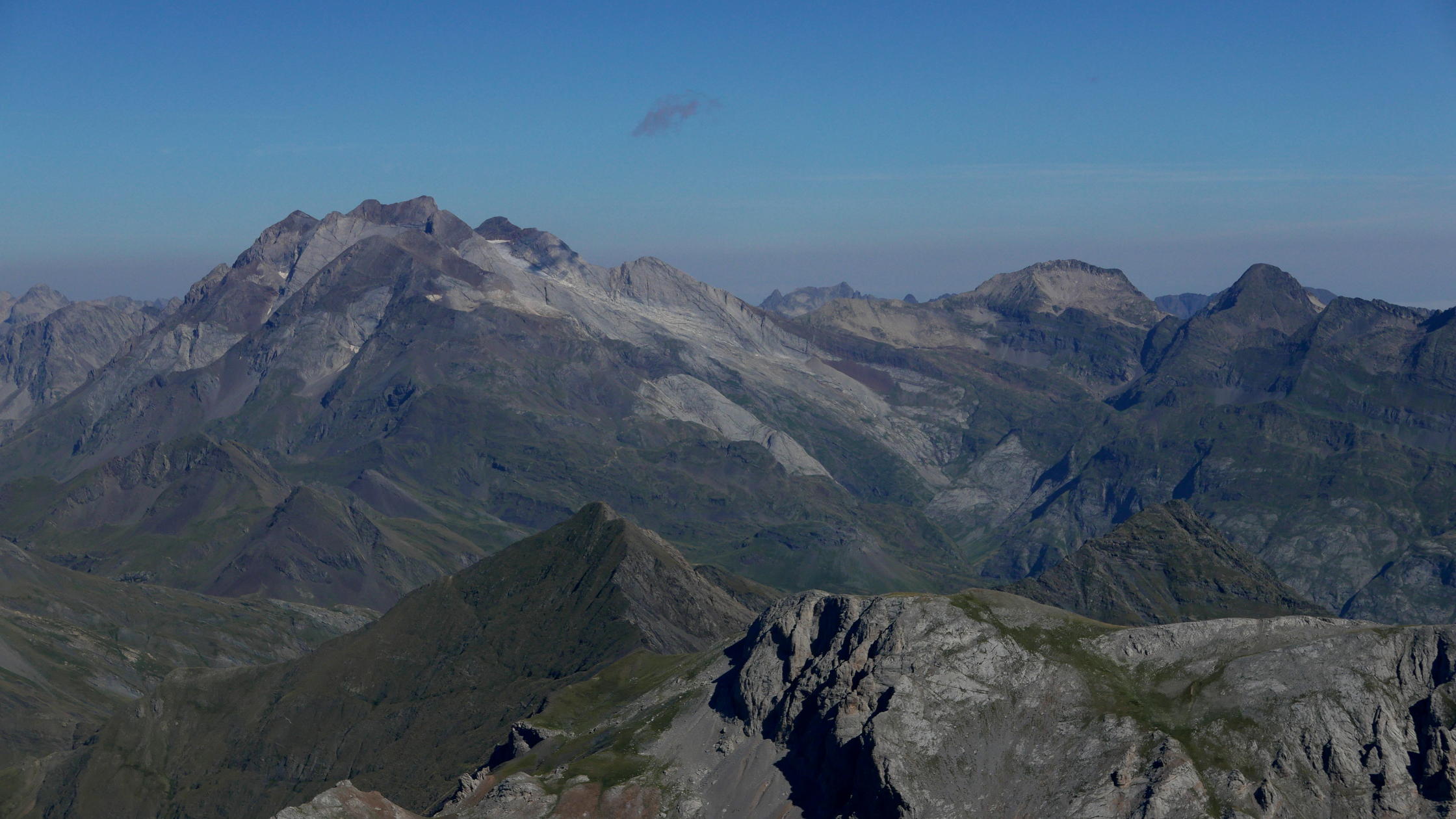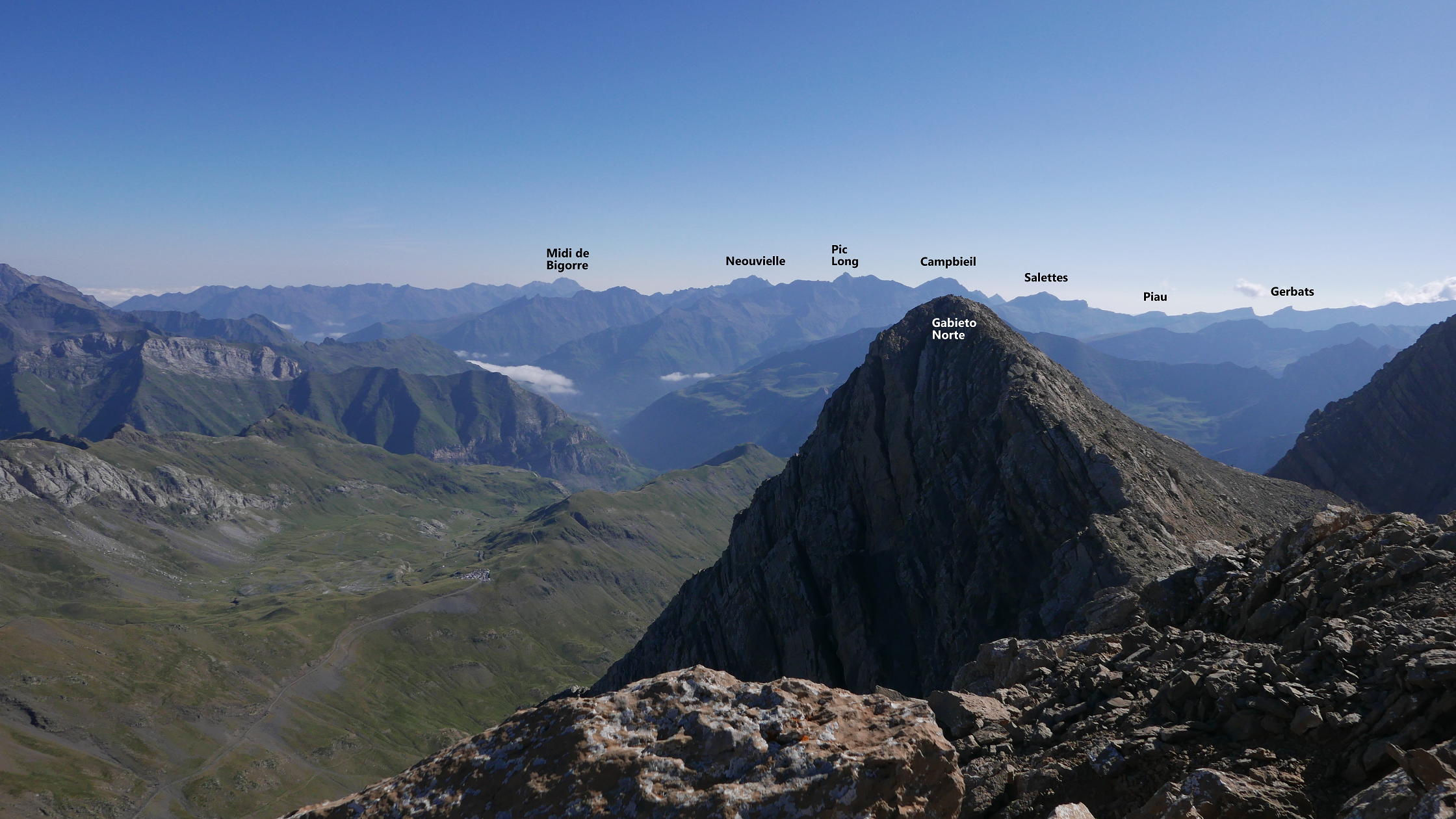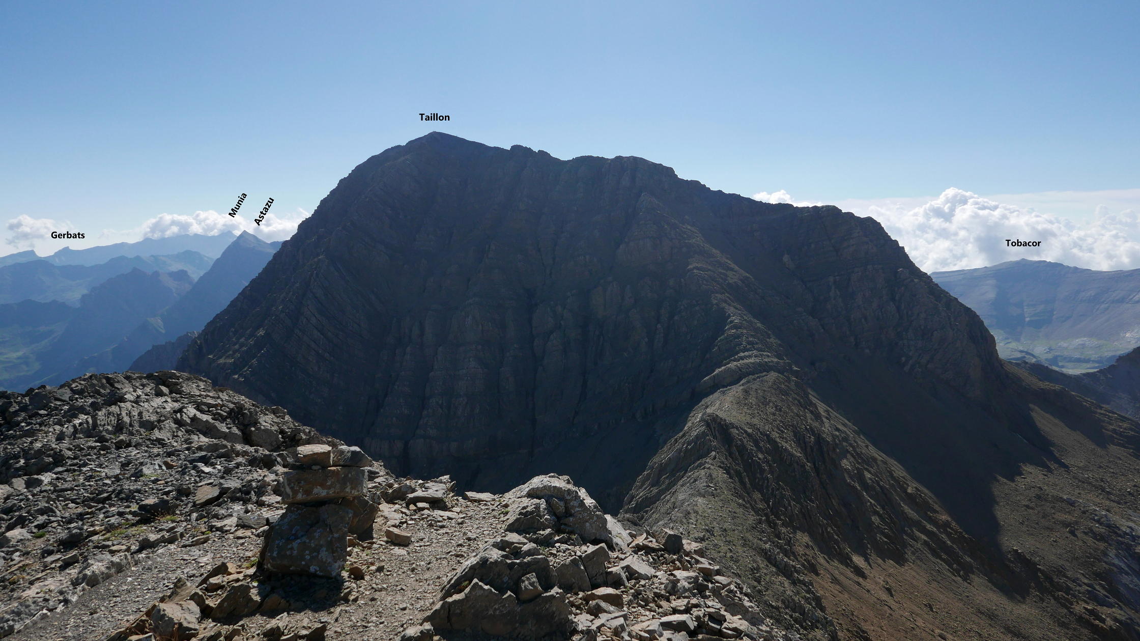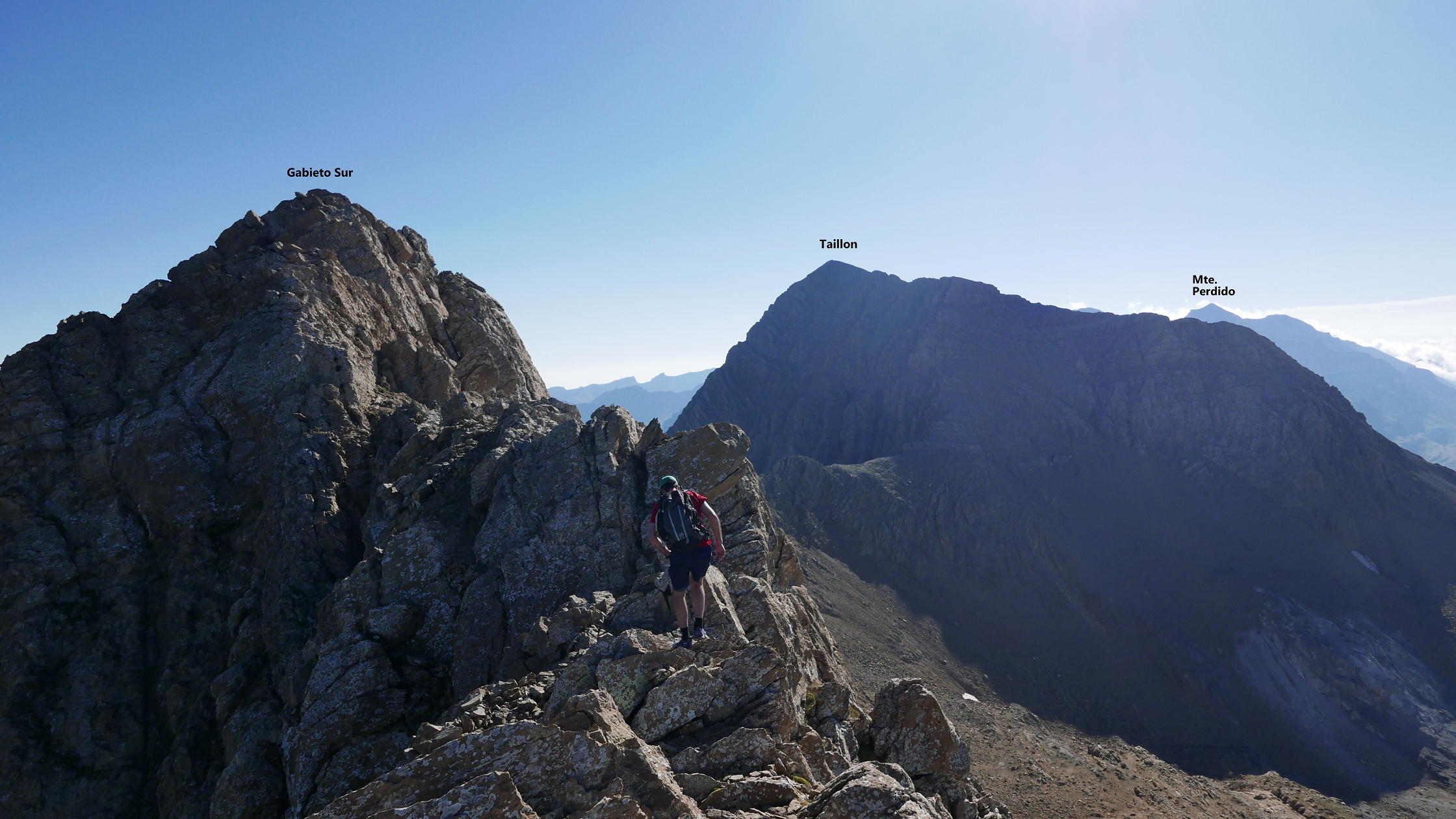 Los Gabietos son los tresmiles más occidentales del sector de Ordesa. Se componen de dos cimas, una suroccidental y otra nororiental. Desde Bujaruelo, exigen una larga y dura aproximación con mucho desnivel, incómodas pedreras y trepadas por su arista sur y suroccidental catalogadas como F+ y PD (yo diría que son de IIº+). En el descenso nos vamos hacia el cuello de Gabieto (entre el Gabieto NE y el Taillon), pensando que la ladera SE de los Gabietos será más fácil, pero es una ladera rocosa con mucha pendiente y poco señalizada, de manera que se convierte en casi más incómoda y compleja que la propia cresta.