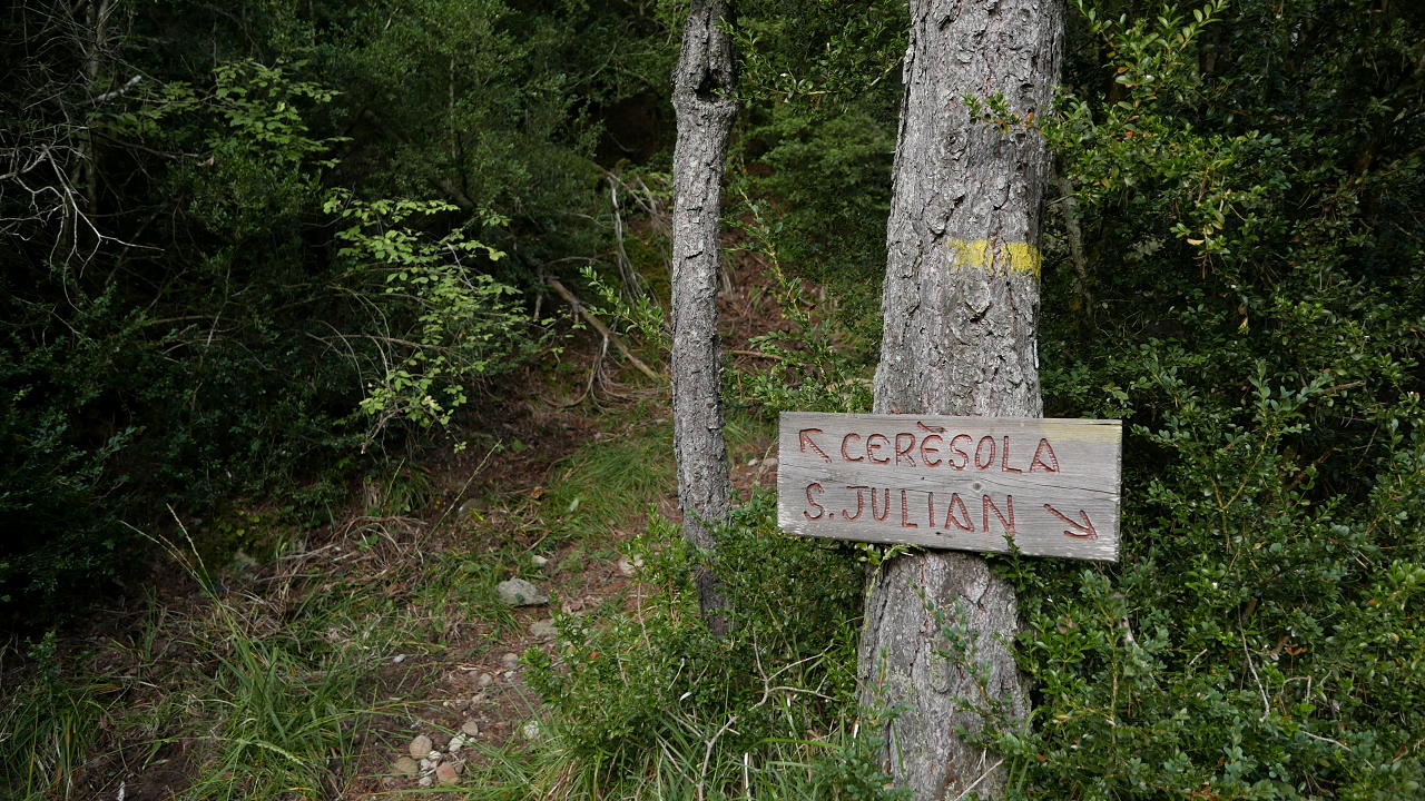 La ruta discurre por la cara norte de la sierra, bajo una gran cobertura boscosa de pinos, pero también hayas, arces, abedules. El camino, un paseo sumamente agradable, une el pueblo de San Julián de Basa y la aldea de Ceresola. Está perfectamente marcado hasta el collado. El tramo de cresta al Portiello ya es otra historia, una trocha abierta en el bosque pero que, a falta de uso, se ha llenado de erizones. Pantalón largo imprescindible y buscar los mejores pasos para no terminar en zonas boscosas bastante cerradas y muy incómodas. Mucho más claro, en cambio, el camino a la Peña Buitrera.