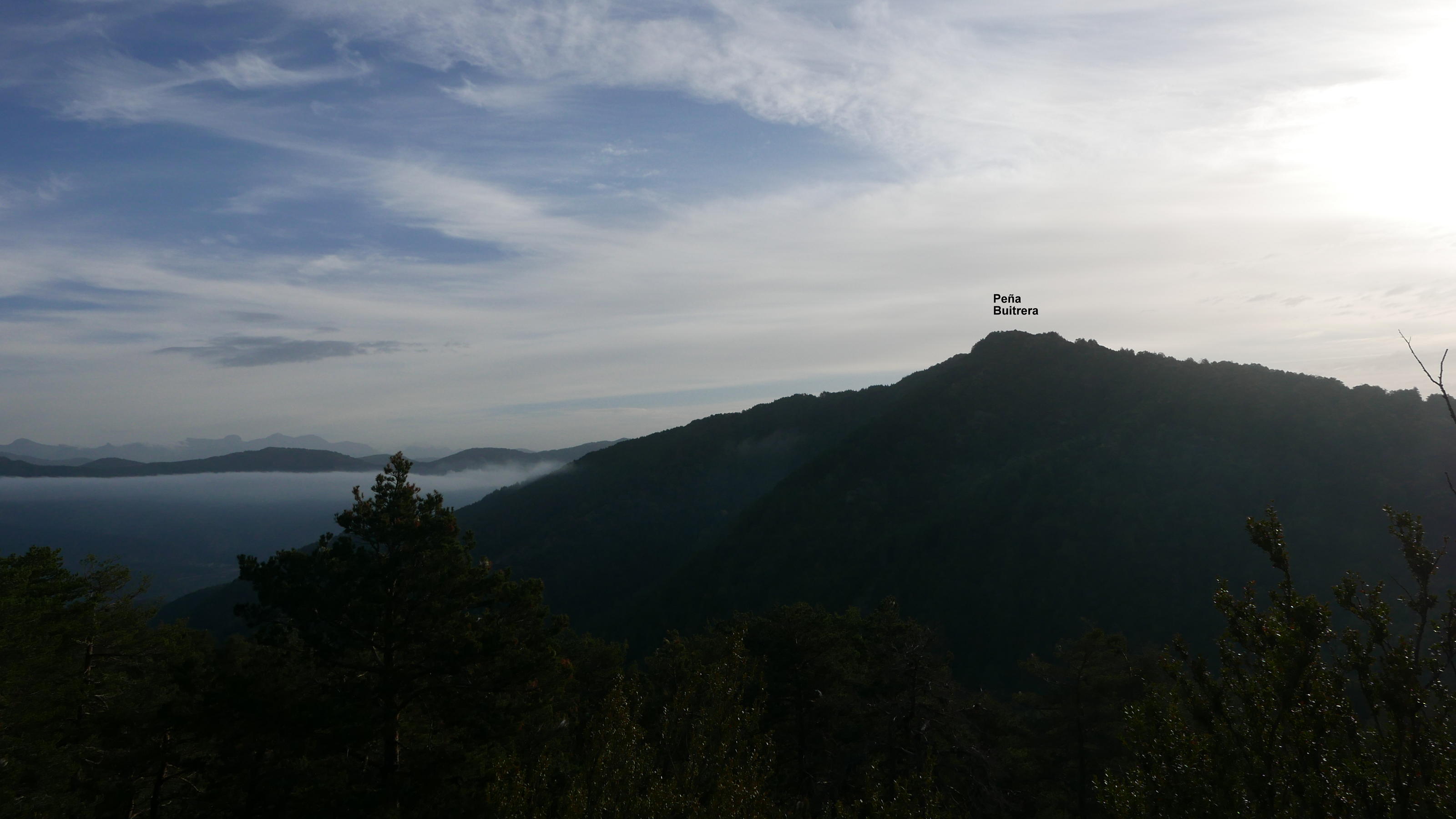 Regreso al collado (1355m 2h27′) y tomo el camino hacia el este, a la Peña Buitrera. Gira bruscamente al norte. Curiosamente es mucho mejor camino que al Portiello y solo los metros finales están más cerrados. Peña Buitrera (1513m 2h44′). Al pasar el track al mapa de iberpix me doy cuenta de que, unos metros más adelante, marca una cota 1515, así que no puedo decir que he coronado la Peña Buitrera, aunque sobre el terreno me parecía estar en el punto más alto.