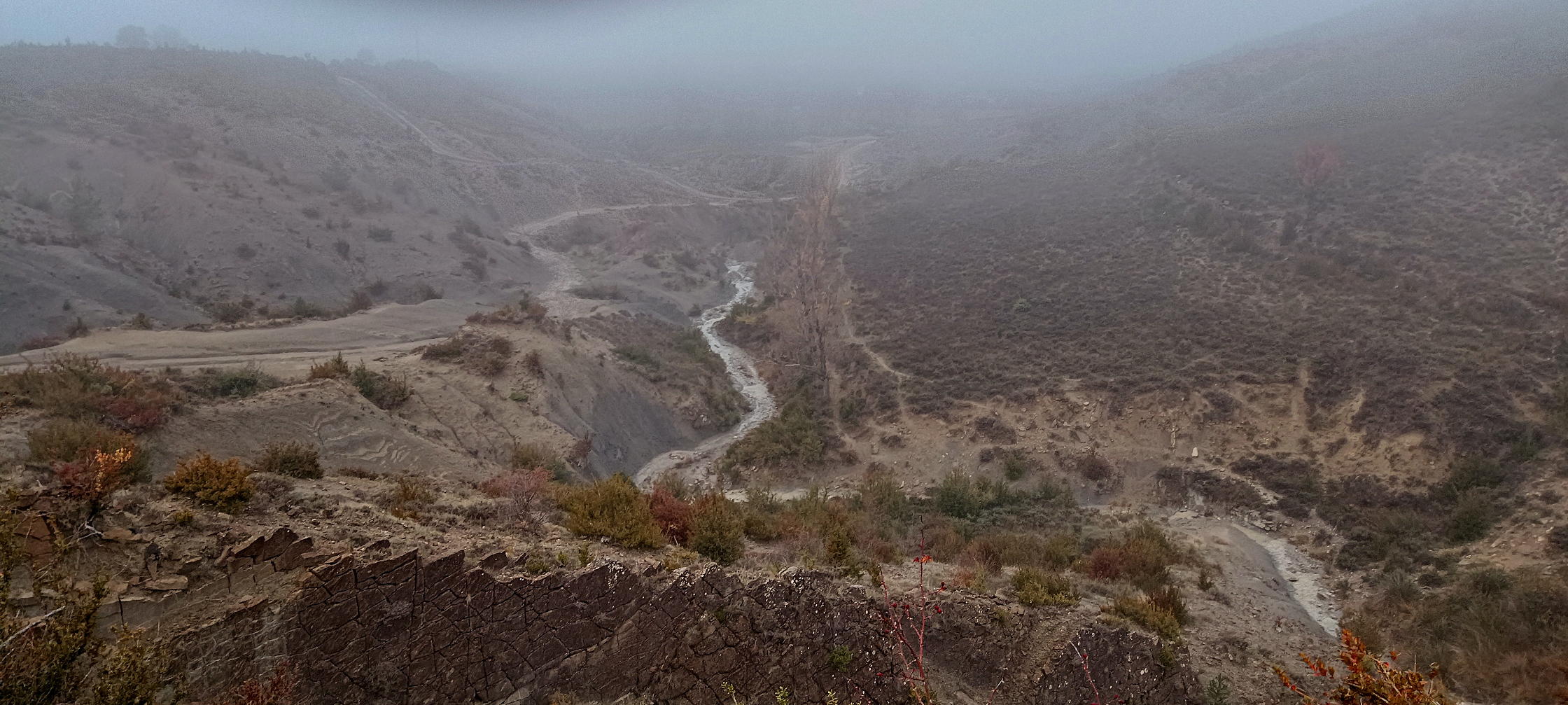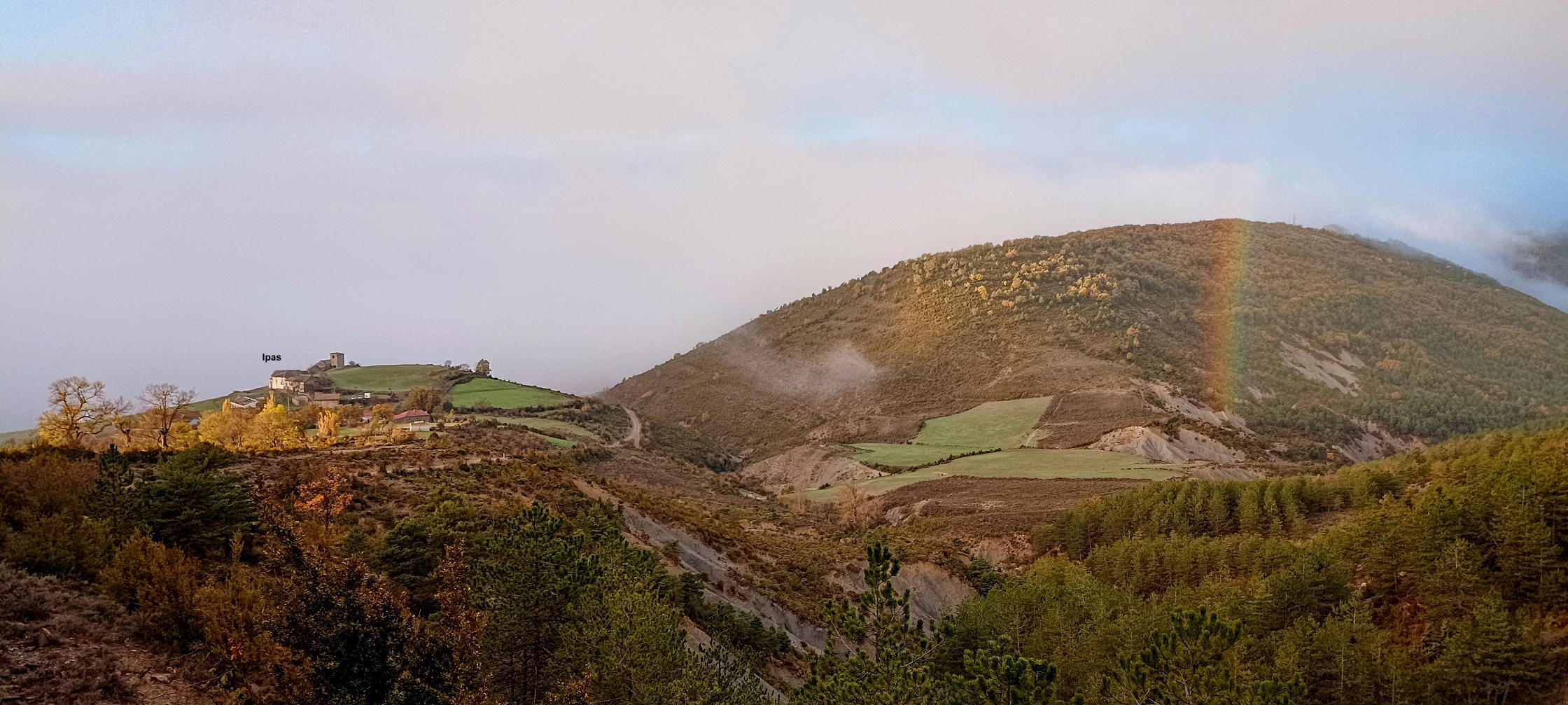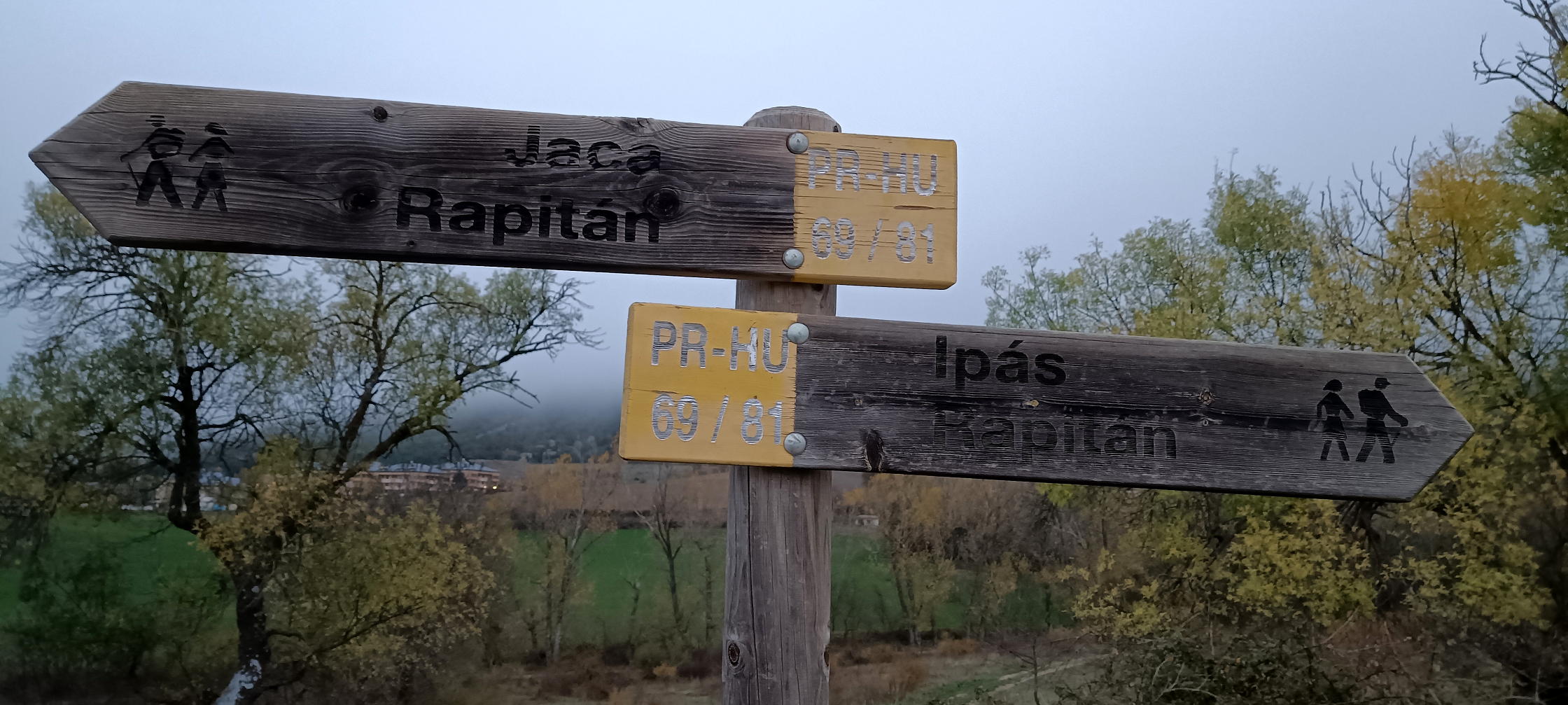 Descripción de la ruta: Desde la calle Tejería (835m) paso bajo la nacional-330 y dejo el centro comercial a mi derecha para continuar por la pista asfaltada que pasa junto al Punto Limpio y la Protectora de animales. Se termina el asfalto y a la izquierda queda un horroroso vertedero. Voy ascendiendo, el pueblo de Ipas lo dejo en un promontorio a mi derecha. Yo sigo las indicaciones «Rapitán» y «Albarún». En la bifurcación, pasado Ipas, sigo a la derecha hacia el Albarún (940m 0h31′) (a la bajada llegaré de nuevo a este punto y tomaré el camino a Rapitán.