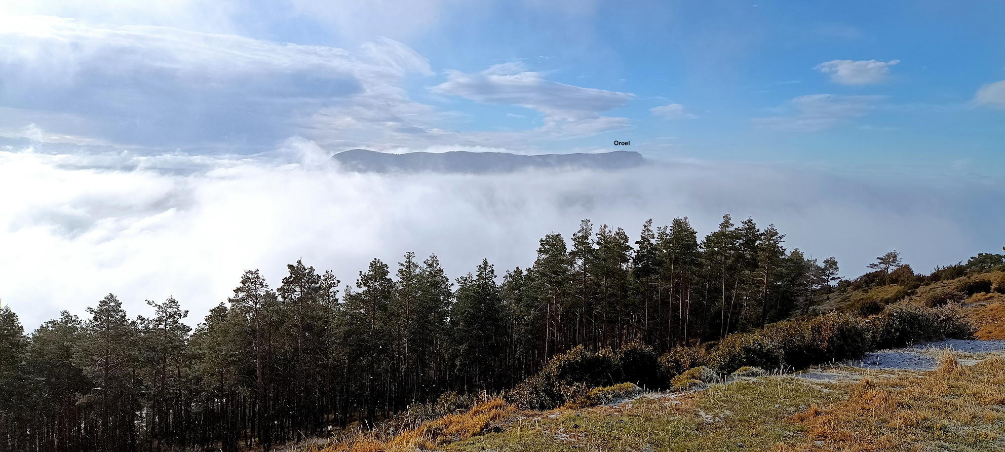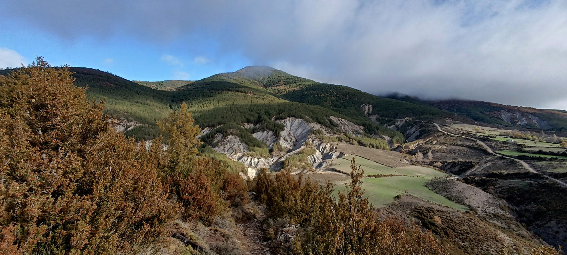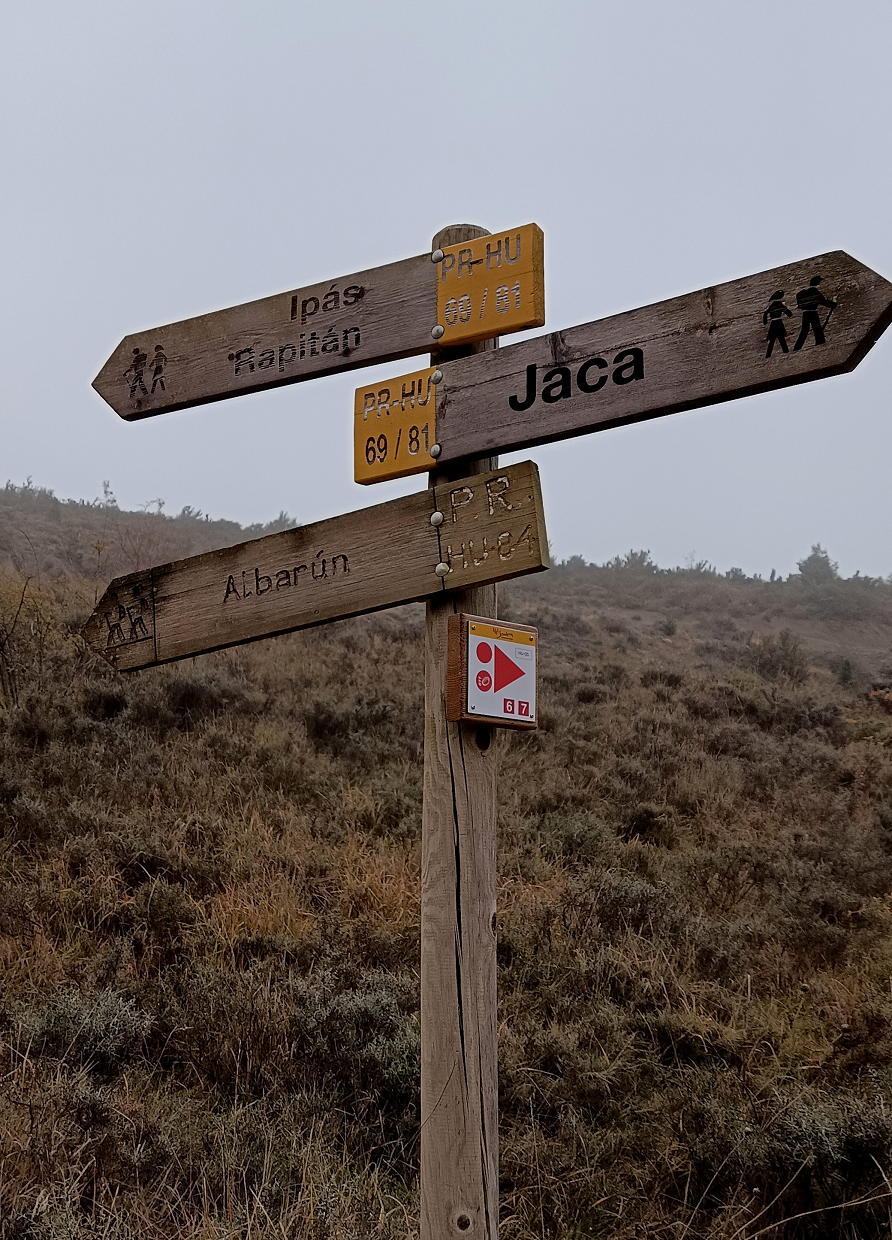 También se puede aprovechar un día frío, nublado y ventoso. Ya sé que no voy a tener vistas, pero aún así voy a un monte cercano a Jaca, el Albarún, cota más elevada de la Sierra de Badaguás que separa la Val Ancha, donde se asienta Jaca, de la Garcipollera. Hay varias rutas; yo escojo la que sale desde Jaca por Ipas y luego permite hacer una circular, subiendo por la cresta oeste y bajando por el este, para luego enganchar con la subida al Rapitán por su cresta oriental.