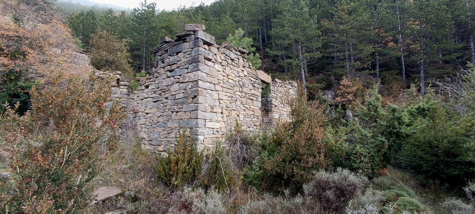 En el descenso me desvío por una senda que va a la ermita de la Virgen de Ipas (1150m 2h48′) (4 paredes ruinosas) y continúa para confluir de nuevo con la pista. Ojo porque por aquí hay varias pistas, yo tengo que retroceder unos metros porque había tomado una que vuelve a ir en subida. Ya en la pista buena llego hasta el punto, bajo el pueblo de Ipas, donde sale la senda al Rapitán (940m 3h10′). Recorre su cresta este por un bosquecillo de quejigos y alcanza el monstruoso edificio de apartamentos y el Fuerte del Rapitán (1090m 3h36′) . Bajo por la senda que va bordeando la carretera, desembocando en el Hospital y, de ahí, al punto de partida (835m 3h57′).