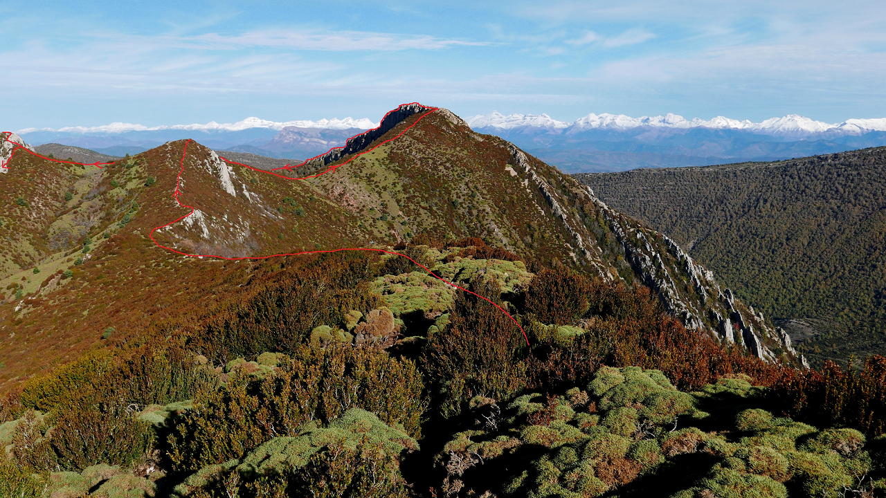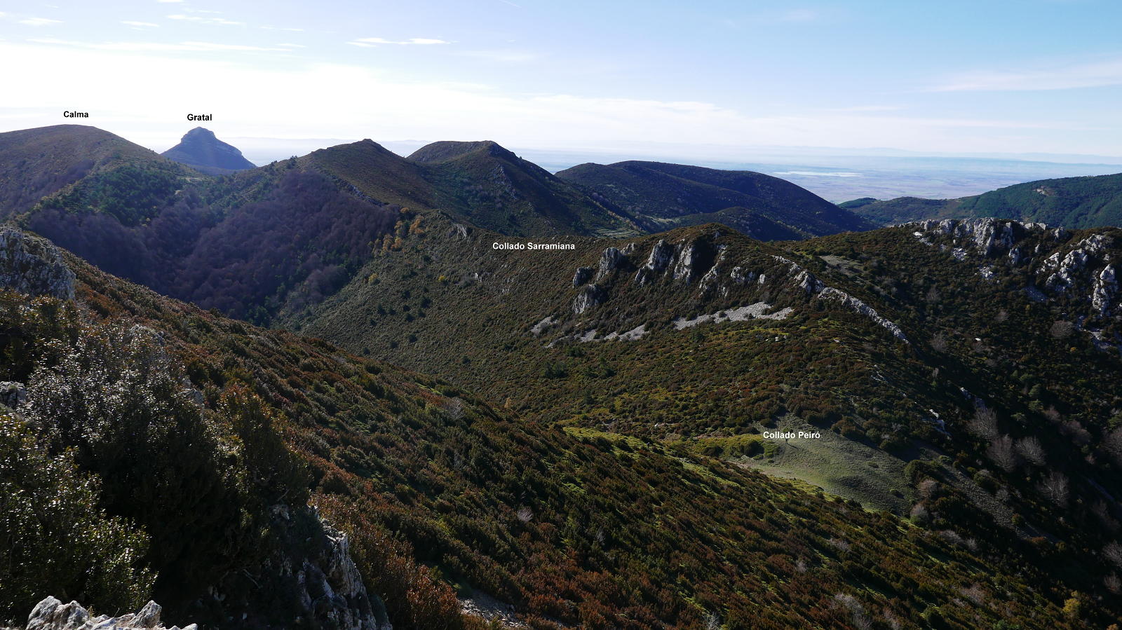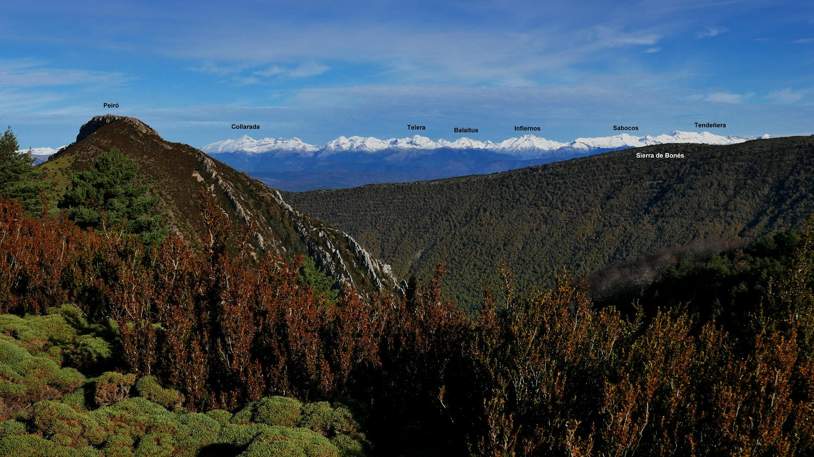 Vuelvo al pico Peiró para hacer un recorrido completamente distinto y bastante interesante. Puntos a destacar la bonita subida por el barranco Cuna, después un largo y pesado tramo de pista desde el pozo de nieve hasta el collado Sarramiana; de ahí al collado Peiró una cresta muy entretenida y con estupendas vistas; finalmente la bajada directa desde la punta Norte del Peiró por una senda entre vegetación muy cerrada y, con el barrillo y la hojarasca, muy resbaladiza.