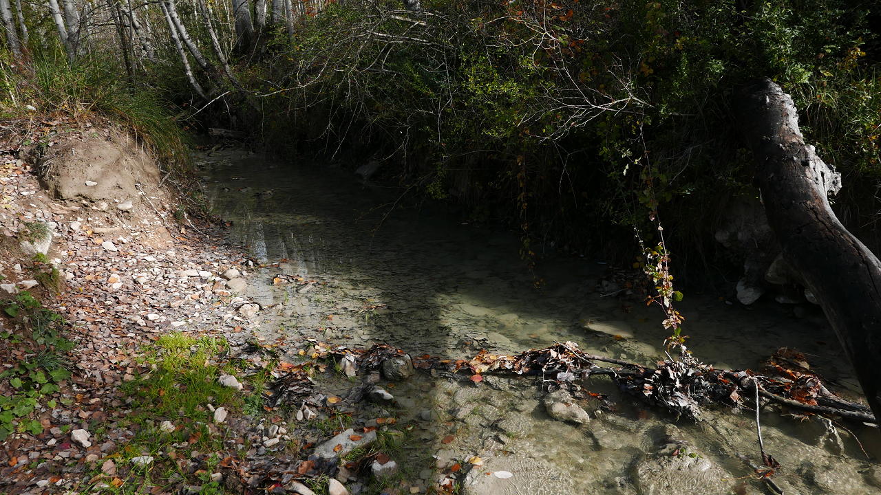 Descripción de la ruta: Salgo de Bentué (915m) por una pista hacia el sur que enseguida atraviesa el río Garona, ahora sin mucho problema, cuando baje más crecido igual hay que descalzarse, y sigue la señalización de GR-1. El camino se convierte en senda (poste de GR 980m 0h18′) para introducirse en el barranco Cuna. La senda flanquea por la orilla izquierda, hay bastante vegetación pero el sendero está bien abierto. Se baja al lecho del barranco (1210m 1h00′) y el paisaje se abre hasta llegar a una gran explanada donde hay un crece de pistas y el pozo de nieve Mata Menuda (1255m 1h09′).