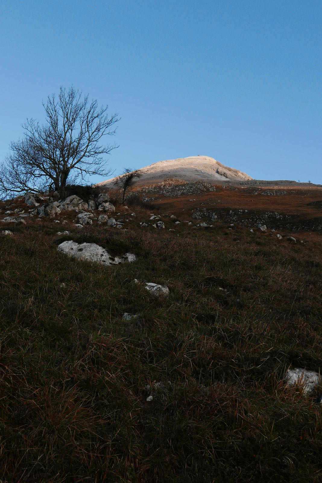 Desde la cabaña de Coum (1390m) encuentro nieve que, aunque no requiere material de alpinismo por ser pendientes suaves, complica un poco seguir el camino marcado, así que subo algo por intuición y también consultando el GPS. En la cima del Layens me rodea una espesa niebla, y durante la bajada también tengo que utilizar el GPS hasta que salgo por debajo del nivel de la niebla llegando al col de Bergout.