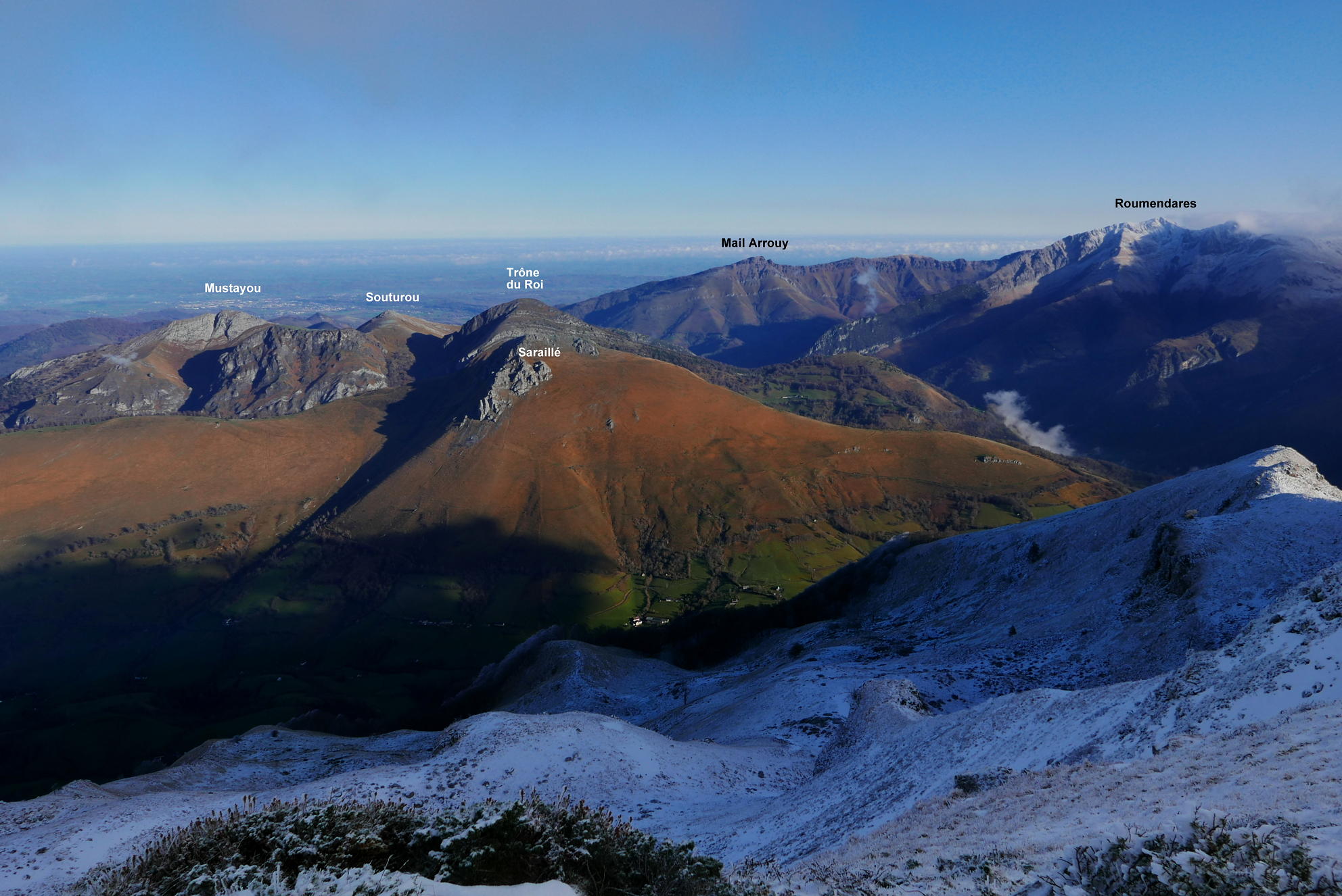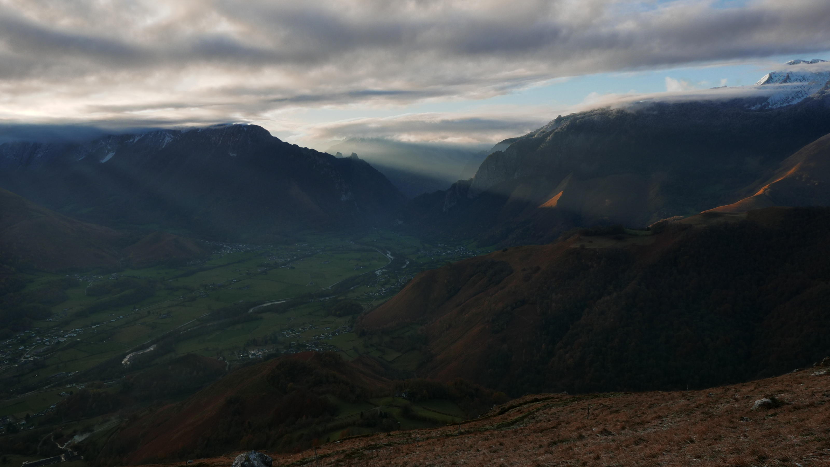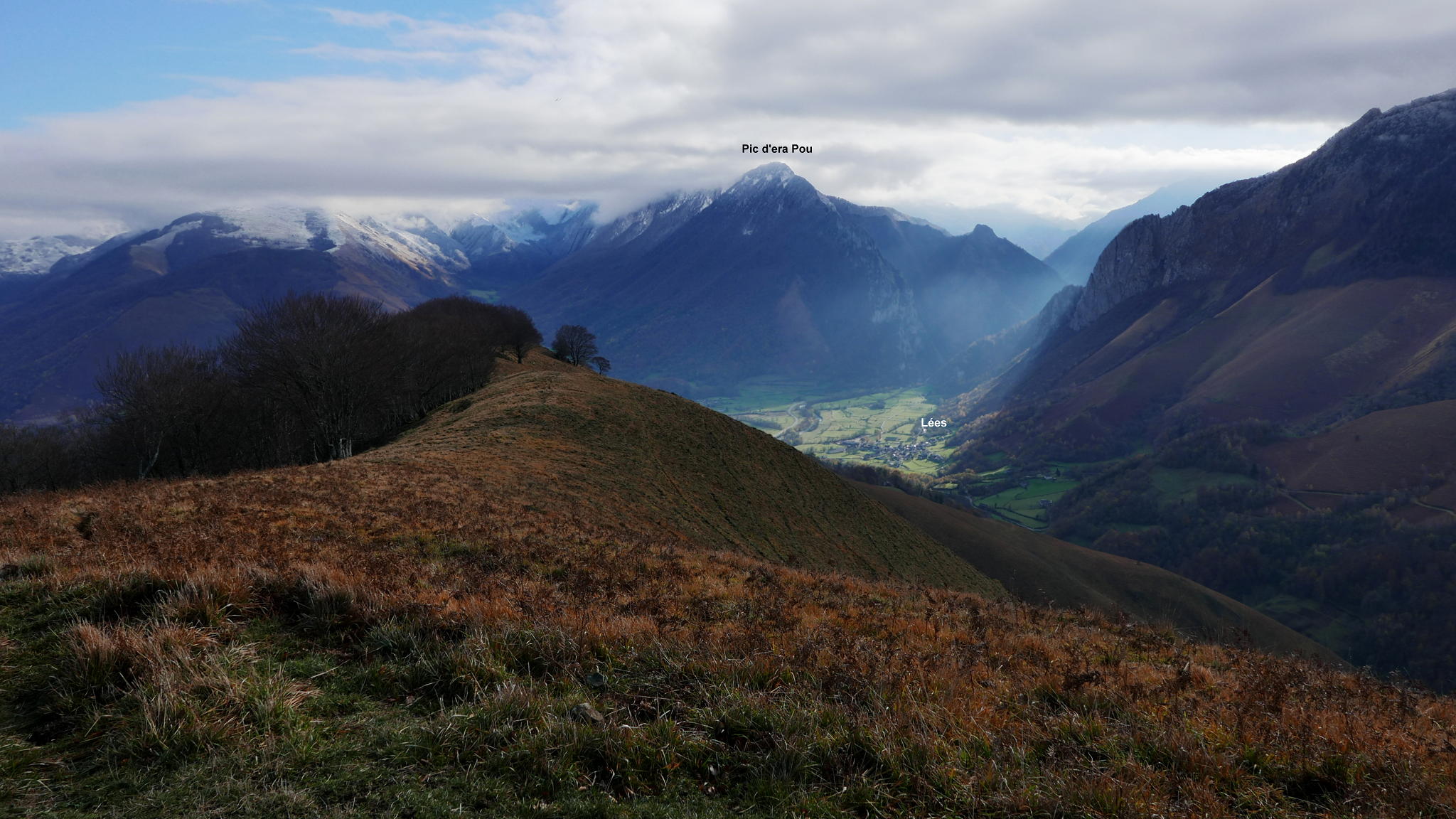 El Layens es un monte bien prominente en el valle de Aspe. Además es sencillo de subir; desde el col de Bergout, al que se puede acceder en coche, apenas 450m de desnivel por terreno de pasto sencillo (Ruta al Layens desde Bergout) En esta ocasión realizo una ruta más larga y de mayor desnivel; desde Osse-en-Aspe hay 1200m de desnivel y completo el recorrido circular subiendo la modesta cota del Soum de Pirait y descendiendo al pueblo de Athas. Toda lla ruta se desarrolla por zona pastoril y boscosa, con las pendientes más fuertes en la ladera SW de Lastutas, pero siempre sin dificultades técnicas.