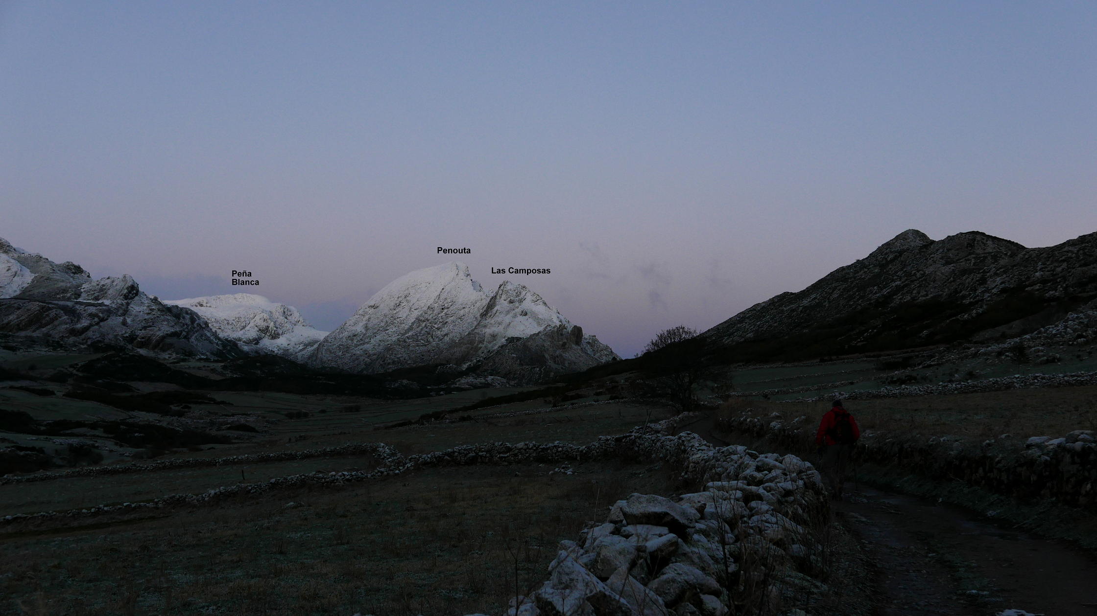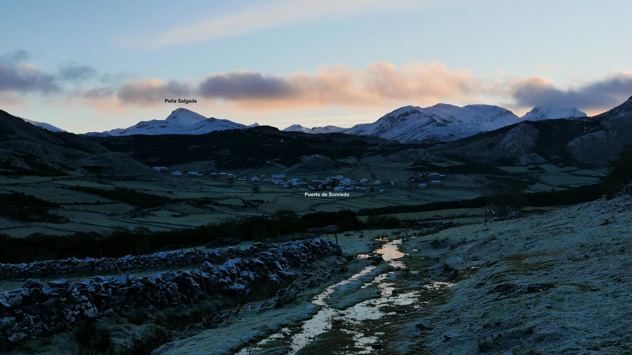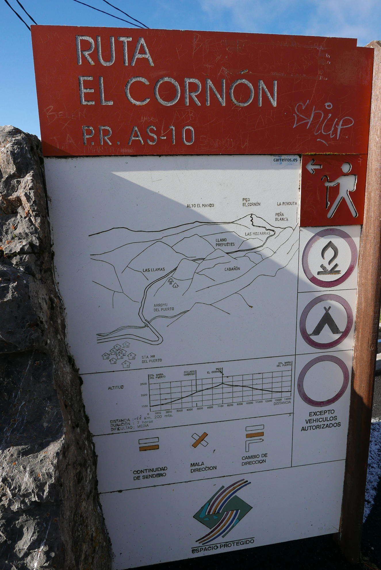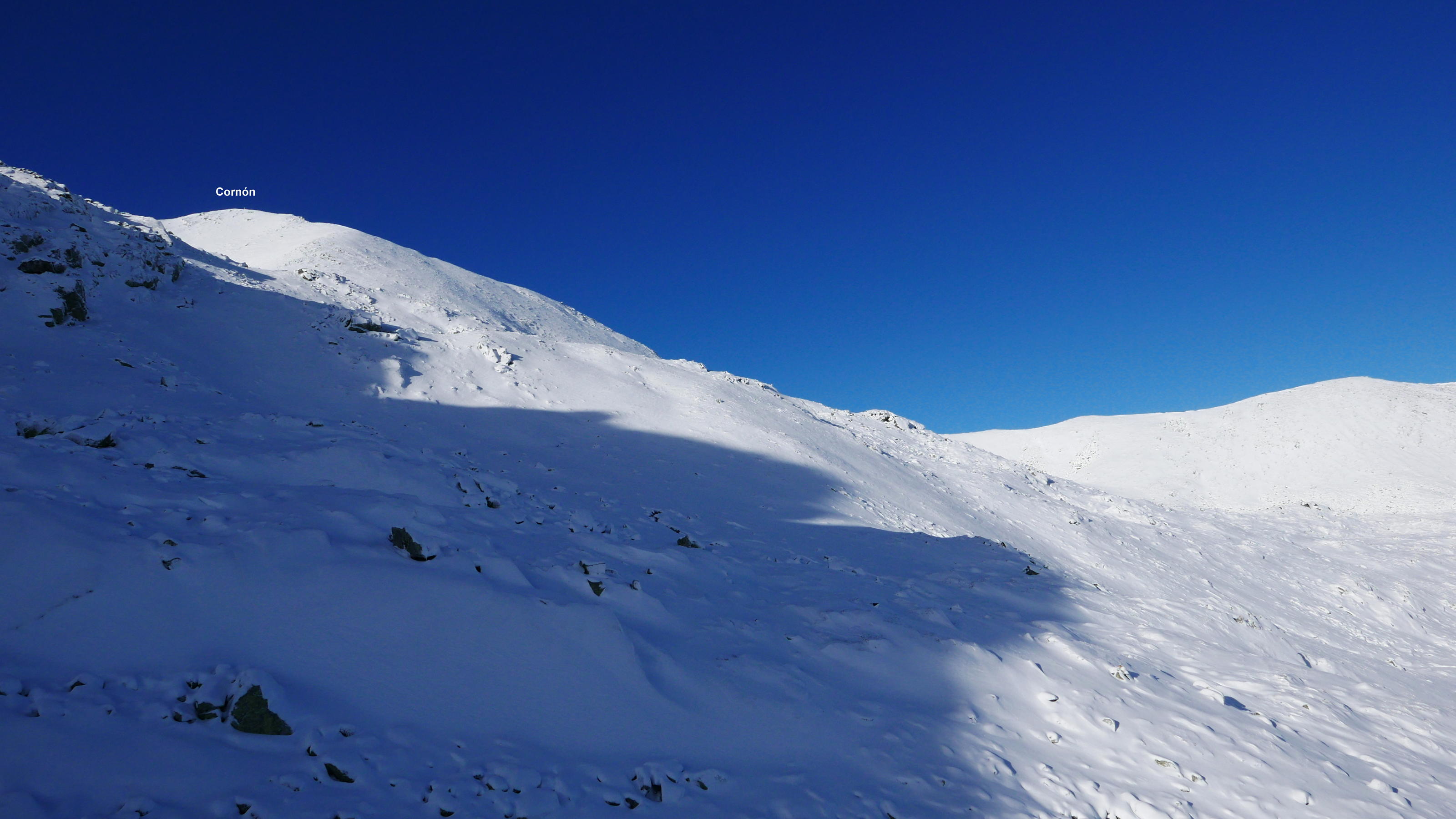 Otra vez se me resiste el Cornón. El invierno pasado un intento frustrado desde Villar de Vildas y ahora una ruta más corta y sencilla desde el Puerto de Somiedo. Las suaves, por no decir calurosas, temperaturas de este mes de diciembre, me hicieron pensar que apenas habría nieve; pero resulta que la tarde pasada y esta noche han llegado precipitaciones y bajada de temperaturas y encontramos nieve en casi todo el recorrido. De todas formas, la mañana es espléndida, totalmente despejada aunque con una buena helada a primeras horas.
